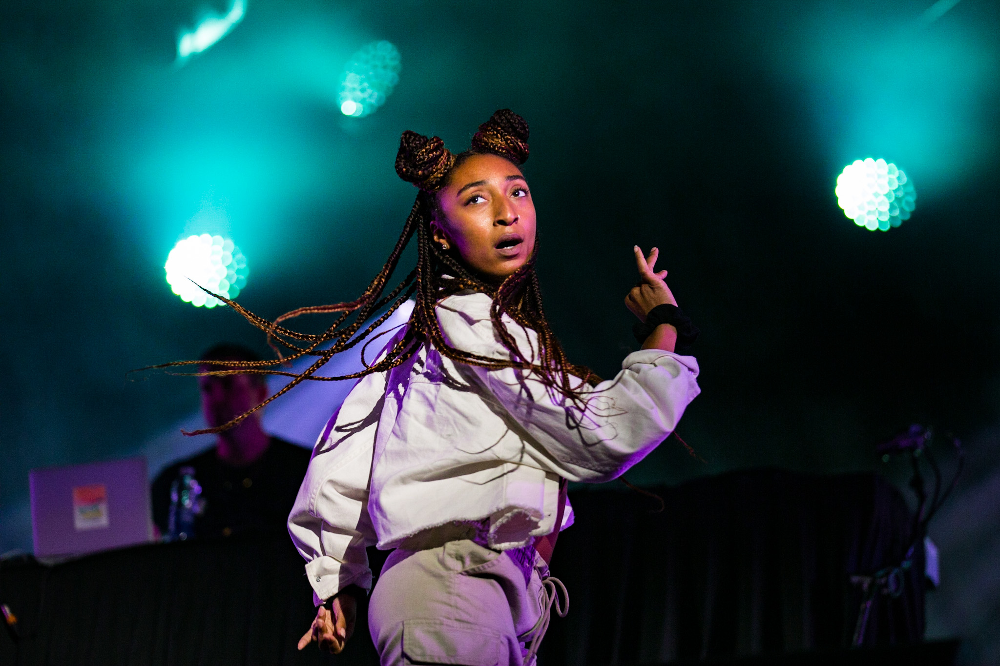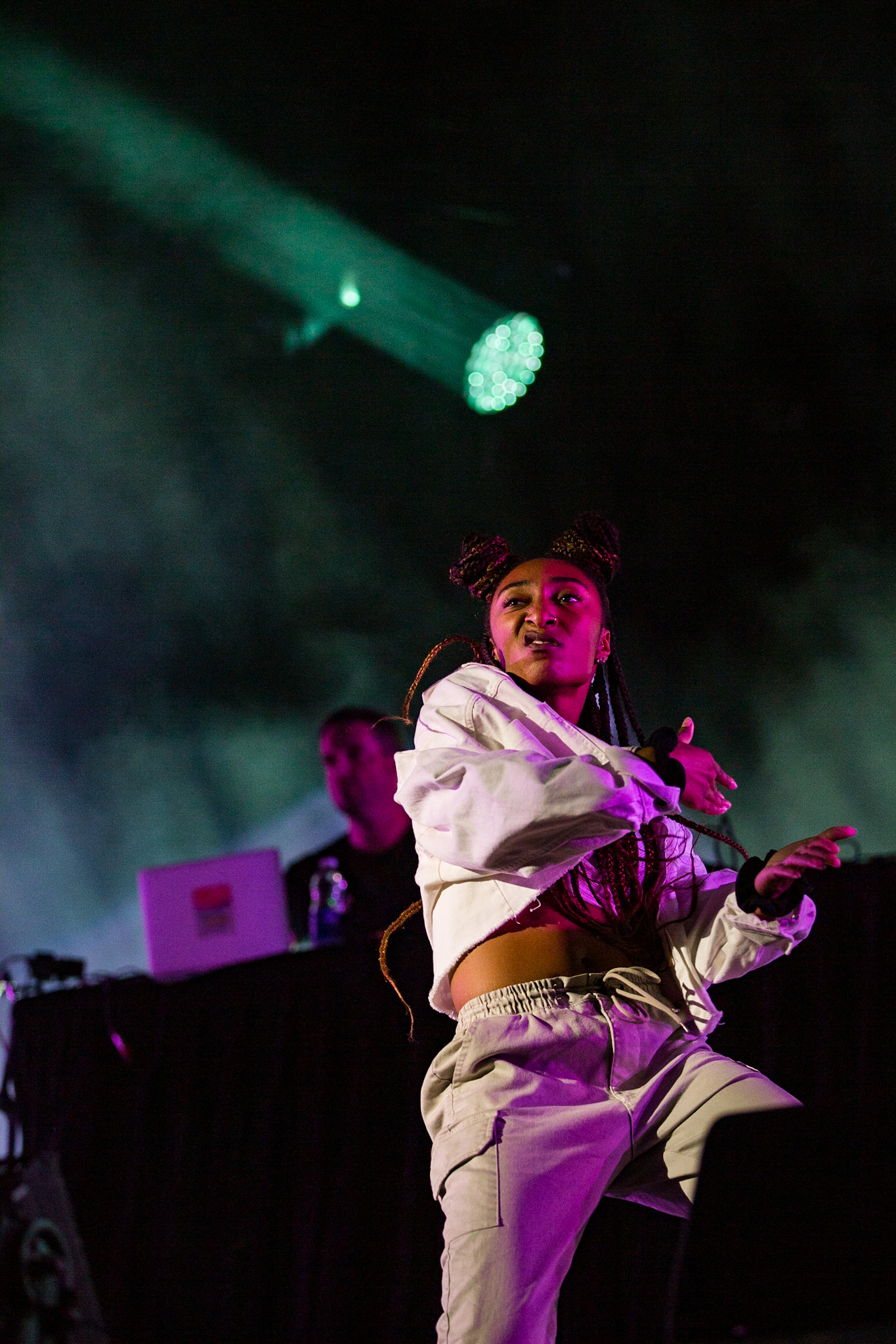 Je l’avoue, quand Koriass a annoncé qu’il nous laissait entre les mains de son copilote FouKi, mon amie et moi, nous nous sommes mises à crier comme deux adolescentes à un spectacle de Justin Bieber. On espérait voir Jay Scøtt apparaître, mais il n’est jamais arrivé. C’est FouKi qui a assuré la chanson au complet, et malgré un petit blanc dans les paroles du premier couplet (habituellement chanté par Jay), ce fut un défi relevé! Alicia Moffet manquait également sur scène pour Ciel, mais elle répondait quand même à FouKi grâce à un enregistrement.
