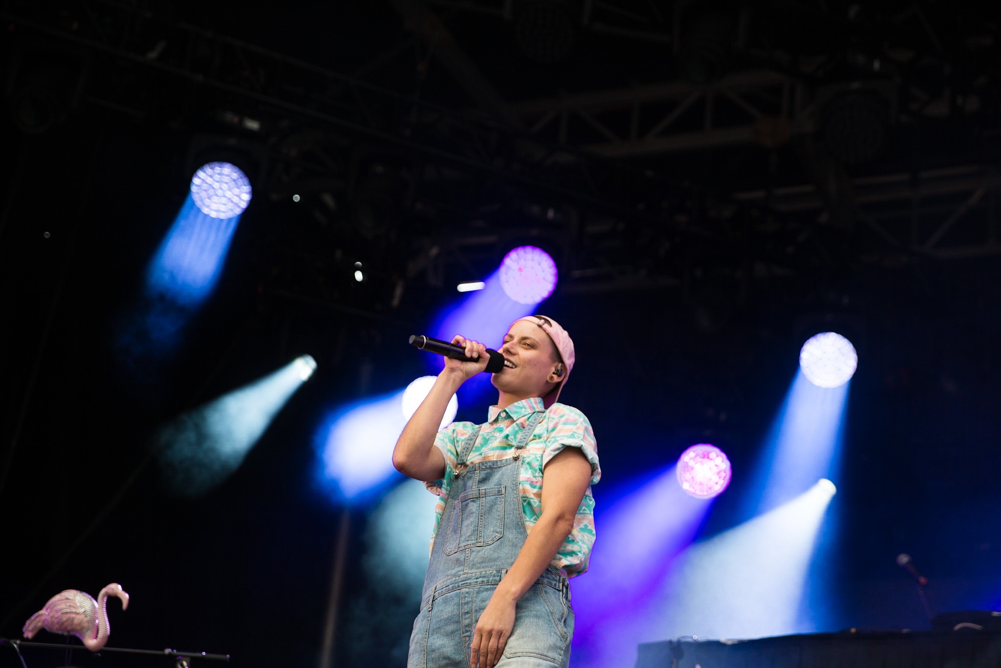 Pour qui ne connaît pas Calamine, on a envie d’être son amie après une chanson. En spectacle, Calamine est drôle, pertinente et dynamique. Après avoir évité la mort qui aurait découlé d’une piqûre de guêpe (elle y est allergique mortellement), elle a pris le temps de faire une shout-out aux Francos pour leur programmation diversifiée, et je ne pourrais pas être plus en accord. Le spectacle s’est conclut sur un moment plutôt touchant quand Calamine a reçu le prix Félix Leclerc de la chanson ainsi que des bourses totalisant 30 000$. Le sourire aux lèvres et les joues humides de larmes de joie, la chanteuse a tenu à dire que ce prix lui donnait espoir, comme elle a lancé son album dans l’univers en ne s’attendant à rien. Il semble évident, quand on regarde son parcours (finale des Francouvertes, Révélation de l’année de Radio-Canada…), que le public l’a attrapé au vol.