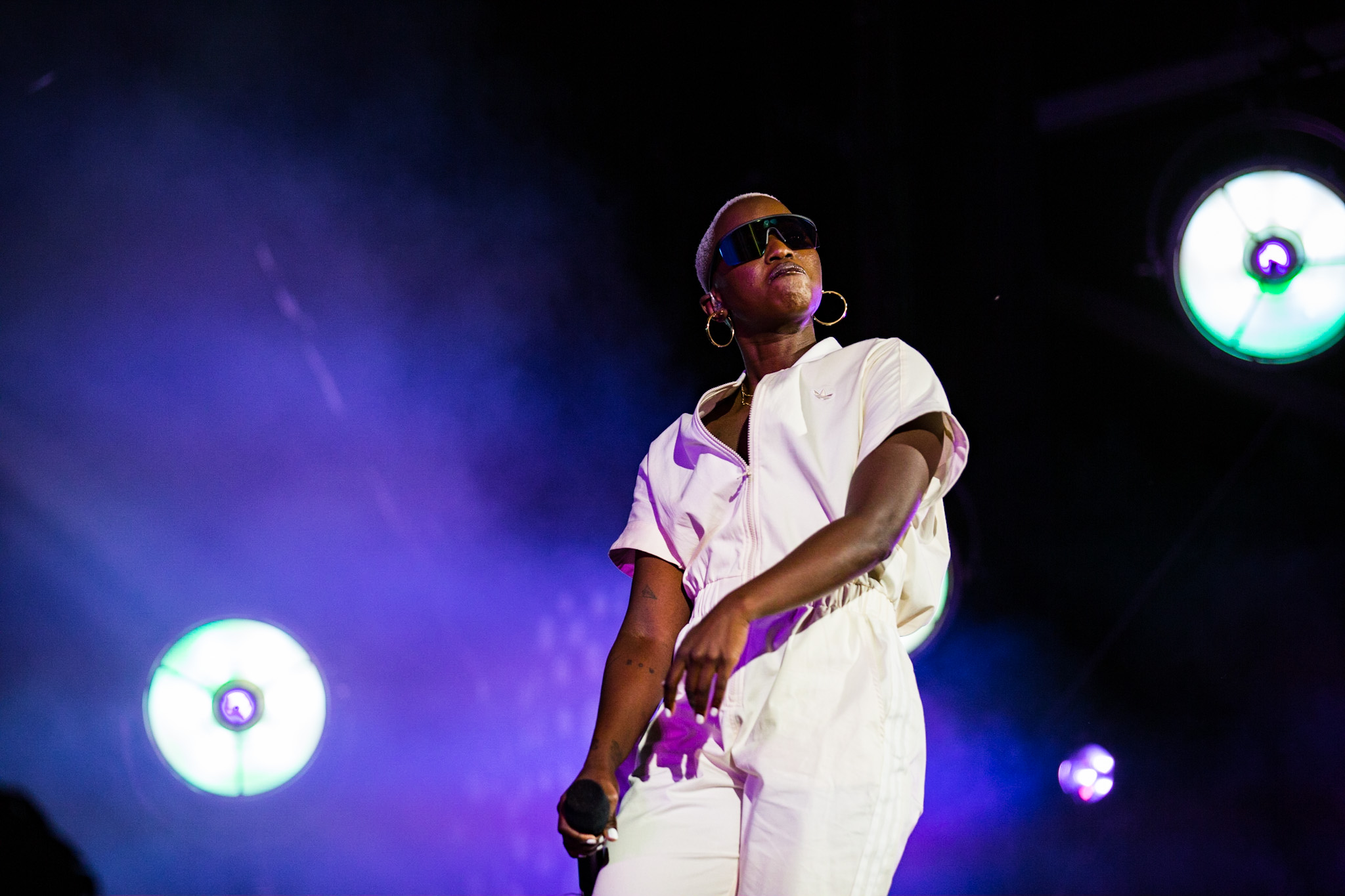 Après une pause qui m’a permis d’avaler un hot-dog/poutine en vitesse avec mes amis, je me suis dirigée vers la scène Bell pour voir Sarahmée. La rappeuse a commencé la soirée en fuego avec sa pièce homonyme. J’ai vraiment aimé l’heure complète passée en compagnie de Sarahmée. Sur scène, elle est hypnotisante; on voit qu’elle n’en est pas à ses premiers pas! Elle a d’ailleurs tenu à remercier Laurent Saulnier, l’homme derrière la programmation des Francos, de lui avoir donné sa chance pour la première fois en 2013.