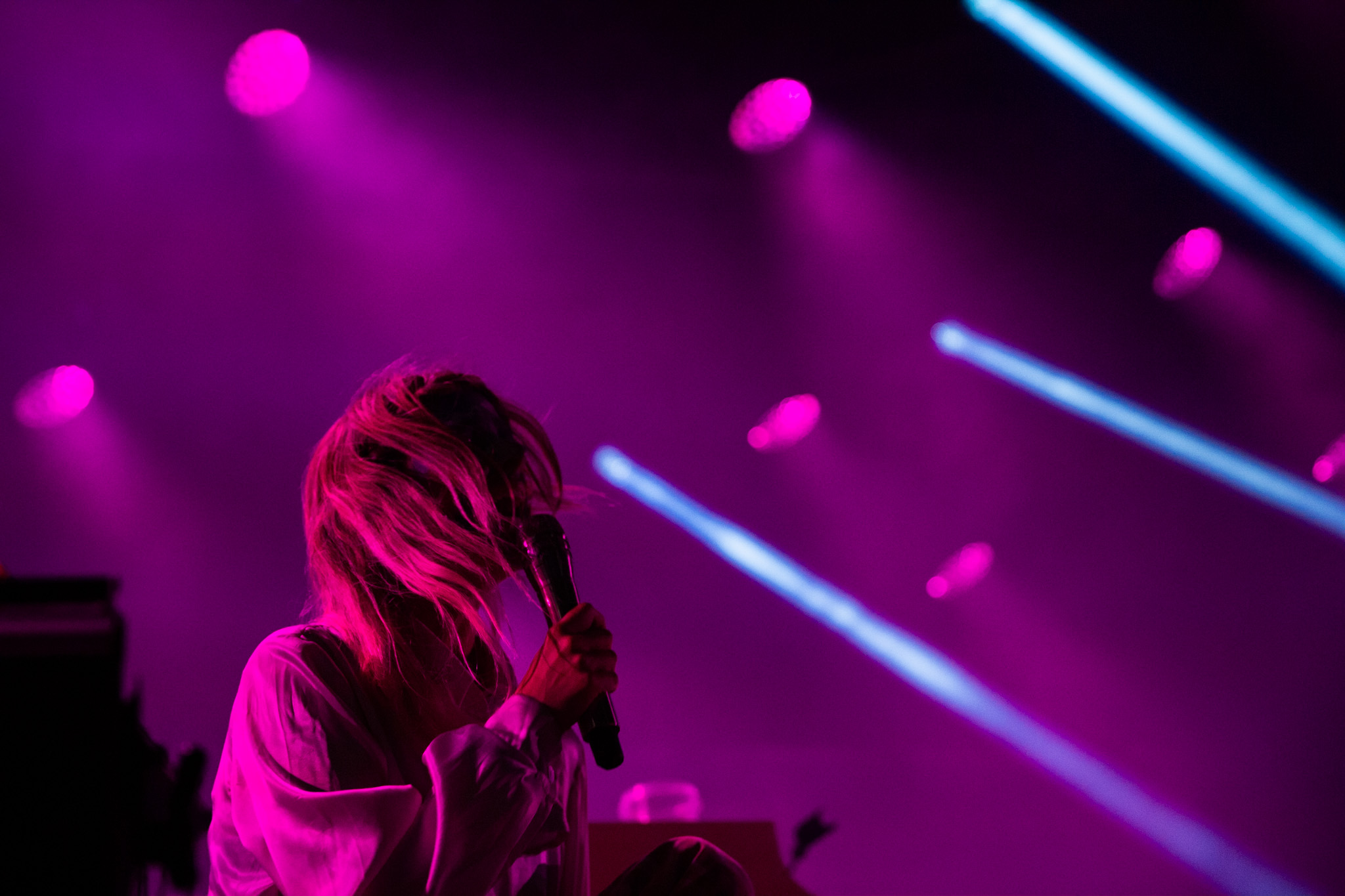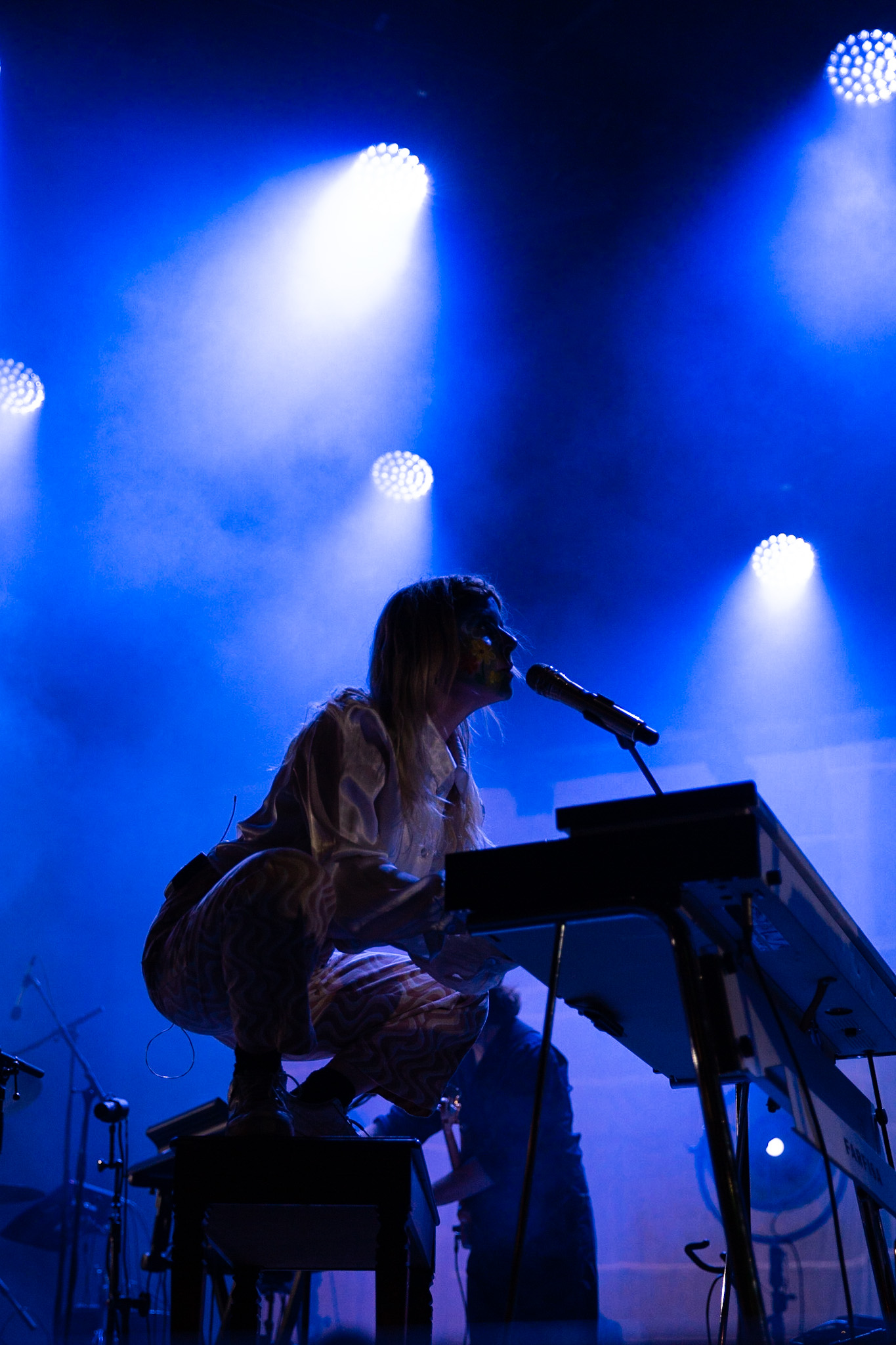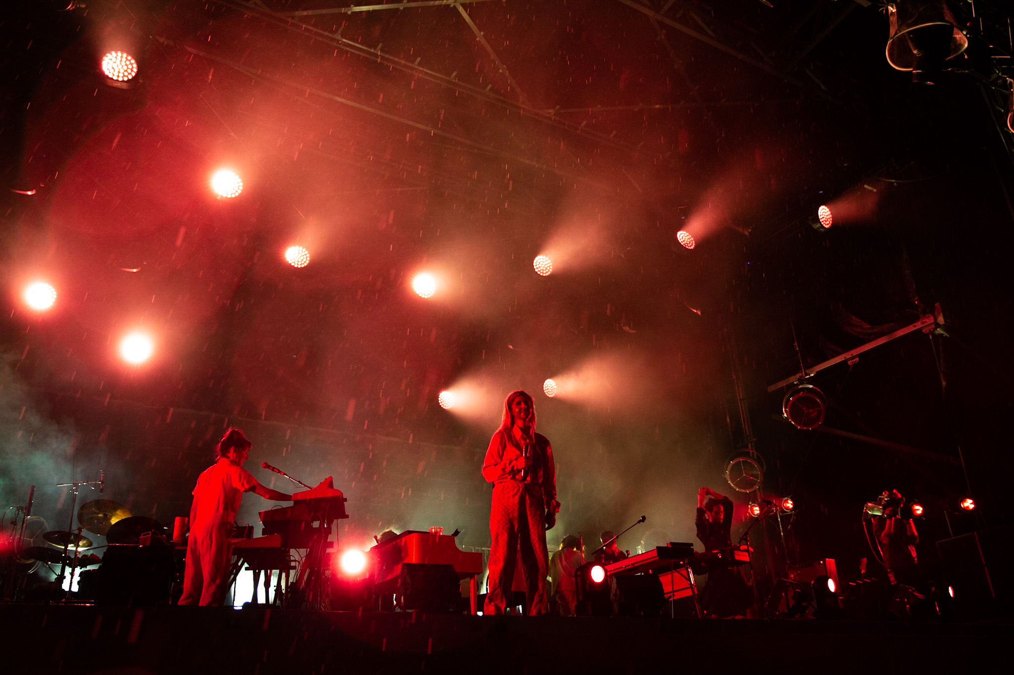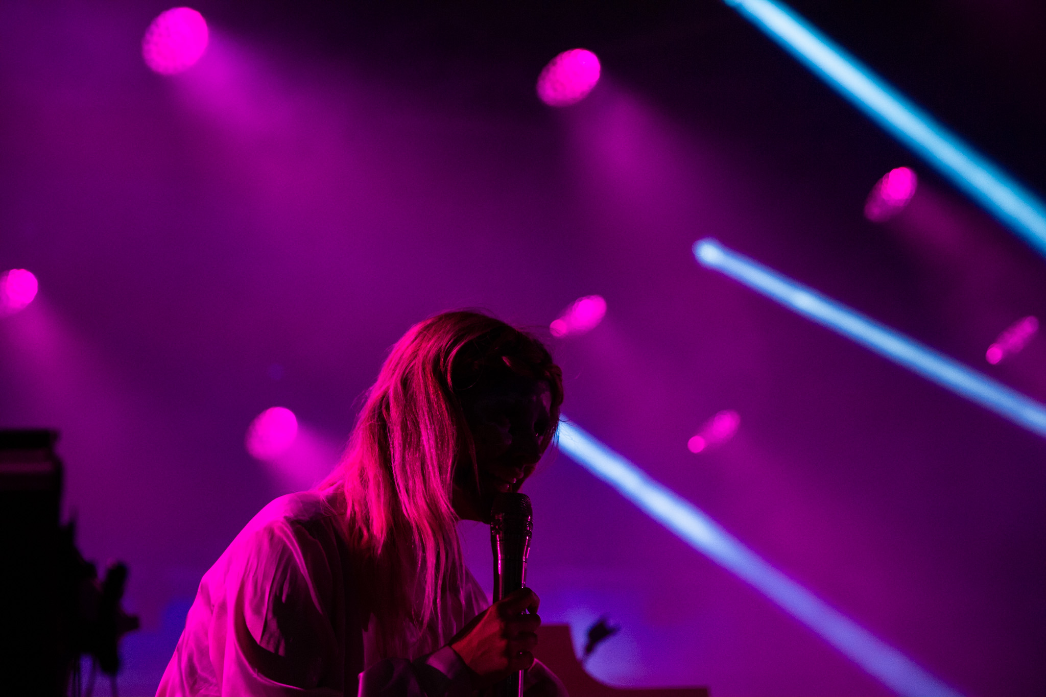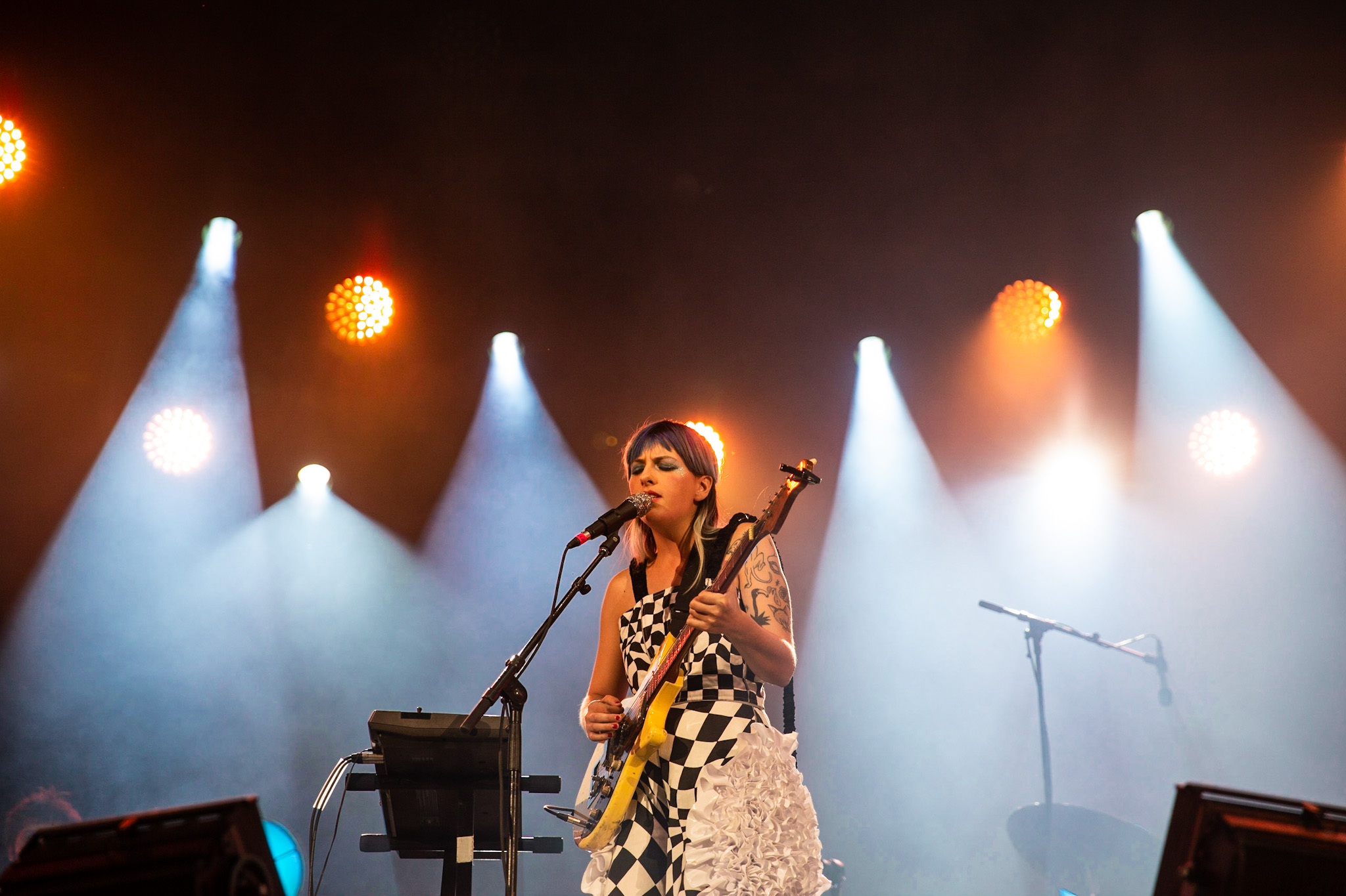 En raison des retards, j’ai passé moins de temps avec Alaclair Ensemble. J’ai donc quitté pour me voir Klô Pelgag qui officiait sur la scène Bell. Cette fois-ci les « enclos » de 500 personnes étaient un peu plus remplis. Lorsqu’on sait que les billets des Francos se sont envolés si rapidement, c’est un peu décevant de voir qu’une partie des détenteurs ne viennent pas sur place, alors que des fans qui voudraient y être ne peuvent assister au concert. Heureusement, il y a les diffusions en direct sur le web qui permettent tout de même de voir les concerts, mais je trouve ça un peu frustrant autant pour l’organisation que pour ceux qui aimeraient y être.