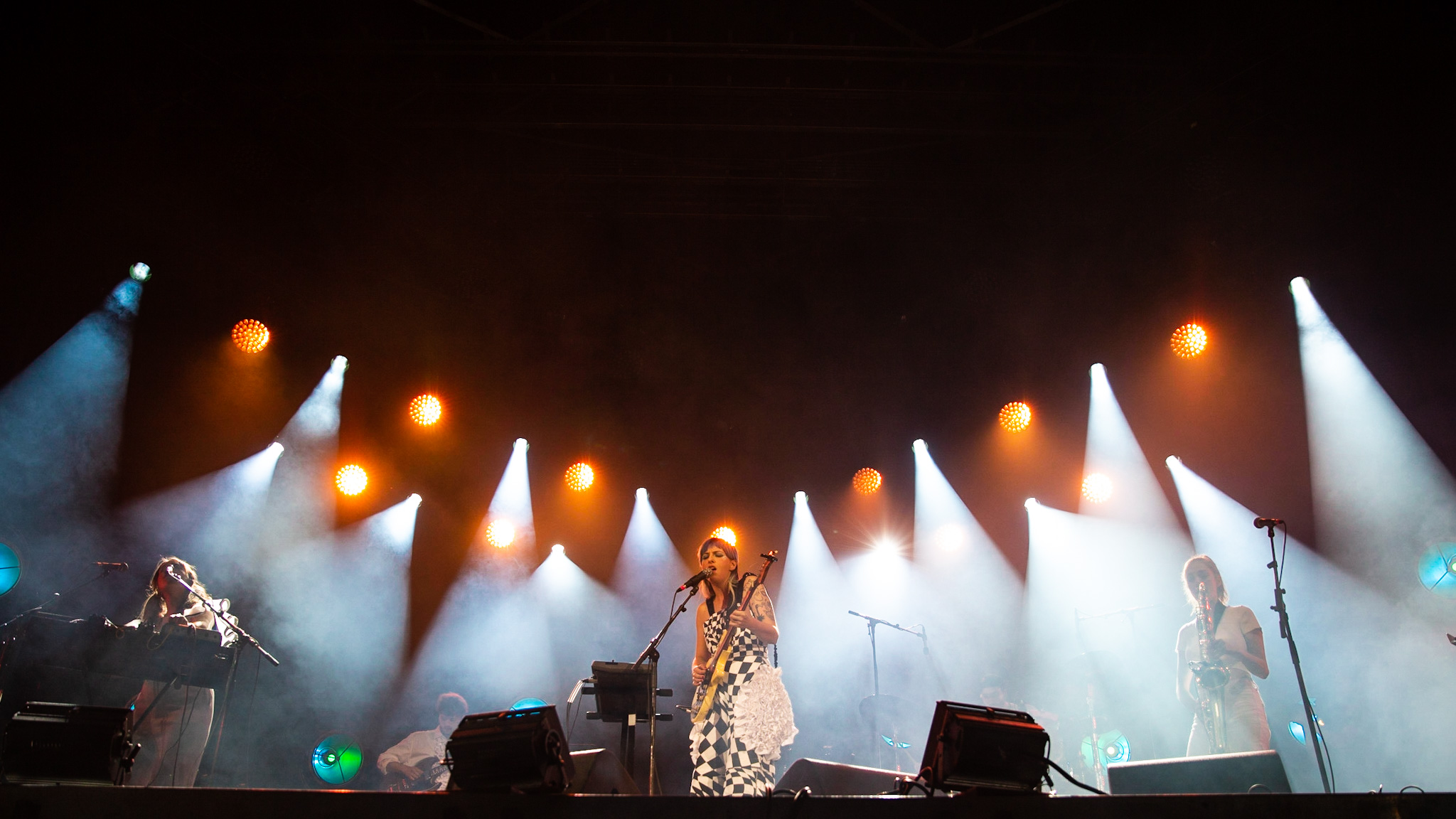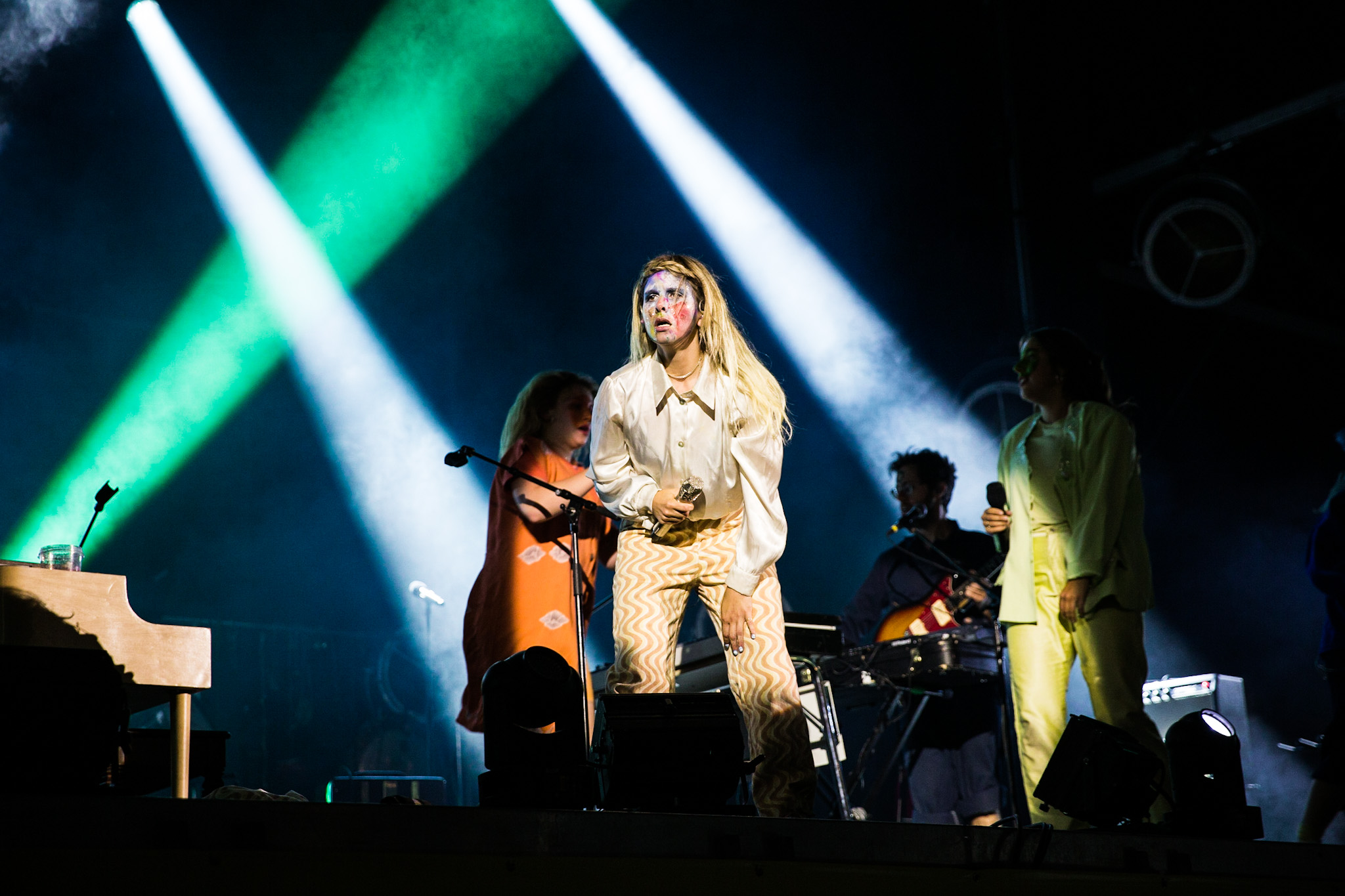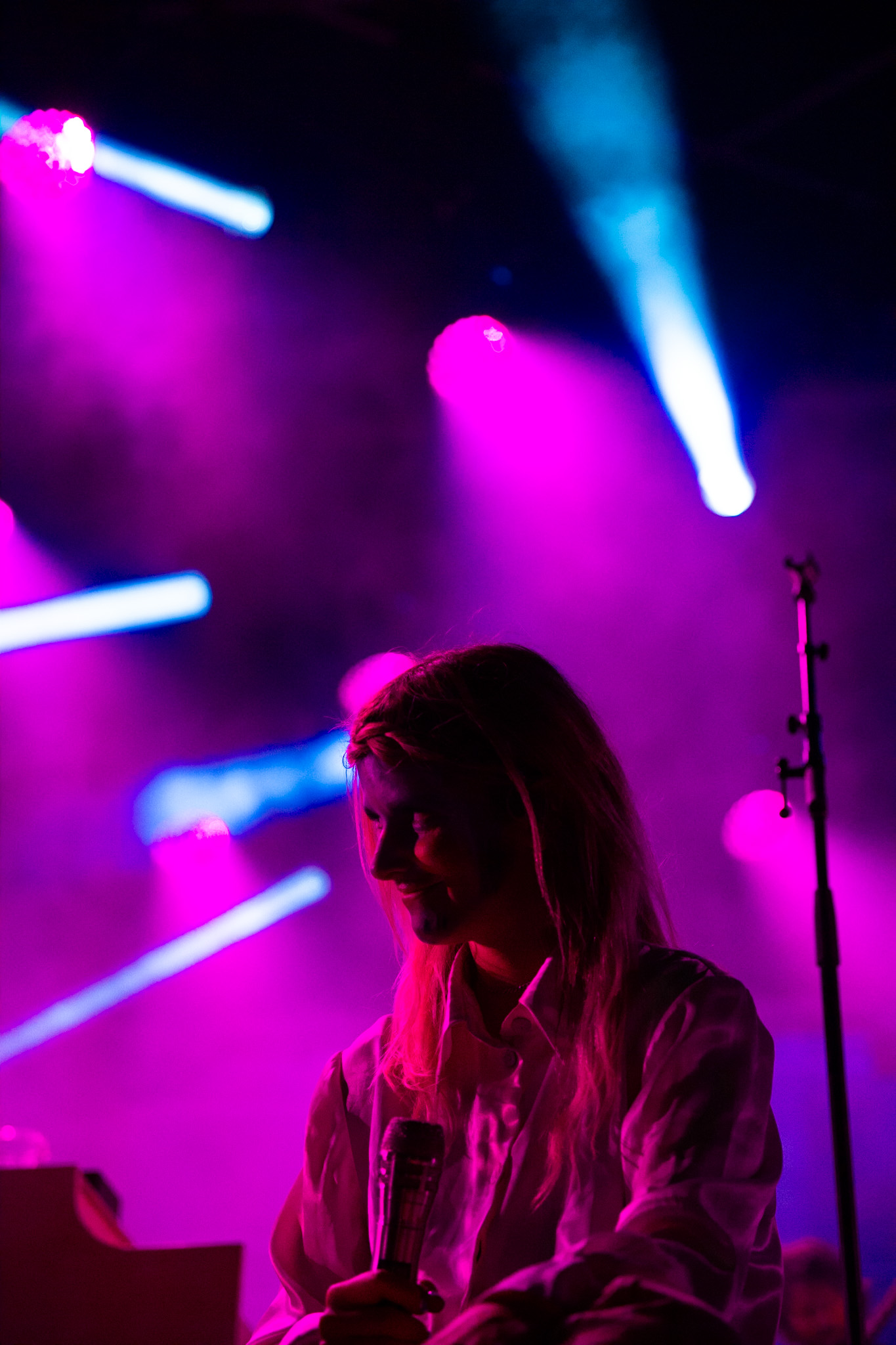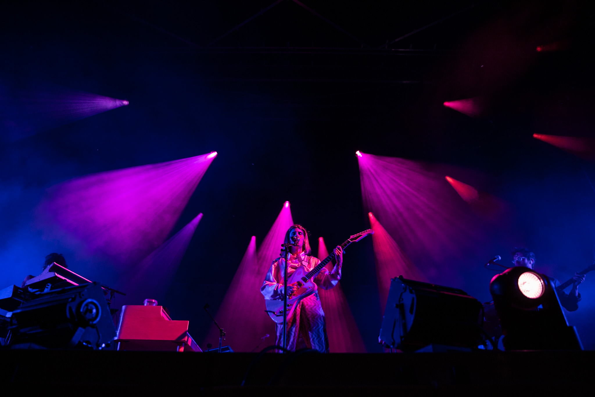 Tout aussi coloré que dans ses clips, Étienne Côté est accompagné d’une solide brochette de musiciens pour livrer ses chansons : Daphnée Brisette (Bon Enfant), Laurent Massie (Oui merci), Eliott Durocher (Mon Doux Saigneur), Tonio Vargas-Morin (réalisateur émérite) et N Nao. D’ailleurs, cette dernière avait toute une soirée! Elle jouait avec les trois artistes sur cette scène puisqu’elle enchainait avec Laurence-Anne, puis avec Klô Pelgag au sein des vénérables Grand-mères à broil. Revenons à Lumière, qui lui, a donné un bon concert de rock avec une belle touche d’inspiration 60/70 qui est fidèle aux versions de son album A.M.I.E.S.A.M.O.U.R. C’était très sympathique et parfait pour lancer une première soirée de Francos.