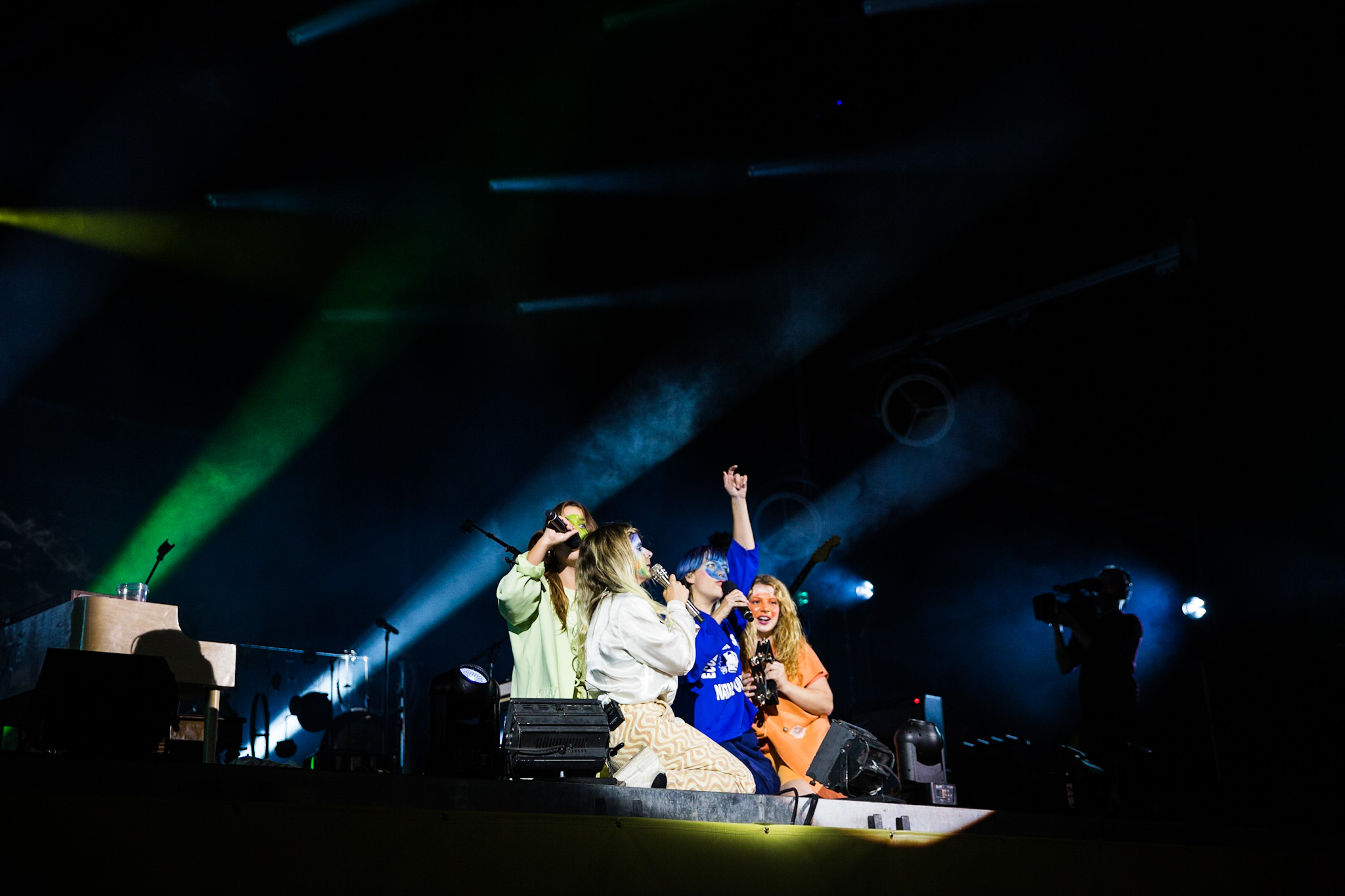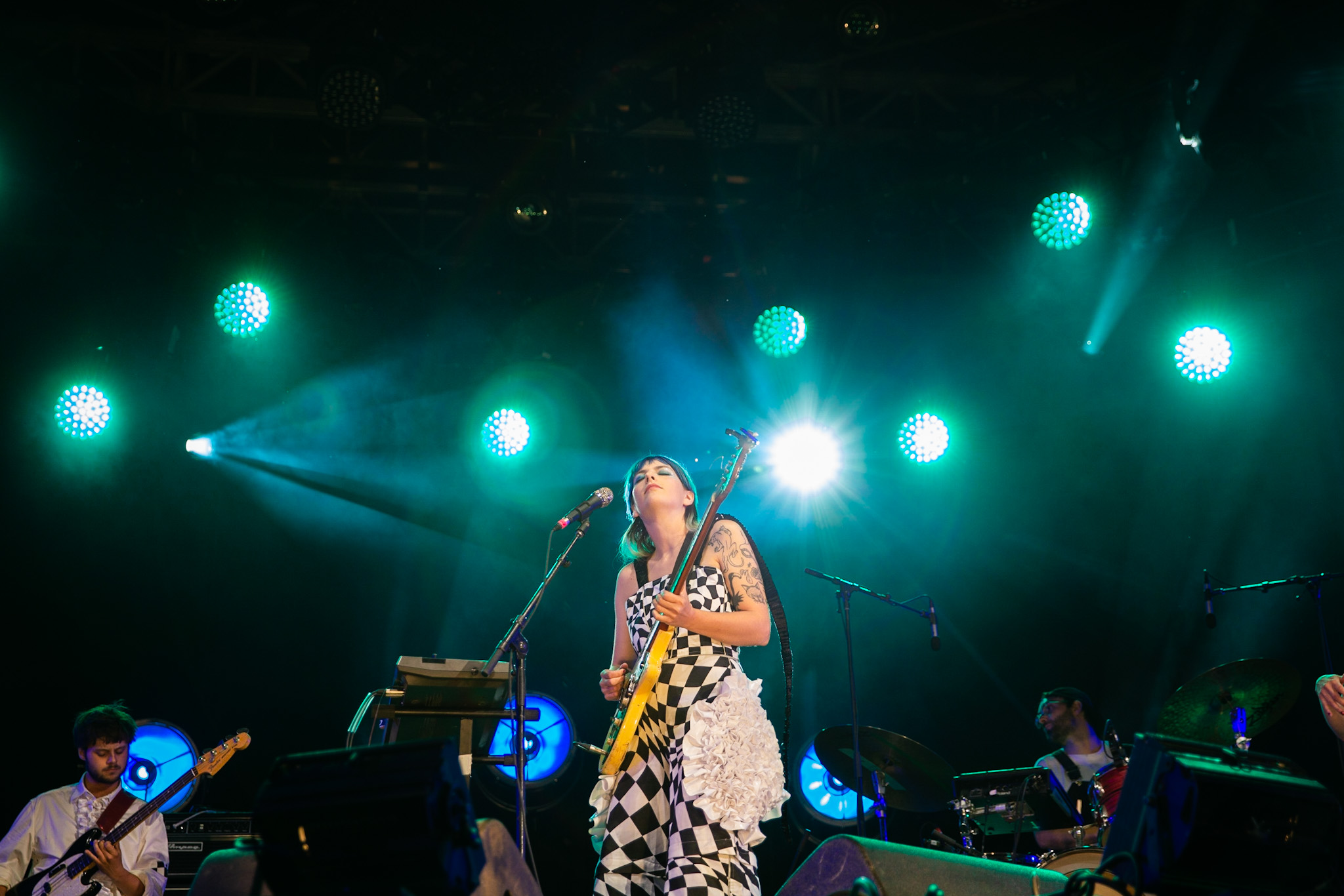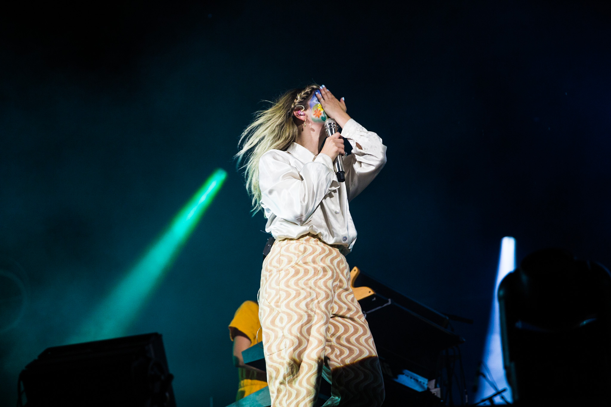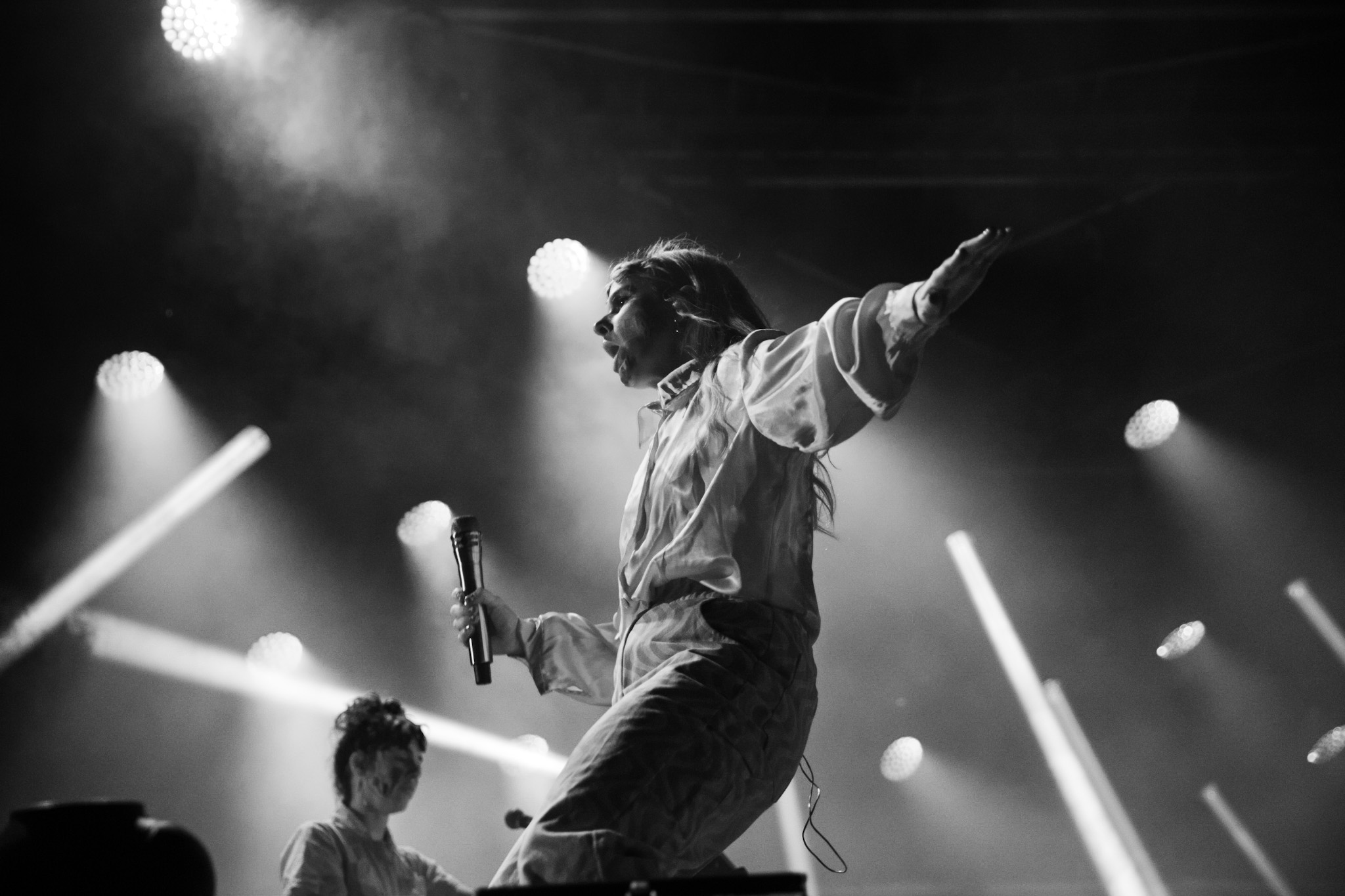 Tout aussi coloré que dans ses clips, Étienne Côté est accompagné d’une solide brochette de musiciens pour livrer ses chansons : Daphnée Brisette (Bon Enfant), Laurent Massie (Oui merci), Eliott Durocher (Mon Doux Saigneur), Tonio Vargas-Morin (réalisateur émérite) et N Nao. D’ailleurs, cette dernière avait toute une soirée! Elle jouait avec les trois artistes sur cette scène puisqu’elle enchainait avec Laurence-Anne, puis avec Klô Pelgag au sein des vénérables Grand-mères à broil. Revenons à Lumière, qui lui, a donné un bon concert de rock avec une belle touche d’inspiration 60/70 qui est fidèle aux versions de son album A.M.I.E.S.A.M.O.U.R. C’était très sympathique et parfait pour lancer une première soirée de Francos.