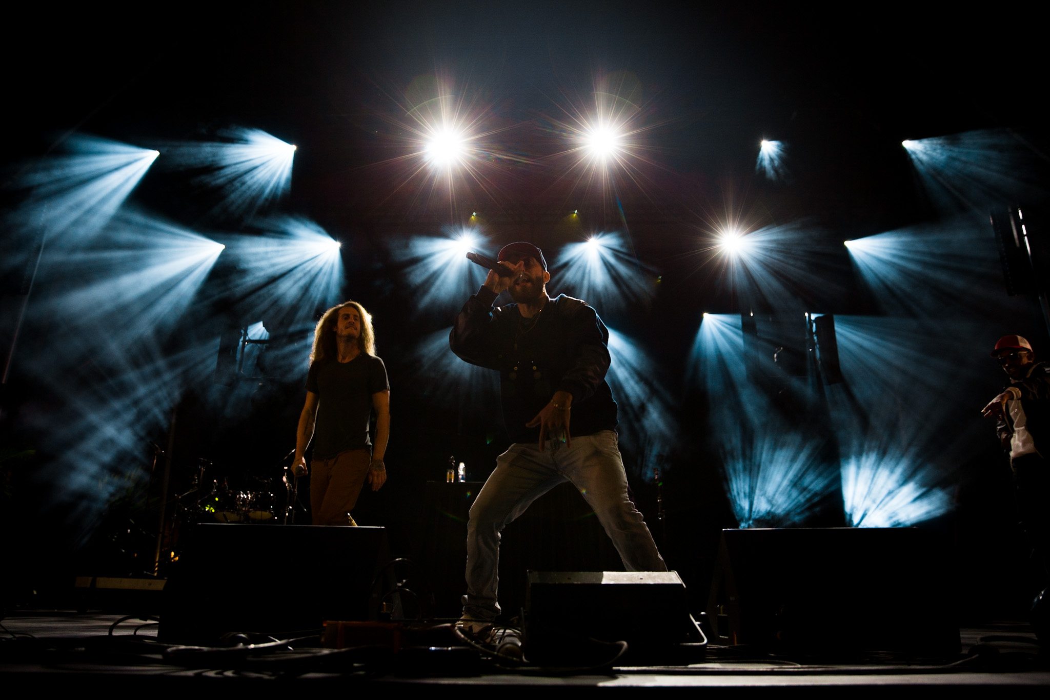 Parce qu’il faut toujours que ça arrive au pire moment. Alors que je discutais avec des amis entre deux spectacles, une pénombre nouvelle est tombée. On se regarde en cherchant pourquoi il fait soudainement si noir et on se rend compte qu’il y a panne de courant sur la scène principale. On commence à prier pour que ce ne soit pas le cas à la scène Loto-Québec. Évidemment, c’est la même chose qui se passe de ce côté. On attend donc patiemment à l’extérieur du site que le courant revienne. Environ une vingtaine de minutes plus tard, la lumière éclaire à nouveau le site.