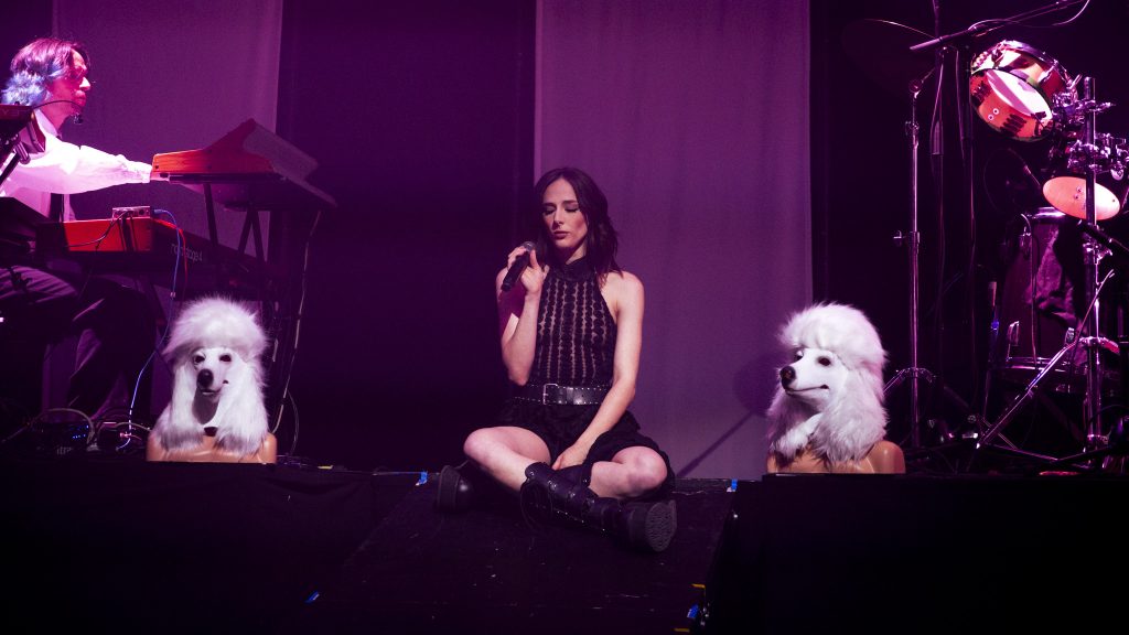Il y avait un petit quelque chose de Janet Jackson dans sa manière de se présenter. C’était digne des stars de la pop américaine. Quand essoufflée, elle a dit : « Tsé, le monde qui danse et qui chante en même temps, c’est du sport… », après I.W.Y.B., qui terminait une séquence où des danseuses (Eva Carrubba et Stéphanie Hébert) étaient venues la rejoindre. La danse a toujours fait partie de l’approche d’Ariane Roy dans ses clips, c’est le cas dans Ta main déjà. Mais sur scène, c’est une première fois qu’on la voit aller si loin et ça lui va bien. Elle est énergique, contagieuse et séductrice à la fois. Elle le fait à la fois sérieusement dans la technique travaillée avec le chorégraphe Chad Concepcion et en même temps avec une folie assumée, comme lorsqu’elle revêt un masque de caniche.
