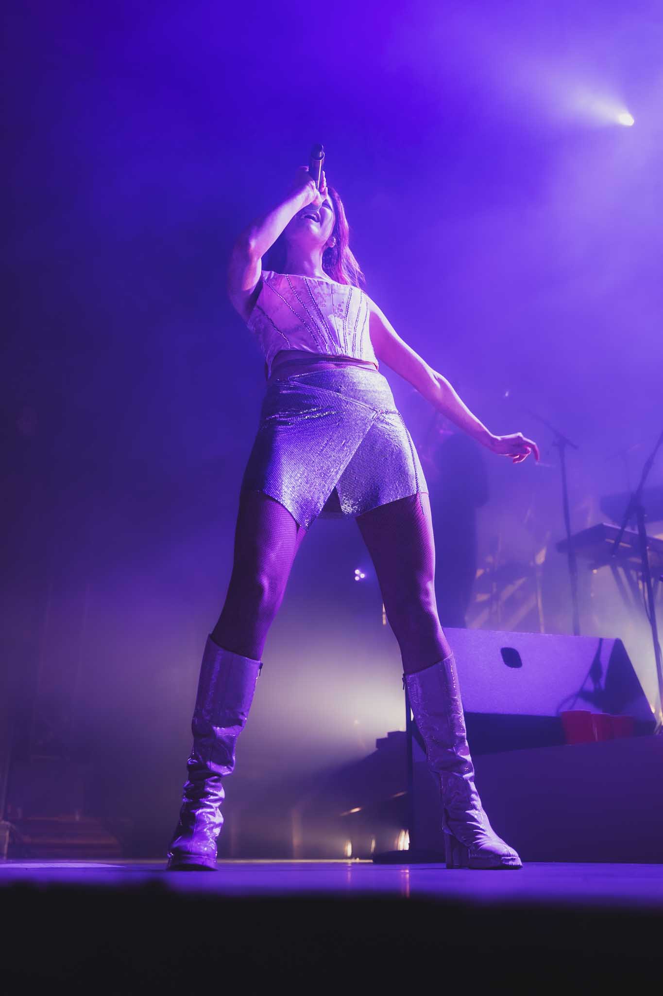 Il y a fort à dire sur ces nouvelles pièces. Il y a des choses qui prennent une autre dimension sur scène. C’est le cas de la voix de Lou-Adriane Cassidy. Puissante, bien posée; elle a livré des envolées impressionnantes à de nombreuses occasions. Elle ne s’est pas fait attendre en nous livrant des salves de ventre dès la première pièce Dis-moi dis-moi dis-moi. En plein contrôle, Cassidy avait l’air de vivre pleinement ses envies à coup de déhanchements, de regards de femme fatale qui finissaient irrémédiablement par se briser dans la vague d’amour que le public lui envoyait. Ces cris et encouragements brisaient le personnage pour nous livrer des sourires francs, honnêtes et humains. C’était très touchant.
