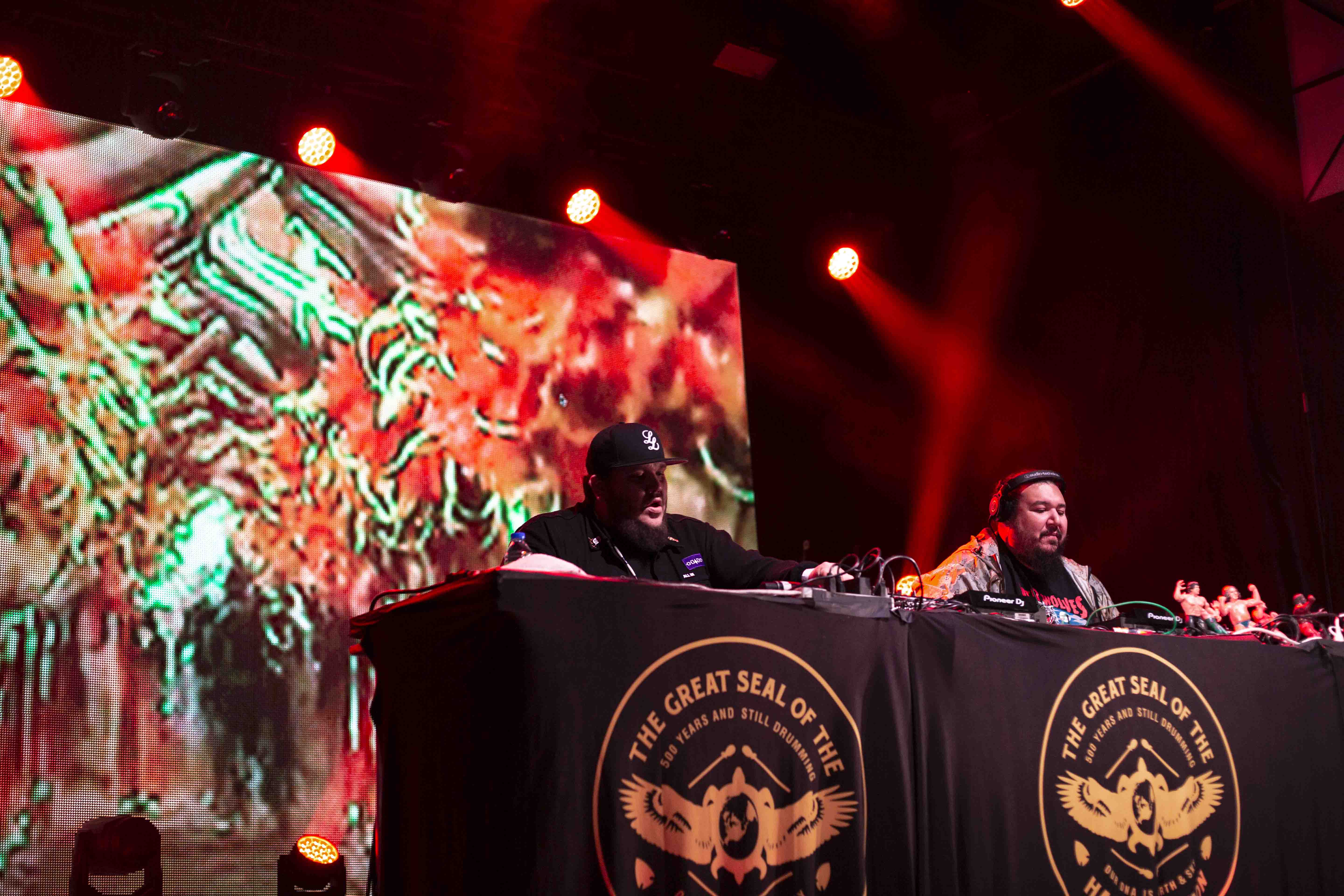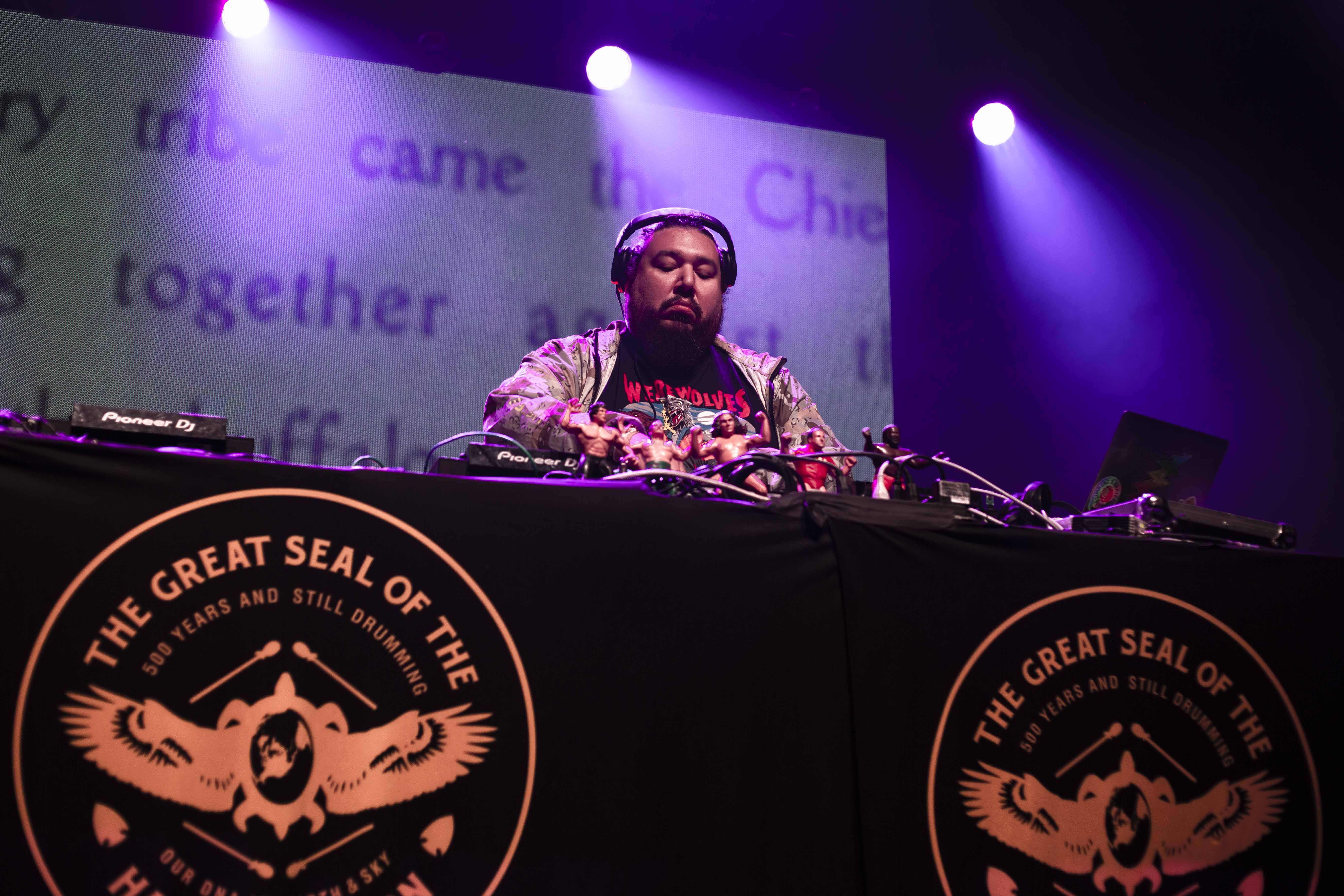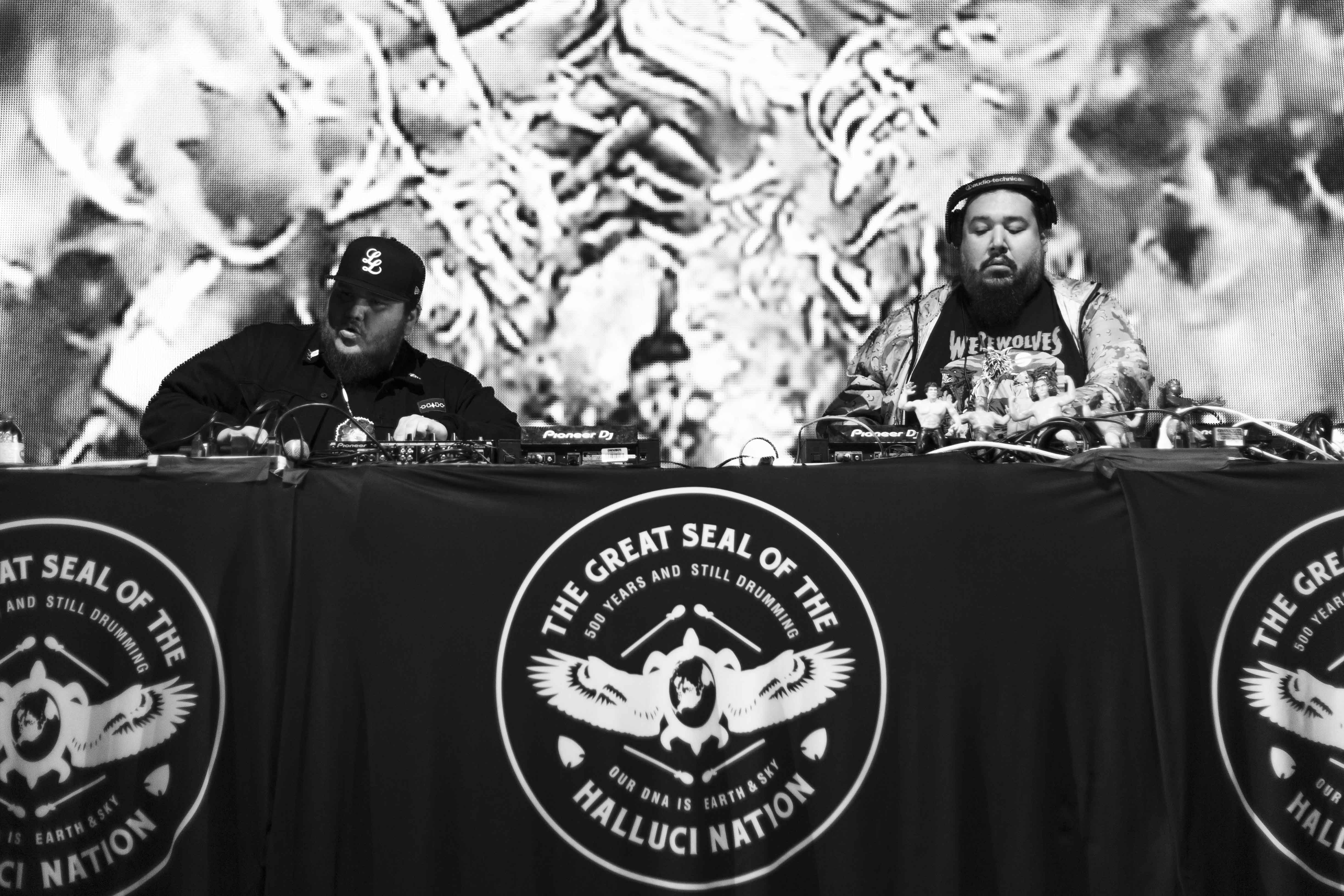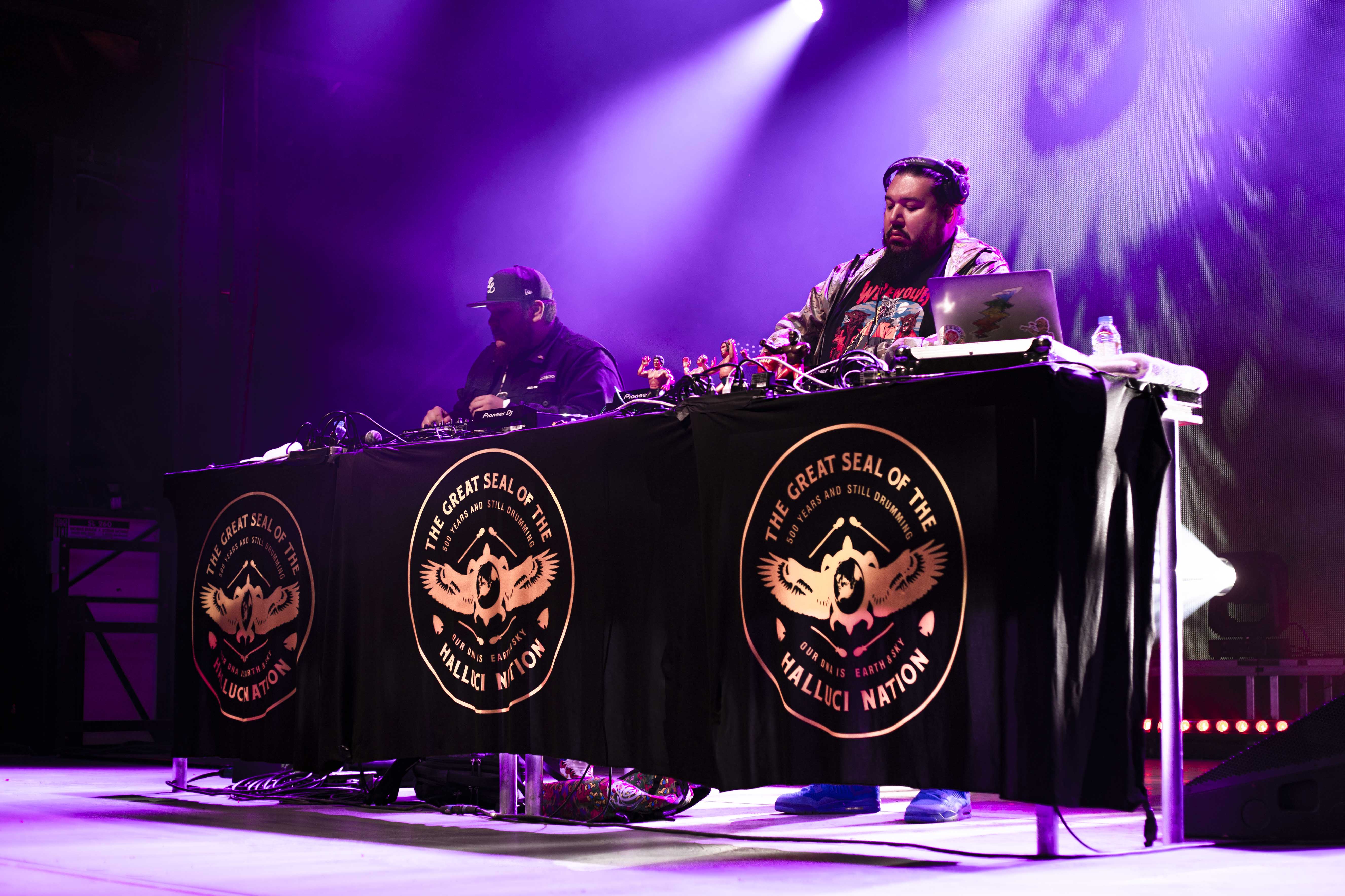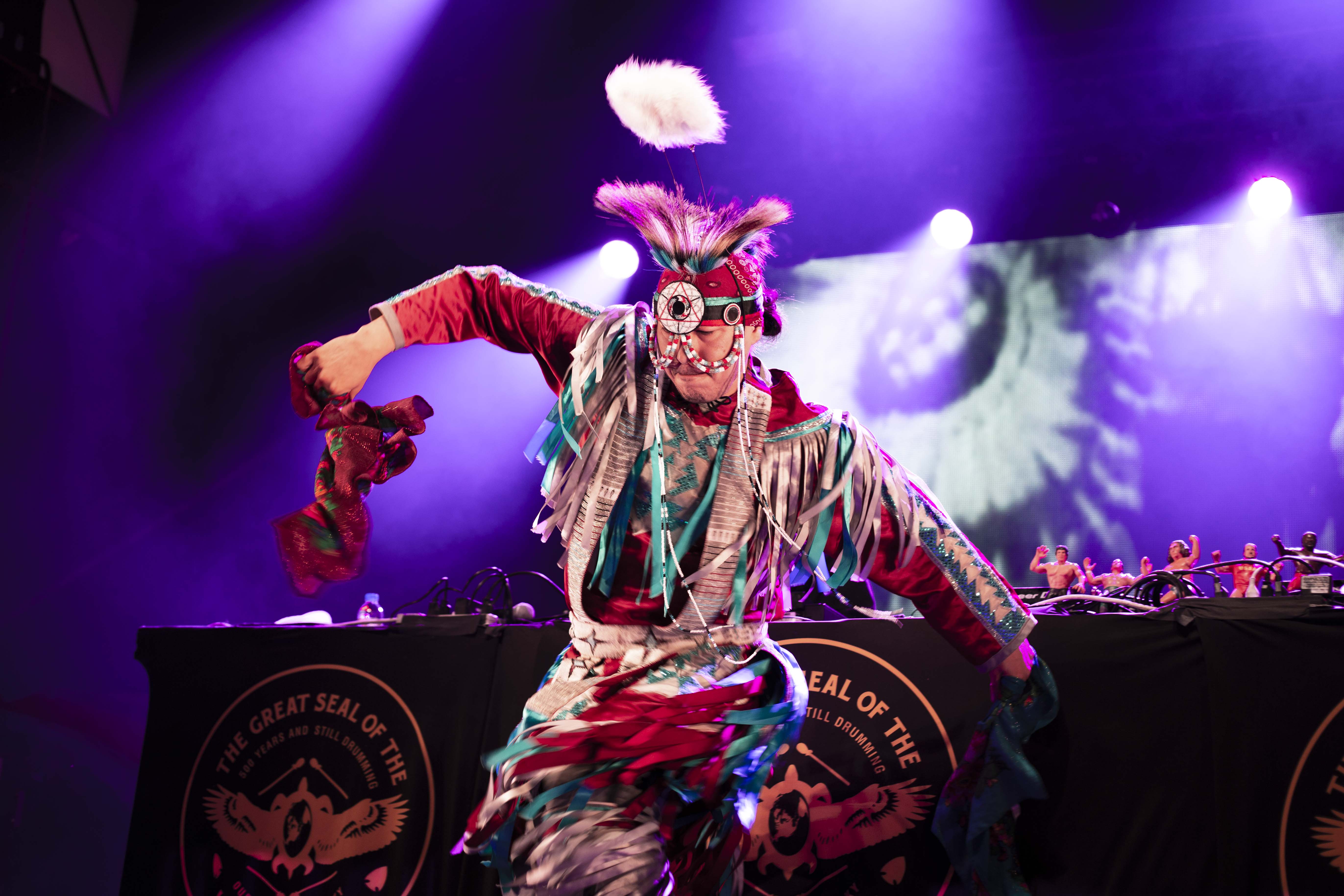 Jamais deux sans trois comme on dit. Avec A Tribe Called Red pour clôturer samedi, le festival ne pouvait pas se tromper. Les deux DJ qui portent en eux les origines des Premières Nations, n’ont pas tardé à euphoriser la foule qui était déjà bien disjonctée depuis les deux dernières prestations. Accompagnés par des visuels colorés, un montage qui alliait une multitude de scènes où figurait des gens des Premières Nations – comme l’une des scènes du film Back to the Future – les deux musiciens ont également bénéficié de la présence de danseurs pour dynamiser leur prestation. Bien entendu, voir des gens debout devant leurs machines n’est pas ce qu’il y a de plus excitant et, à ce sujet, A Tribe Called Red l’a bien compris. Alliant les sons de leurs origines avec des sons nouveaux, des productions de club, en plus de puiser dans le trap pour n’en nommer qu’une infime partie, le duo a tout pour plaire et surtout, tout pour faire danser et donner un sourire instantané.