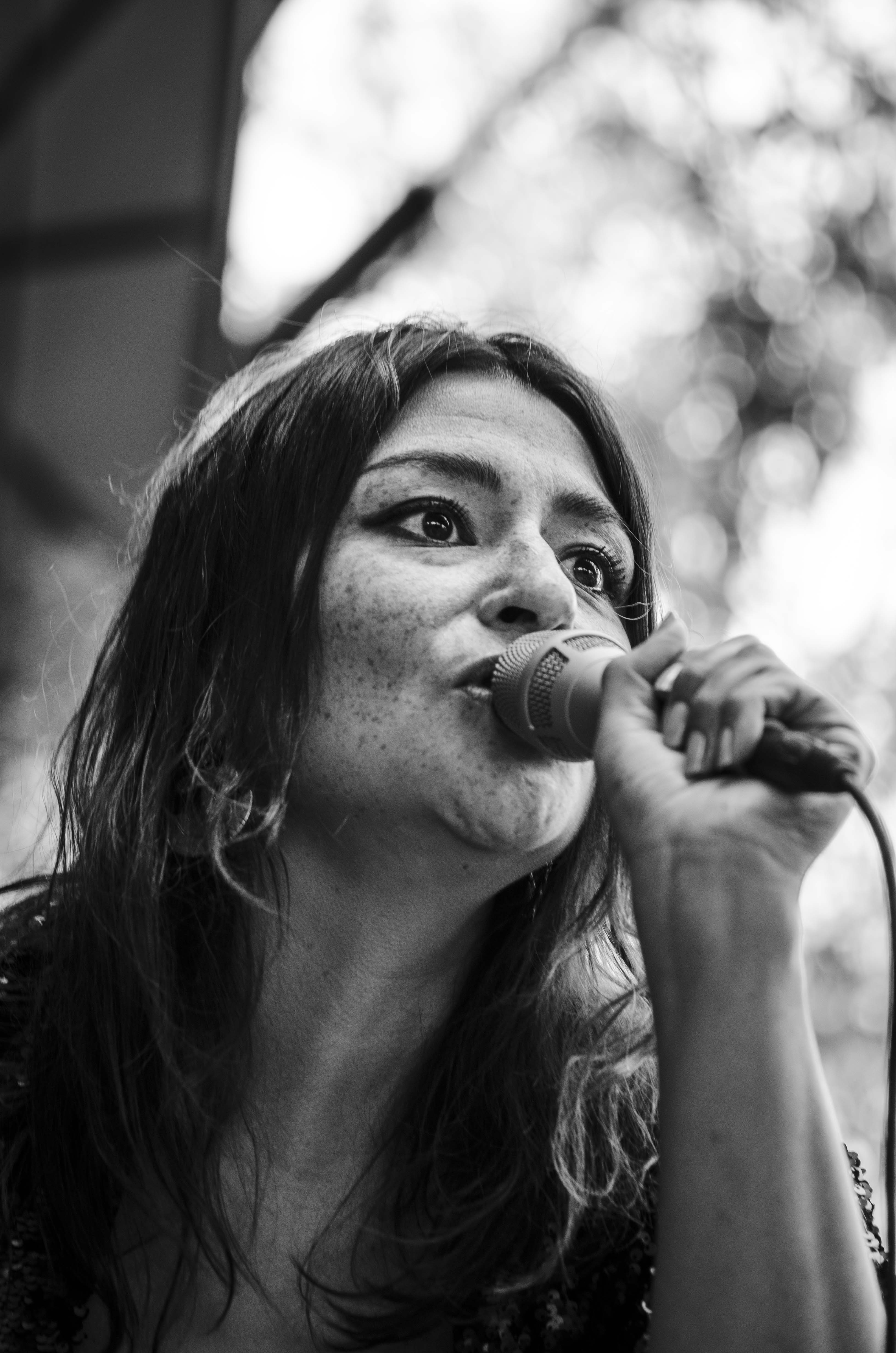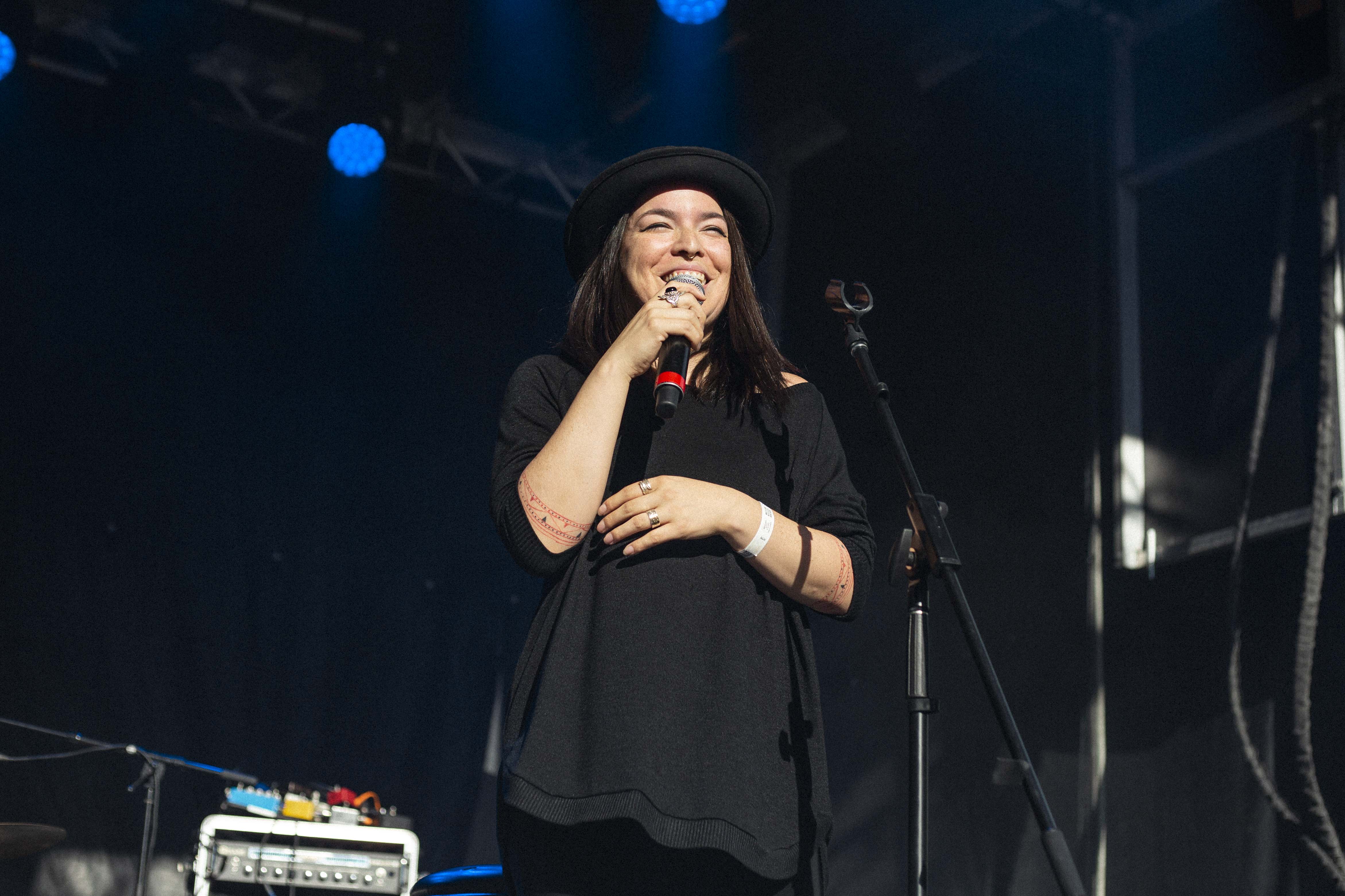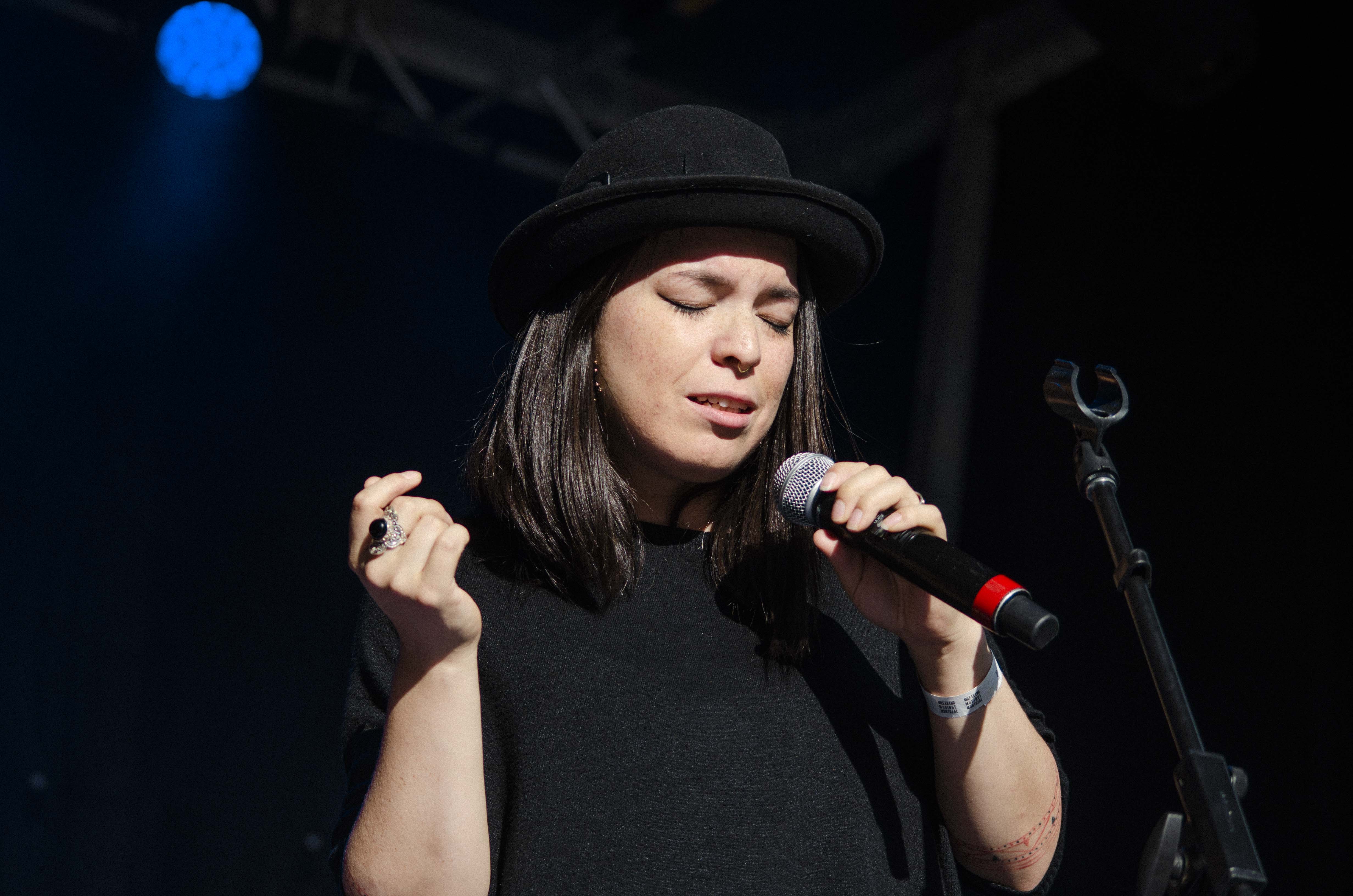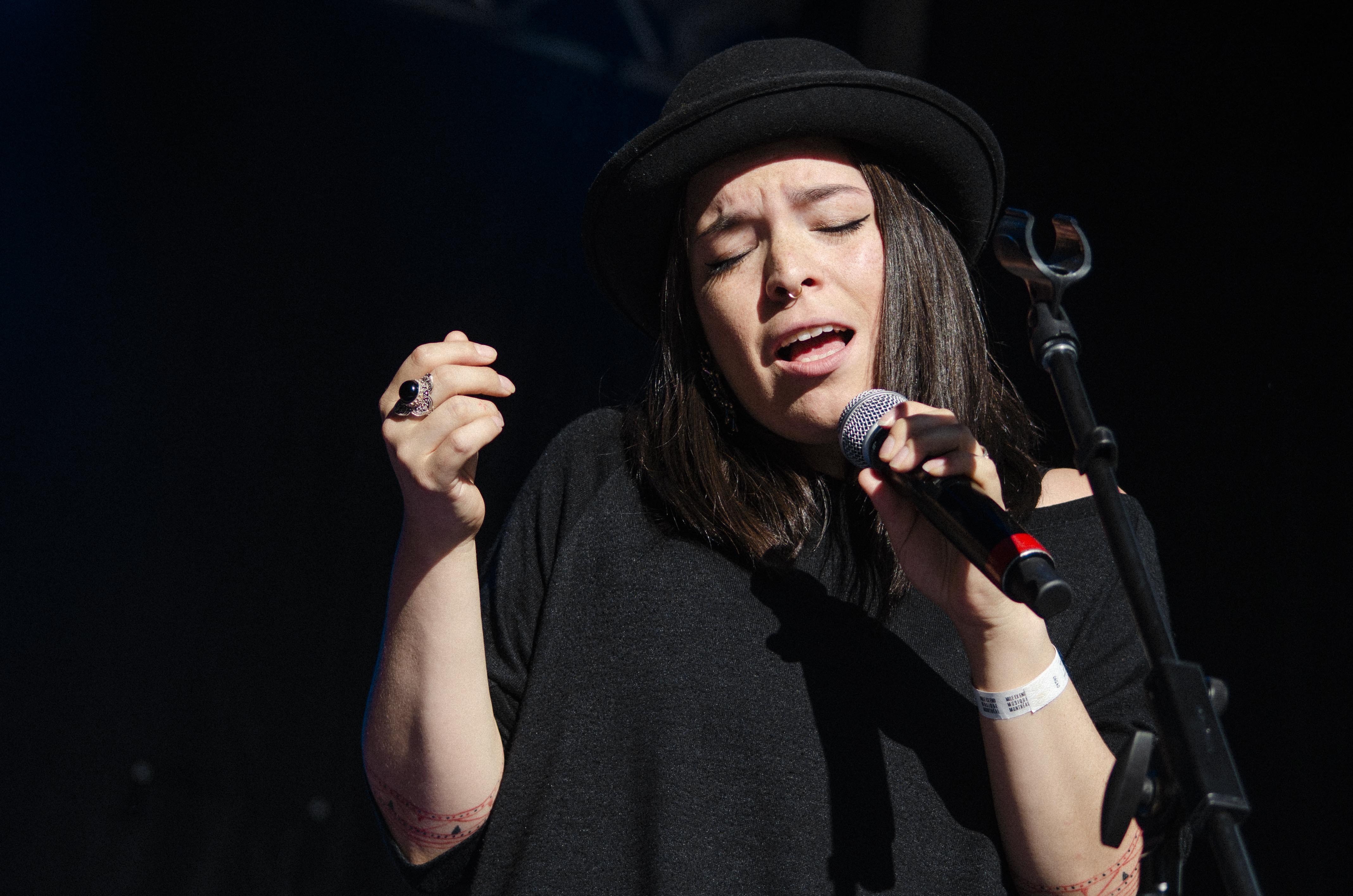 C’est Émilie Clepper qui avait l’humble tâche de débuter la journée et on peut dire qu’elle n’a pas déçu. Il fallait bien sûr s’attendre à la voir jouer devant un public qui tardait à venir au festival, chose qui n’a pas semblé la déranger dans sa performance. Clepper n’était pas seule, alors que chacun des musiciens qui l’ont côtoyé sur scène ont formé un tout avec son univers. Certes, la chanteuse de Québec a une belle voix portante, des textes poétiques qui manquent à l’occasion de contenu, mais ce qui en fait sa petite mine d’or, c’est la chaleur qui se dégage de sa production musicale, c’est pourquoi, entre autres, la présence de la grande basse et du violon a joué un rôle capital dans sa performance.