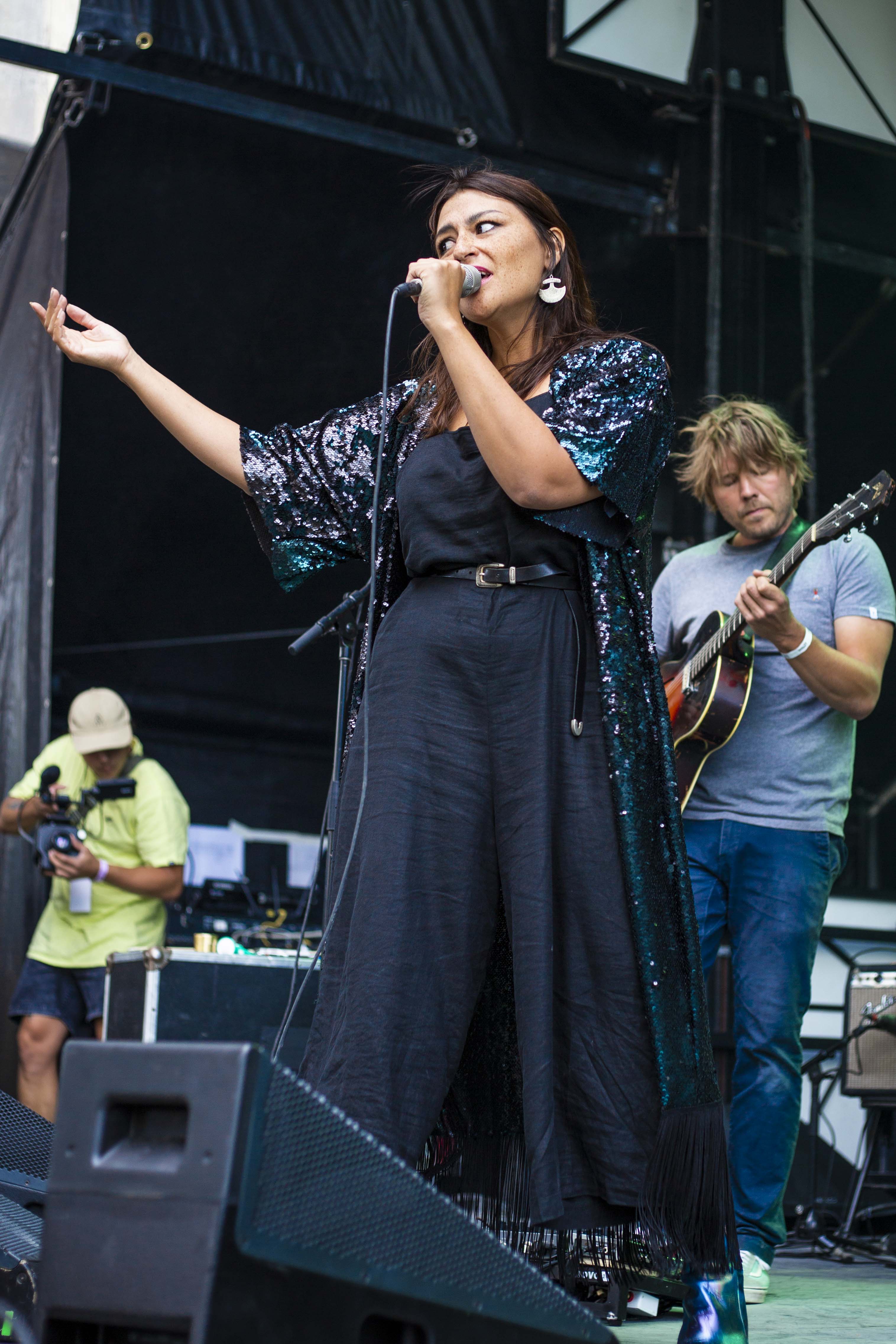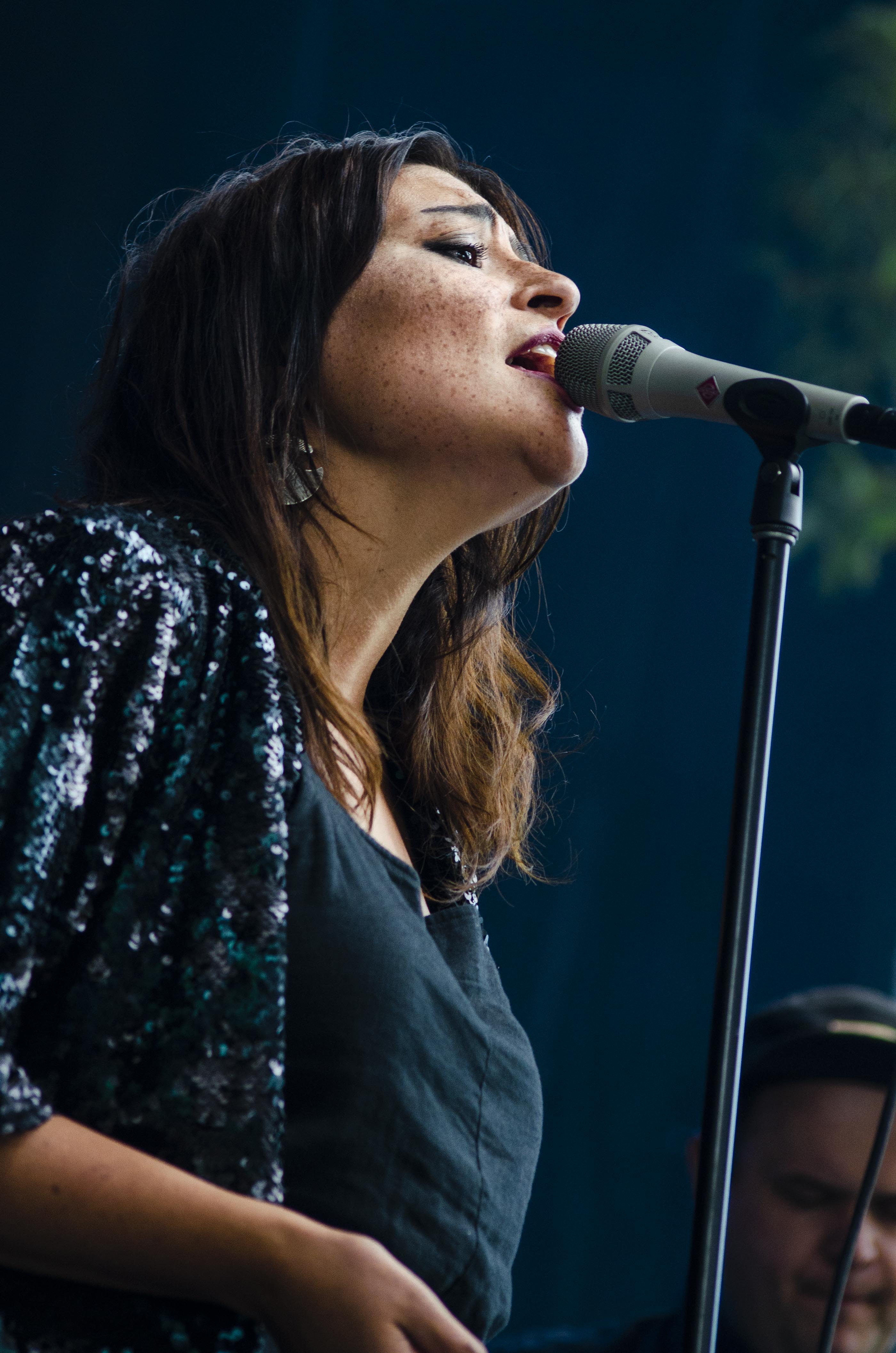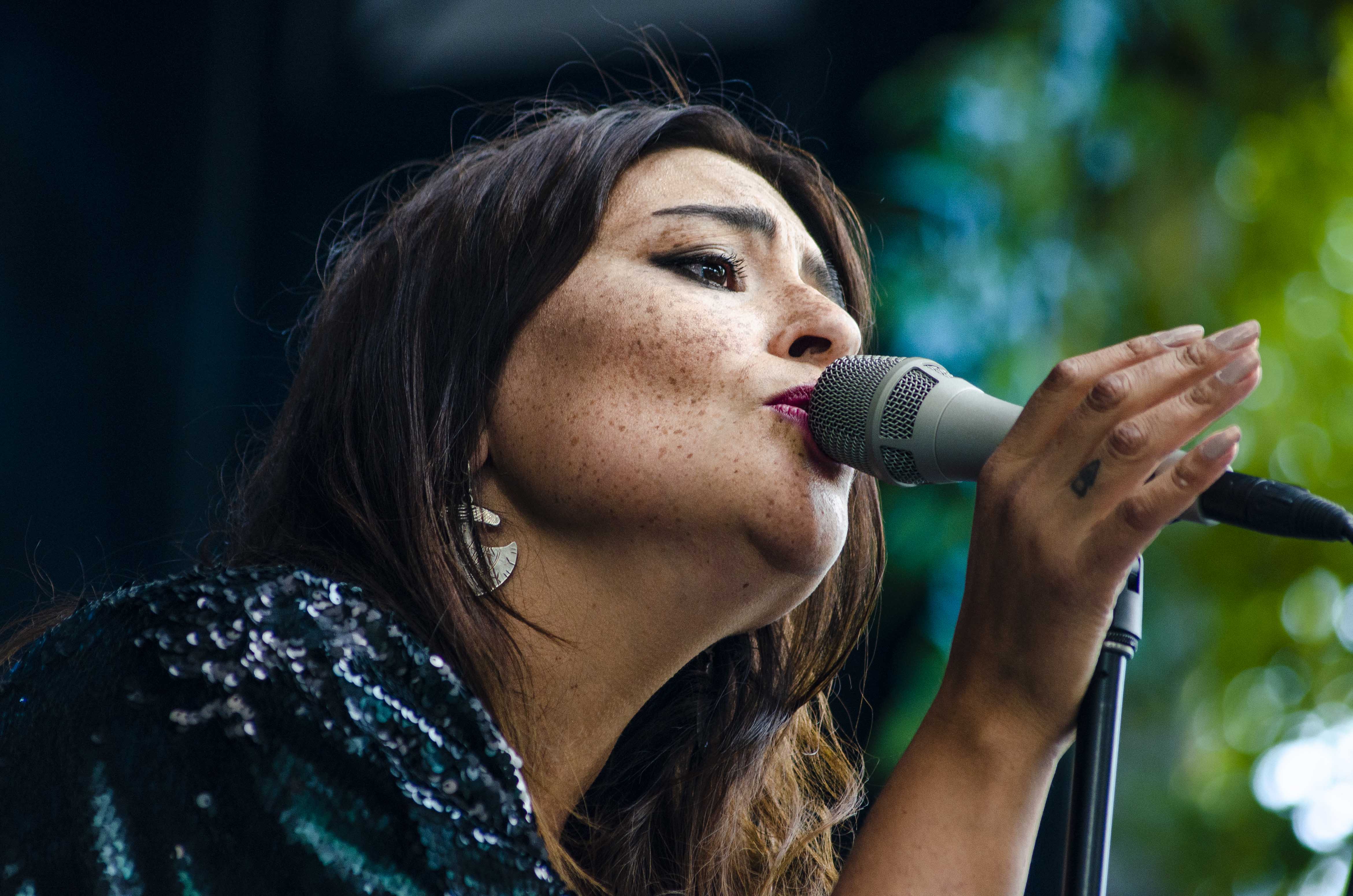 Pour mettre de la suite dans les idées, c’est Natasha Kanapé Fontaine qui prenait place sur l’autre scène à la suite d’Elisapie. Sans rien enlever à sa performance, ce n’est pas sa présence qui fut la mieux reçue et surtout la mieux comprise sur scène. Il était beau de voir la timidité de la jeune femme se dissiper au fil du temps, car il ne semble nullement évident de réciter de la poésie devant autant de gens, et elle fut en mesure de le faire avec brio sur une alternance de piano et de guitare. Elle sait jouer avec les mots qu’elle utilise pour parler elle aussi des Premières Nations, de la nature et tout ce qui en ressort, mais elle devra elle aussi travailler sur sa prestance si elle désire se rendre encore plus intéressante.