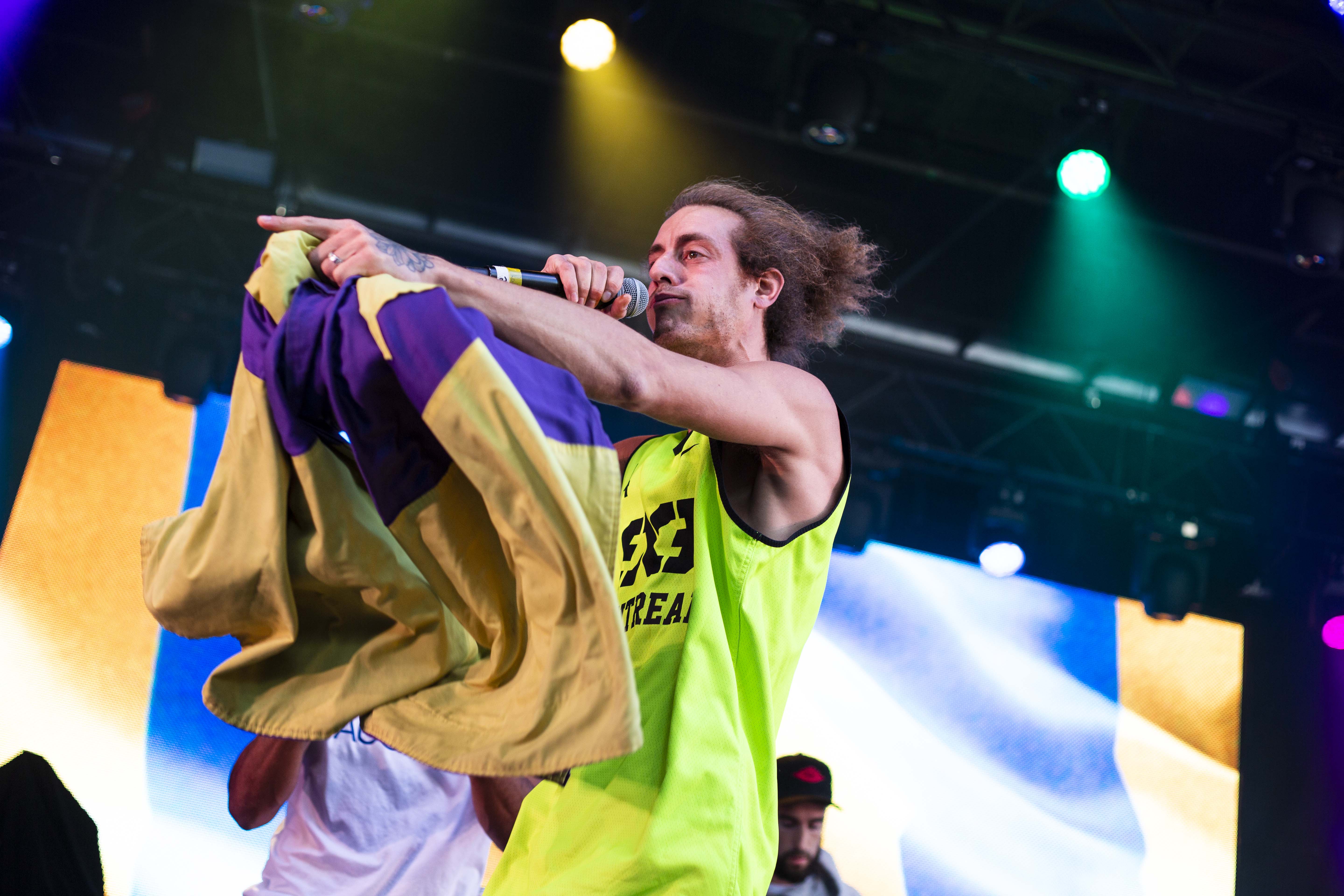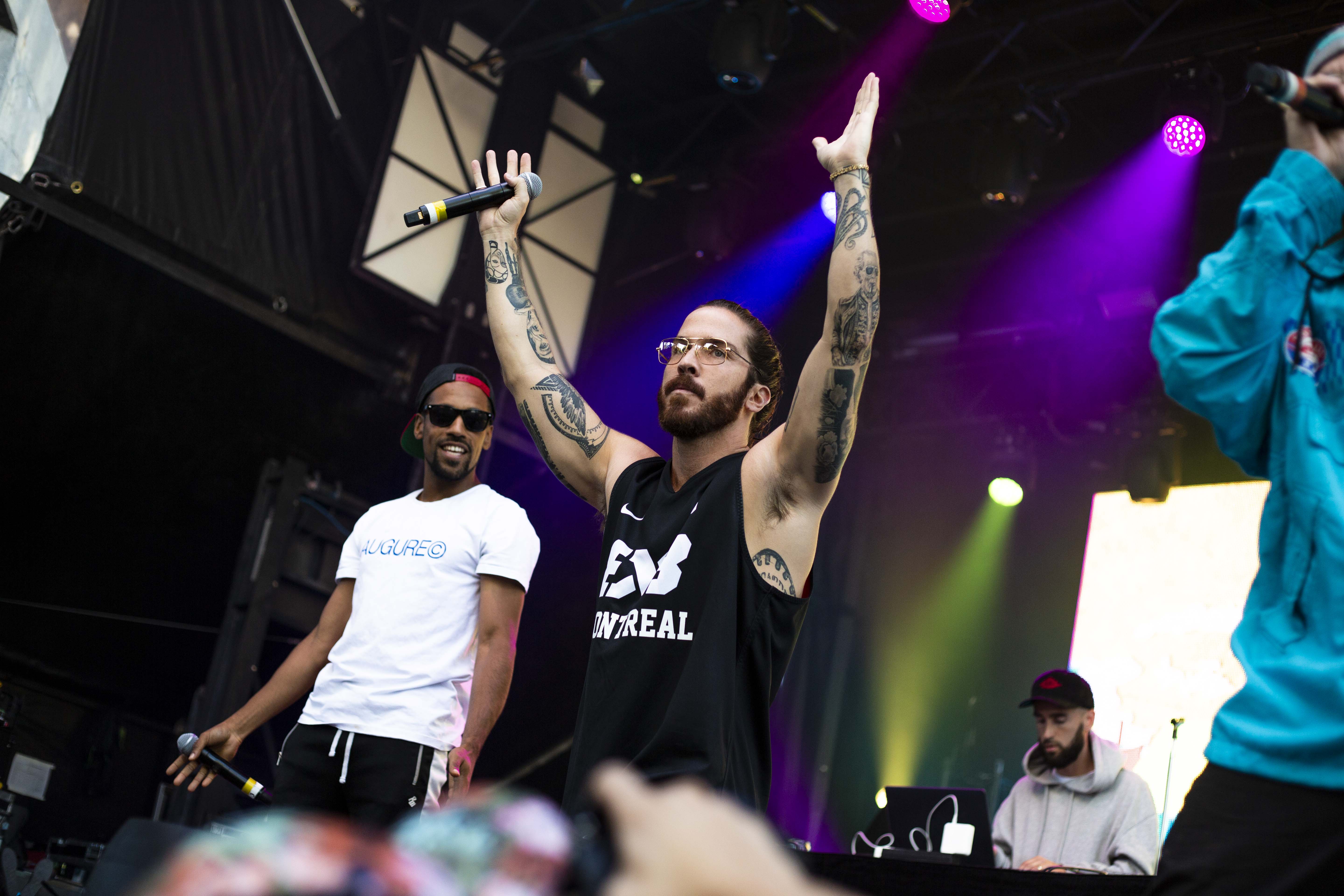 Avons-nous réellement besoin de parler de ce qui s’en vient ? Je vais quand même le faire pour la forme, parce qu’ils mériteront toujours qu’on parle d’eux. Cette bande de joyeux lurons qu’est Alaclair Ensemble a de nouveau démontré ce pour quoi ils sont autant aimé de tous. Ces temps-ci, ils sortent presque tous des projets solos, mais au final, ça se voit et tout le monde le sait, Alaclair Ensemble est une grande famille, sentiment ressenti même dans la foule, même dans celui qui fait leur rencontre pour la première fois. Non seulement ils sont drôles et charmants, ils sont également très talentueux avec une facilité à jongler avec les mots sur les productions léchées à l’américaine du magicien Vlooper. Quel groupe de musique vient faire le train au milieu de la foule pour concevoir une atmosphère festive ? Nul autre qu’Alaclair Ensemble. L’art de se prendre au sérieux sans se prendre au sérieux, ils le maîtrisent parfaitement et c’est ce qui en fait l’unicité de leurs textes comme celle de chacune de leurs performances.