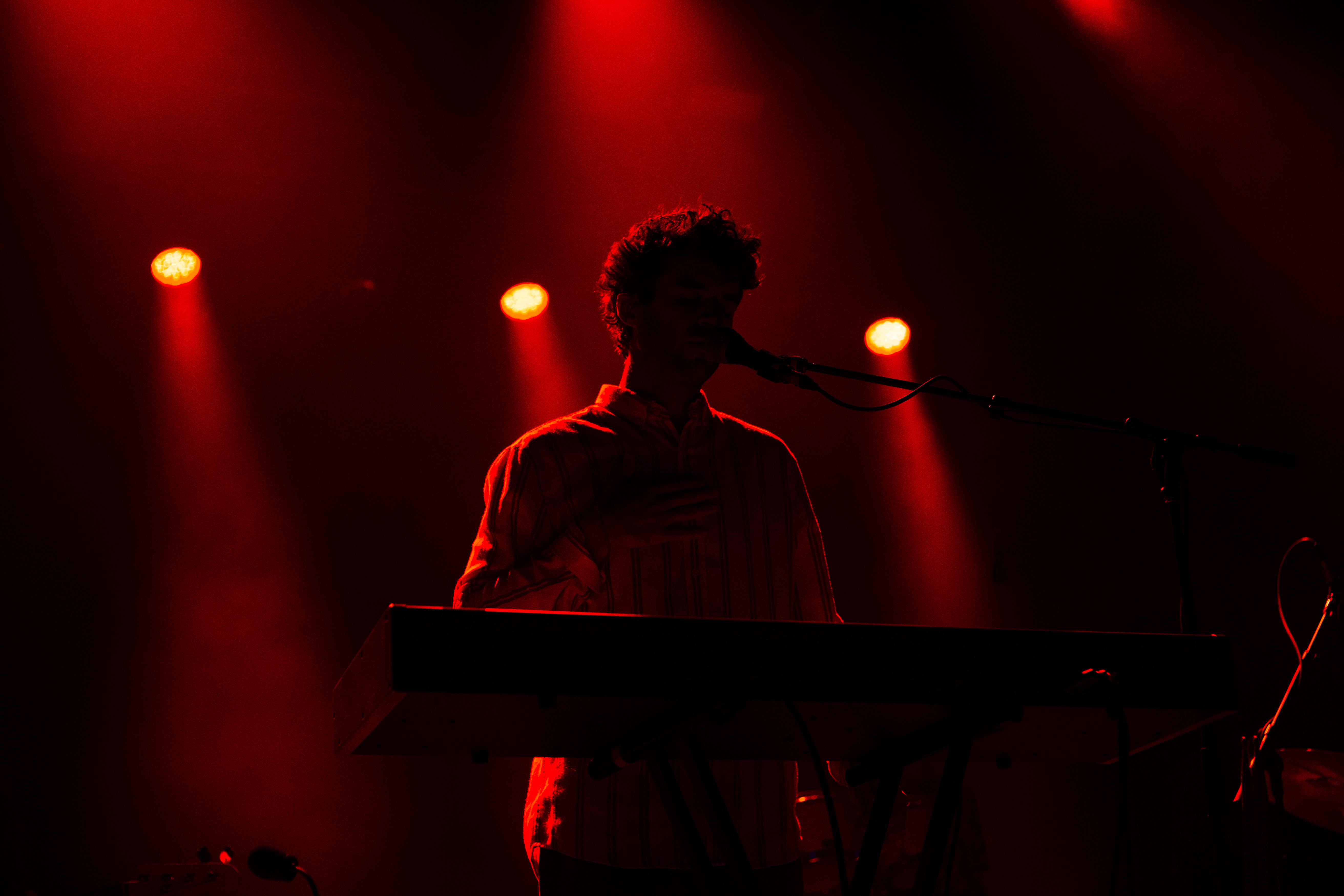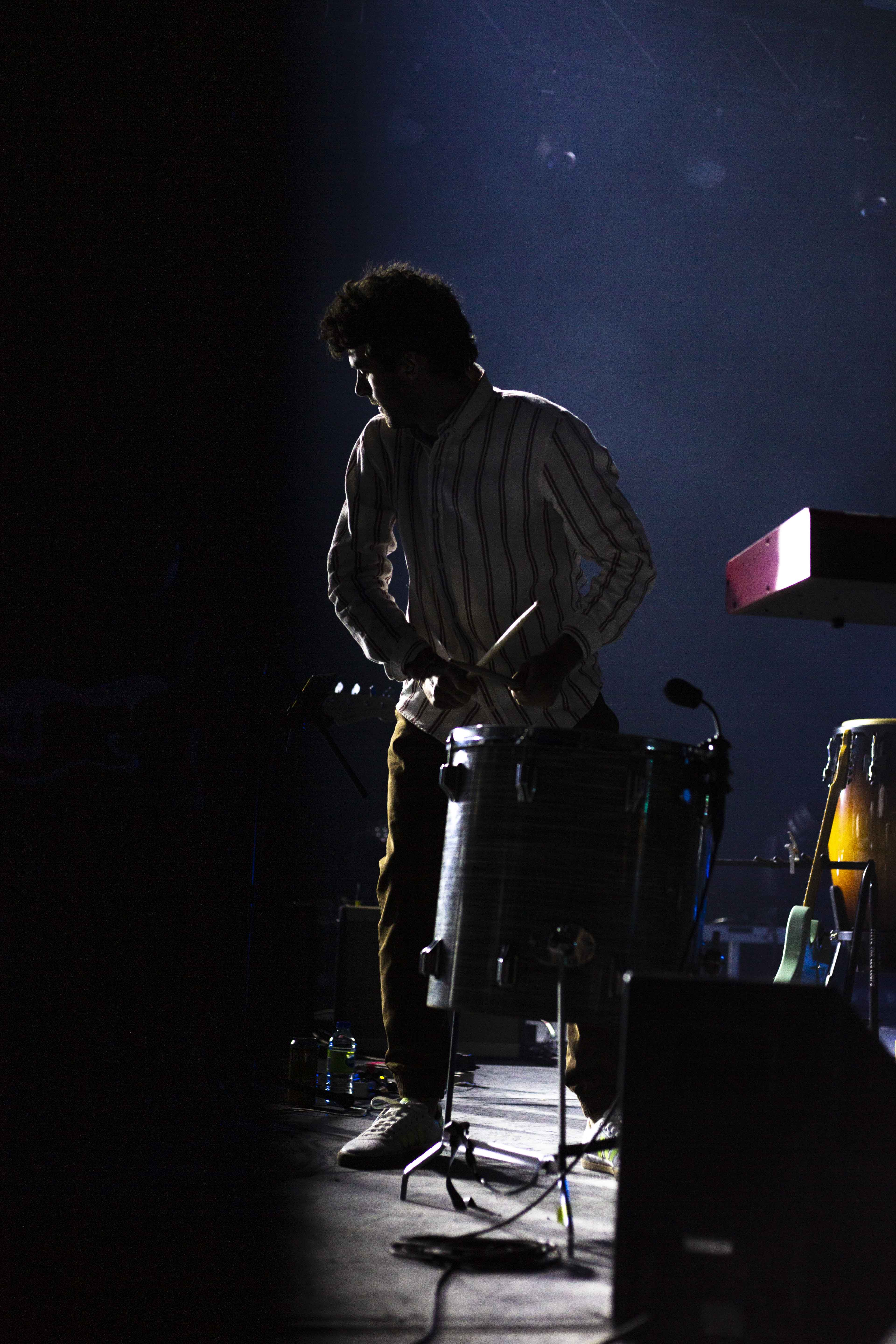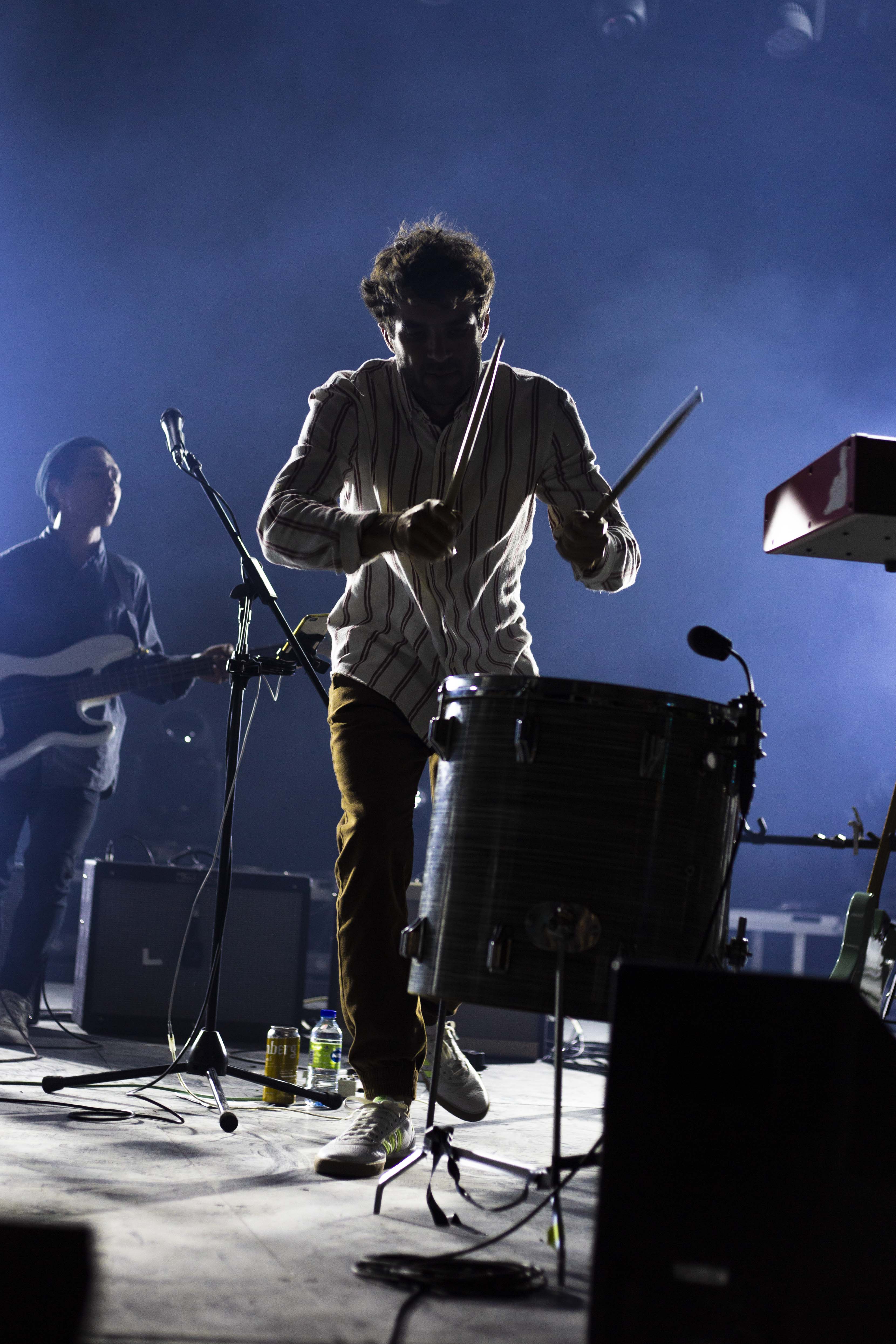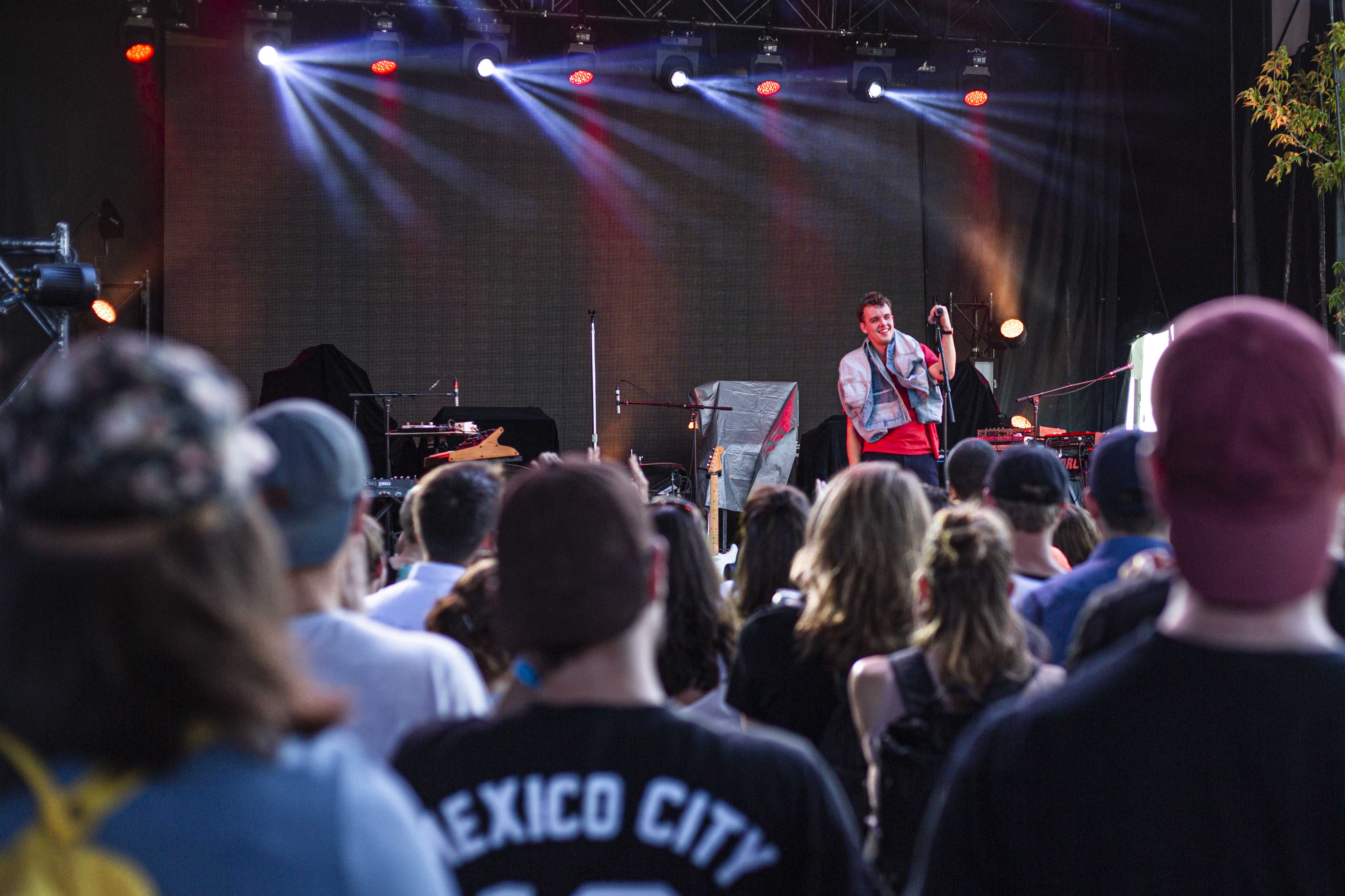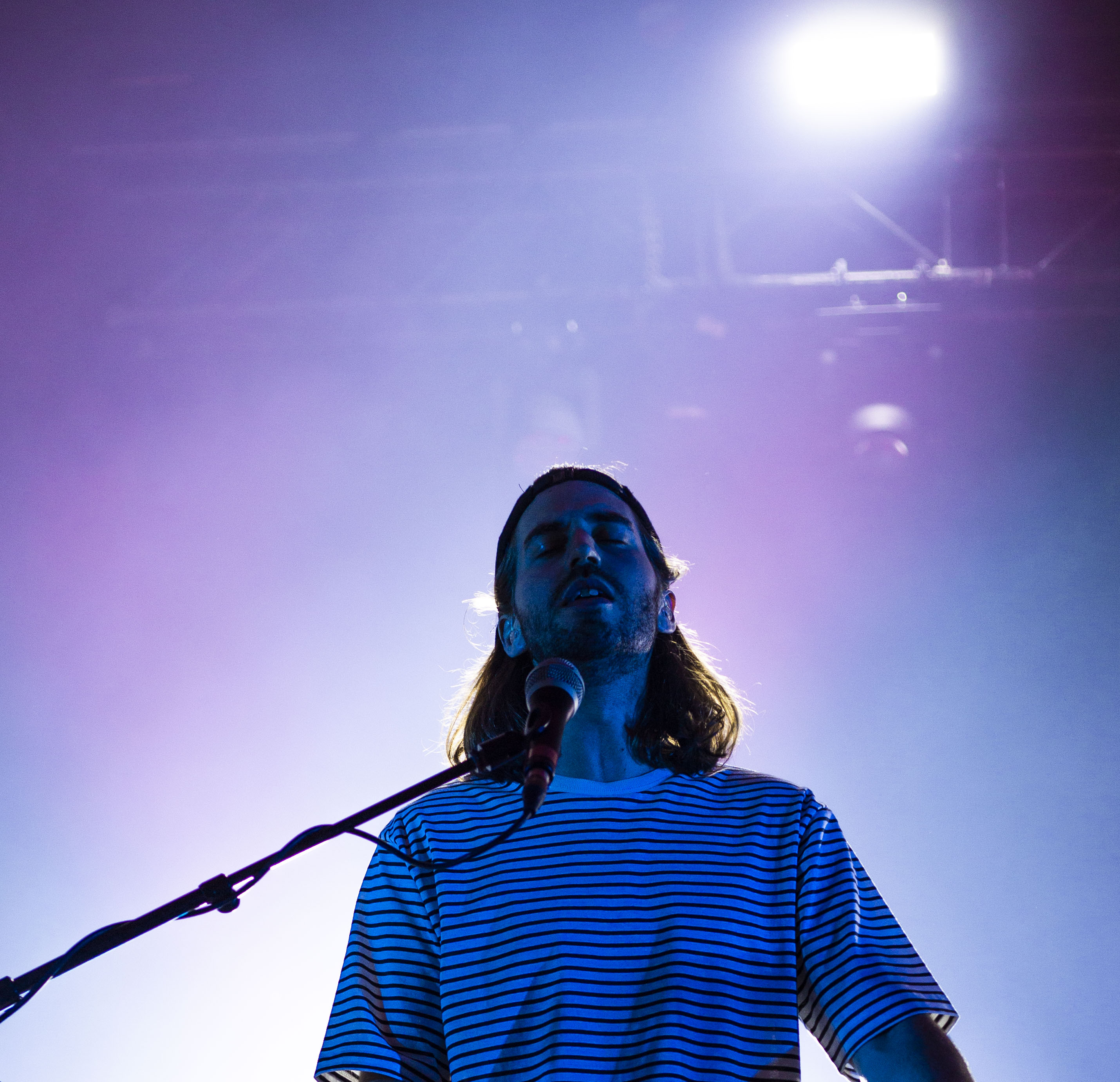 On a eu droit à tout un spectacle de clôture avec Geoffroy. Avec deux simples – soit Woke up Late et 21 Days – désormais accessibles à tous et l’annonce d’un album pour début novembre, il fallait s’attendre à des surprises et c’est exactement ce à quoi le public a eu droit. Ça paraît encore plus sur scène, mais les productions reflètent à merveille les allures du chanteur. Bien entouré, d’abord par la présence d’un vaisseau spatial où reposent les claviers et synthétiseurs de Clément Leduc, également connu sous le nom d’Hologramme, Geoffroy a surpris en jouant plusieurs chansons de cet opus naissant. Le spectacle fut une belle occasion de voir le grand Timide et ses potes se libérer de toutes leurs émotions dans de grands élans instrumentaux soigneusement calculés. Outre l’instrumental, sa voix chaude respire la confiance et le calme. C’est d’ailleurs pour cette raison qu’il comble un public plutôt hétérogène, puisque les éléments qui découlent de sa musique ne se rallient pas à un style, mais plutôt à quelque chose d’unique que seuls ces hommes sur scène peuvent se vanter de maîtriser. Dans ce planant moment, on a dénoté la candeur et la richesse texturée de l’heureux mélange des percussions, et de tout le reste, productions musicales qui donnent envie de mettre la vie sur pause et d’en savourer le moment.