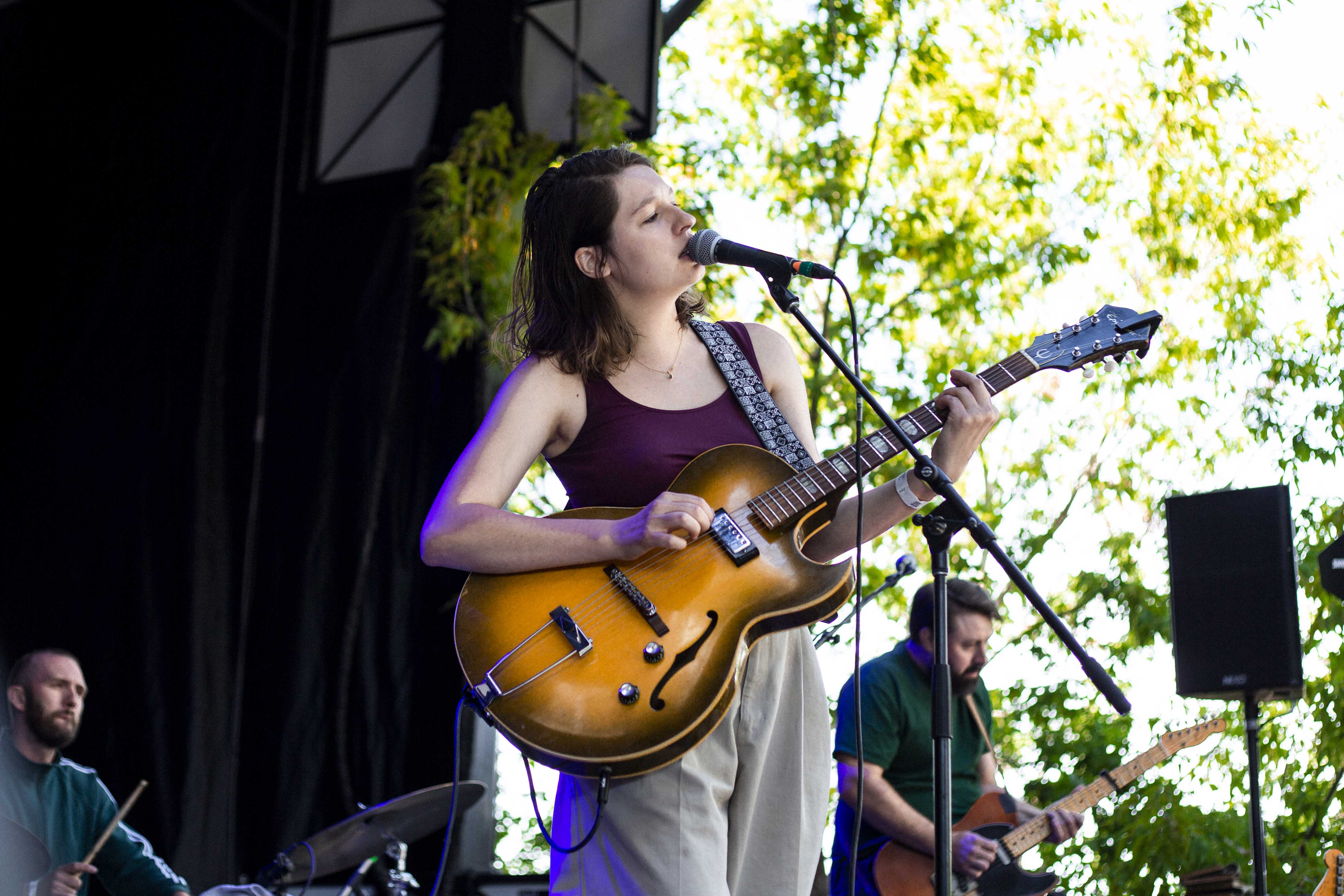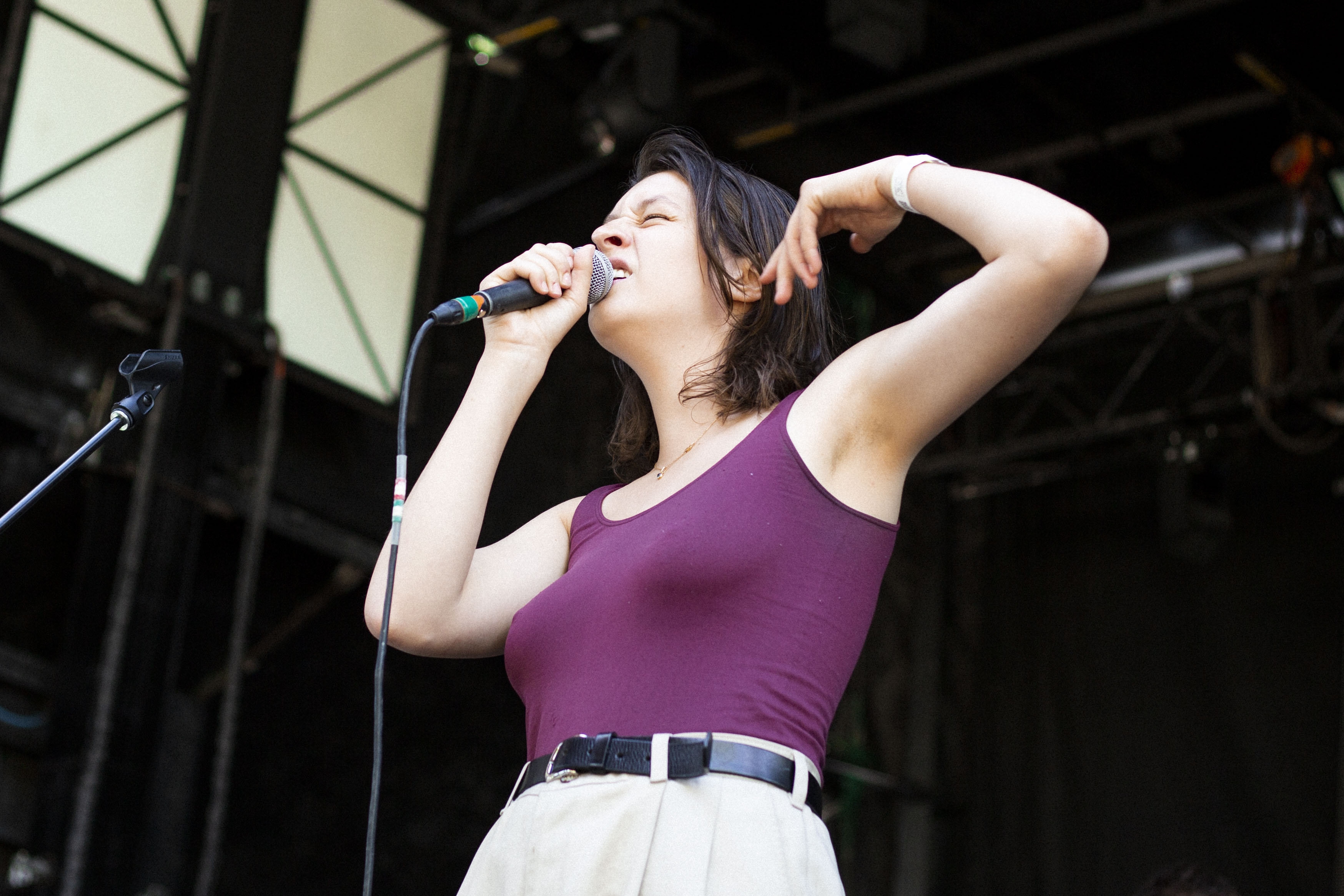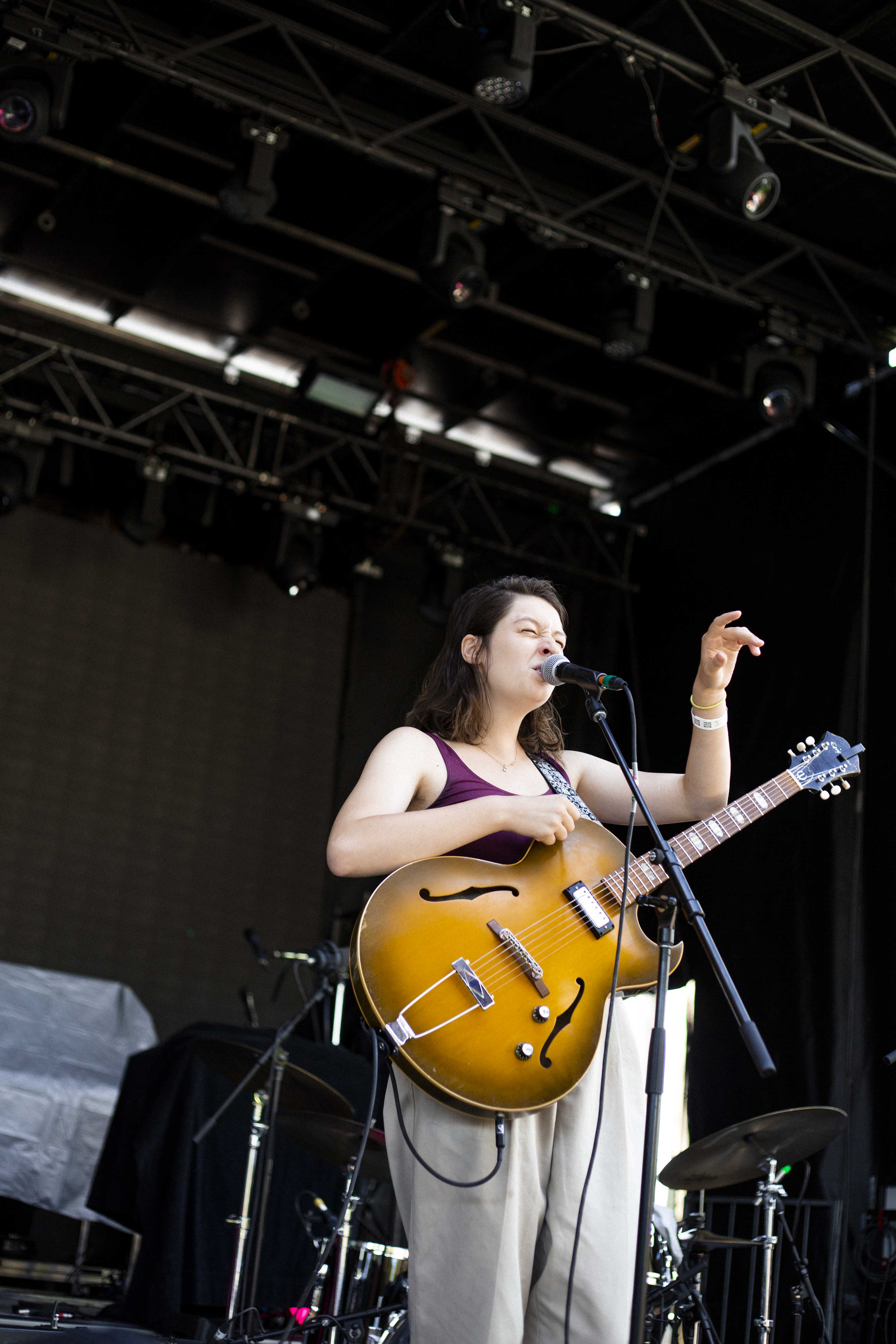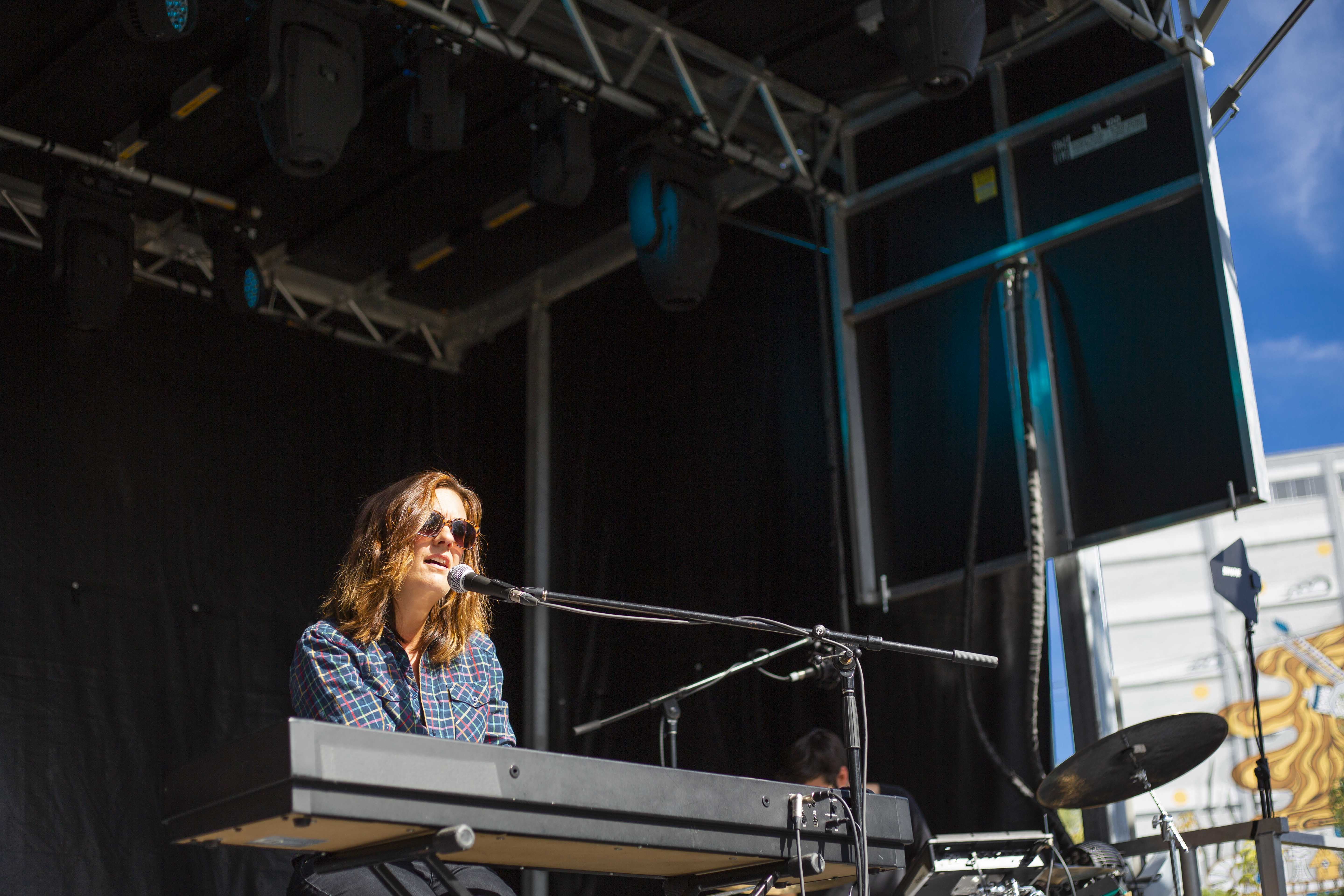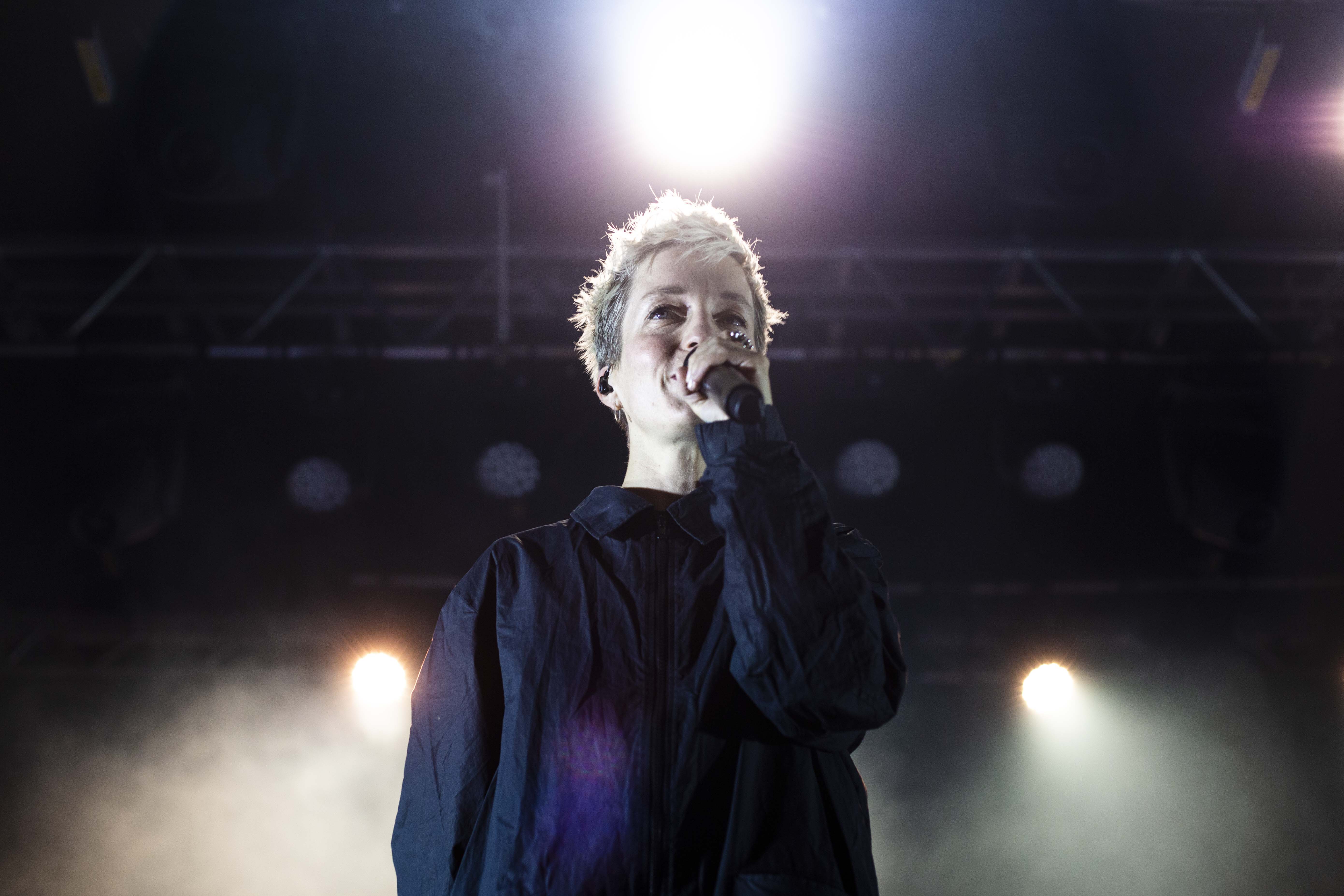 Il suffisait, comme à l’habitude, de faire quelques pas pour tomber dans la cour de l’autre scène et pour faire suite à Cassidy, c’est Marie-Ève Roy qui prenait place pour la prochaine prestation. Il y a quelque chose qui apaise chez elle, une singulière brise qui fait amplement contraste à ses habitudes alors qu’elle avait autrefois un rôle primordial au sein d’un groupe punk-rock connu de tous, les Vulgaires Machins. Désireuse de reconnecter avec sa féminité et surtout avec elle-même, question de pouvoir développer sur un projet qui vient entièrement de sa tête, elle a sorti plus tôt cette année un album intitulé Multicolore. Elle a d’ailleurs confirmé hier qu’elle n’a pas besoin de personne de pour attirer l’attention, avec une pop sobre qui ne réinvente rien au niveau des paroles, mais qui fait du bien à écouter par sa jovialité et sa facilité d’accès.