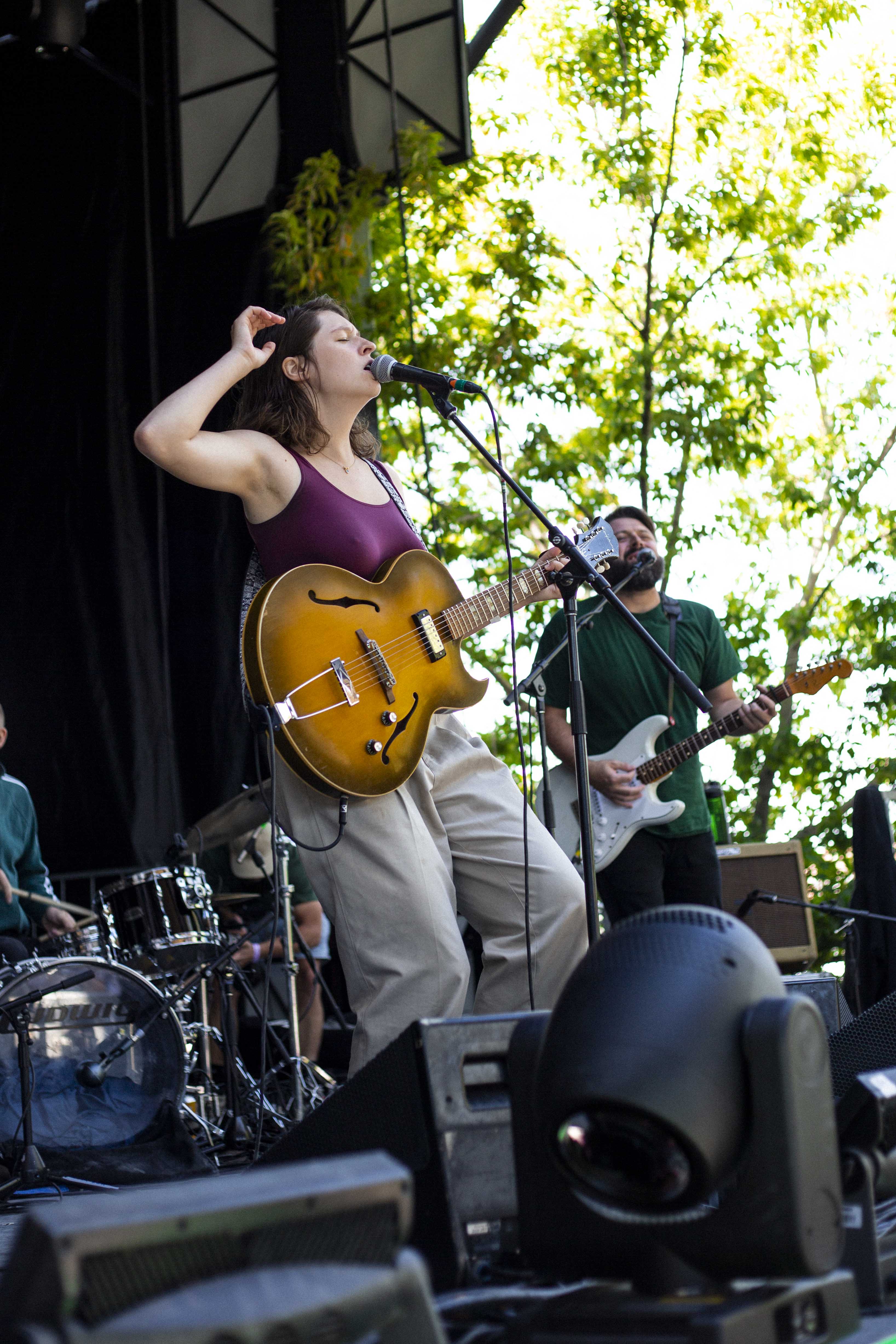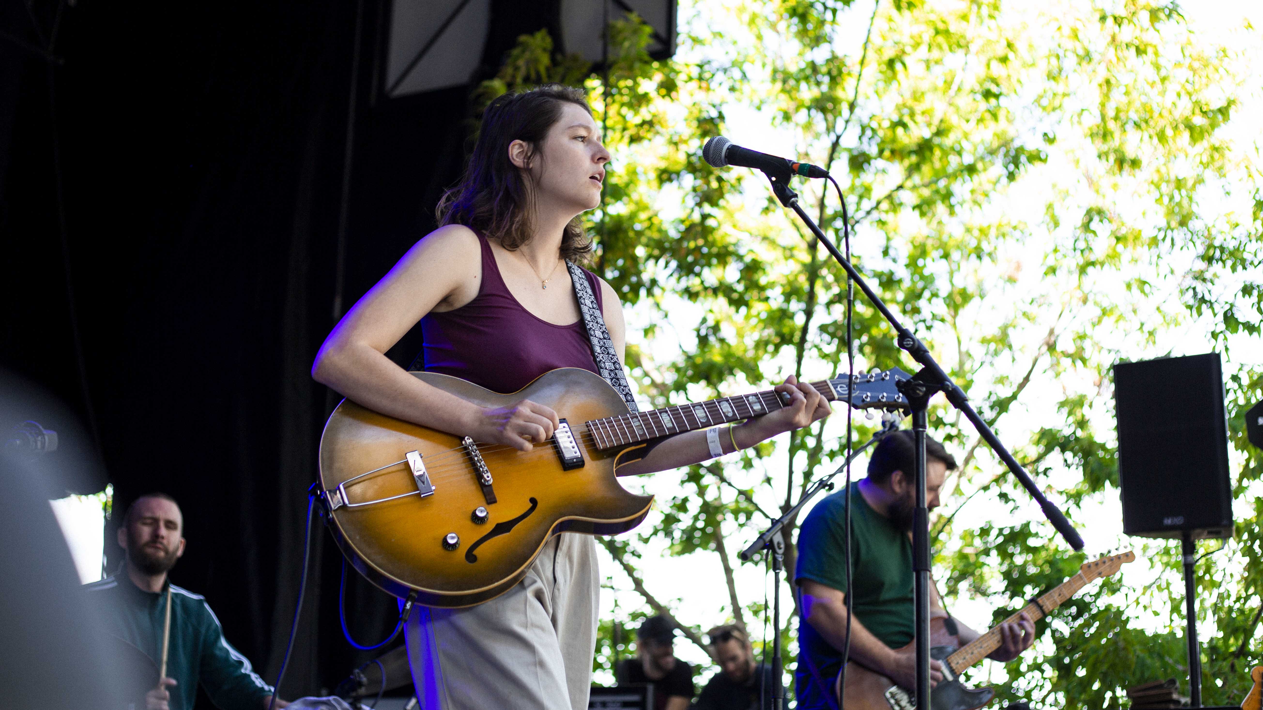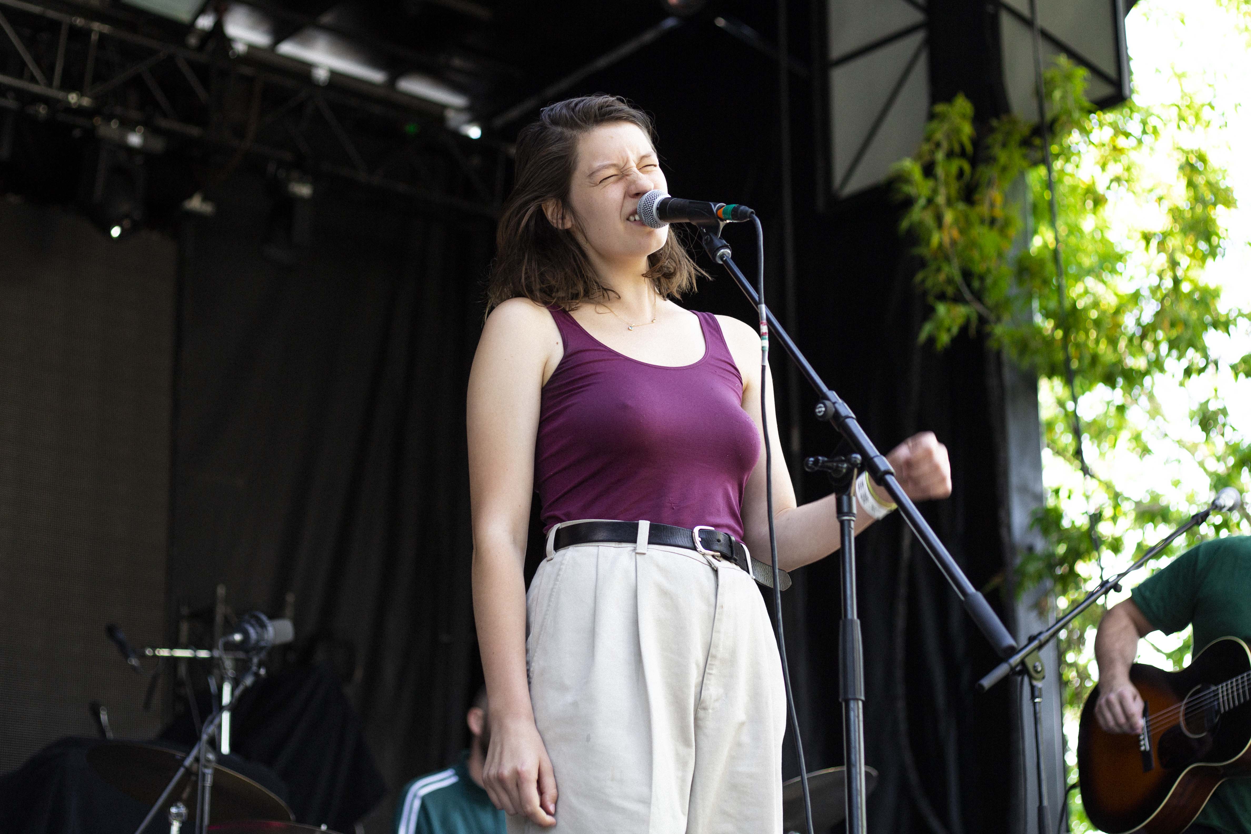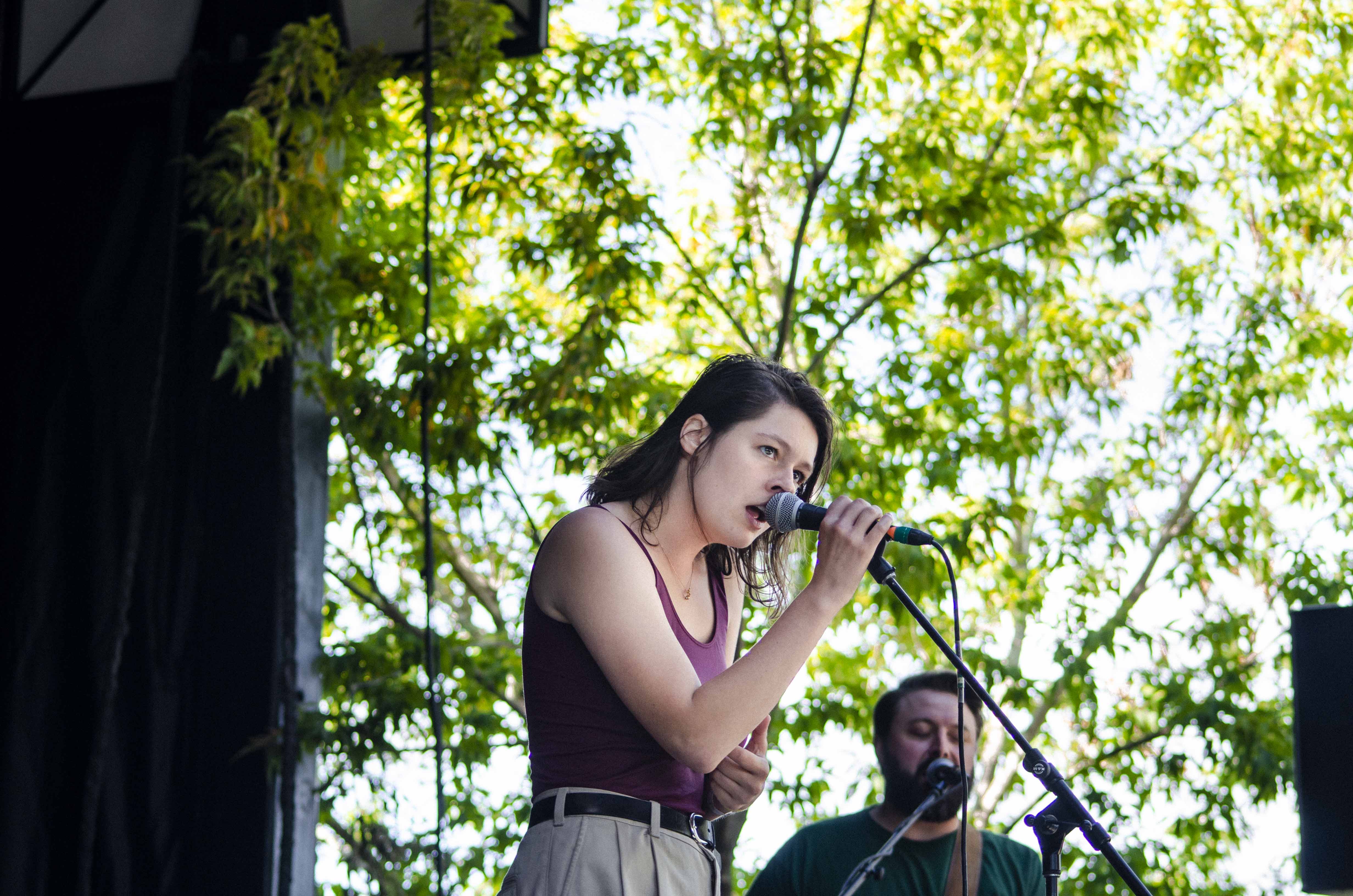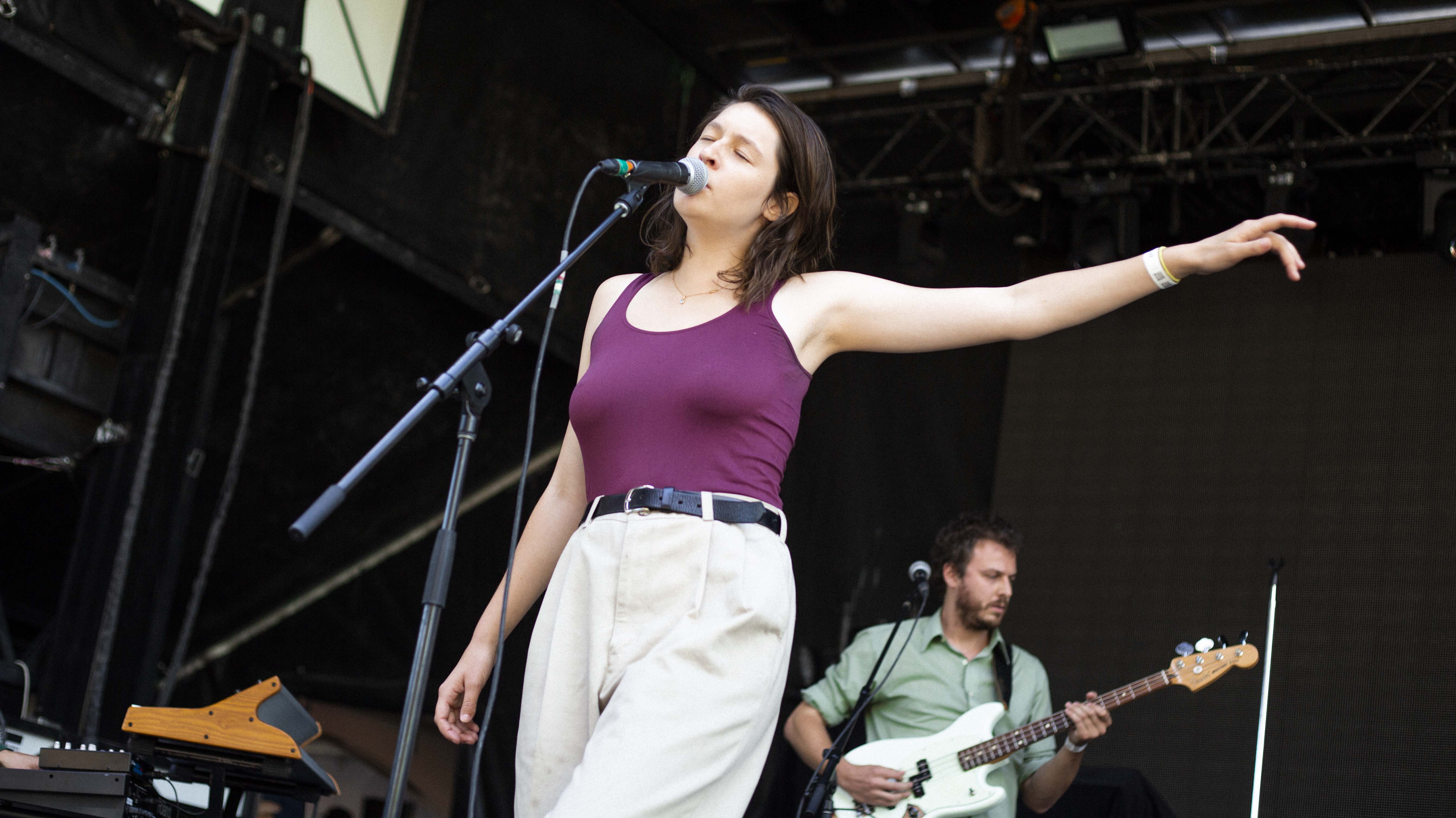 Il suffisait, comme à l’habitude, de faire quelques pas pour tomber dans la cour de l’autre scène et pour faire suite à Cassidy, c’est Marie-Ève Roy qui prenait place pour la prochaine prestation. Il y a quelque chose qui apaise chez elle, une singulière brise qui fait amplement contraste à ses habitudes alors qu’elle avait autrefois un rôle primordial au sein d’un groupe punk-rock connu de tous, les Vulgaires Machins. Désireuse de reconnecter avec sa féminité et surtout avec elle-même, question de pouvoir développer sur un projet qui vient entièrement de sa tête, elle a sorti plus tôt cette année un album intitulé Multicolore. Elle a d’ailleurs confirmé hier qu’elle n’a pas besoin de personne de pour attirer l’attention, avec une pop sobre qui ne réinvente rien au niveau des paroles, mais qui fait du bien à écouter par sa jovialité et sa facilité d’accès.