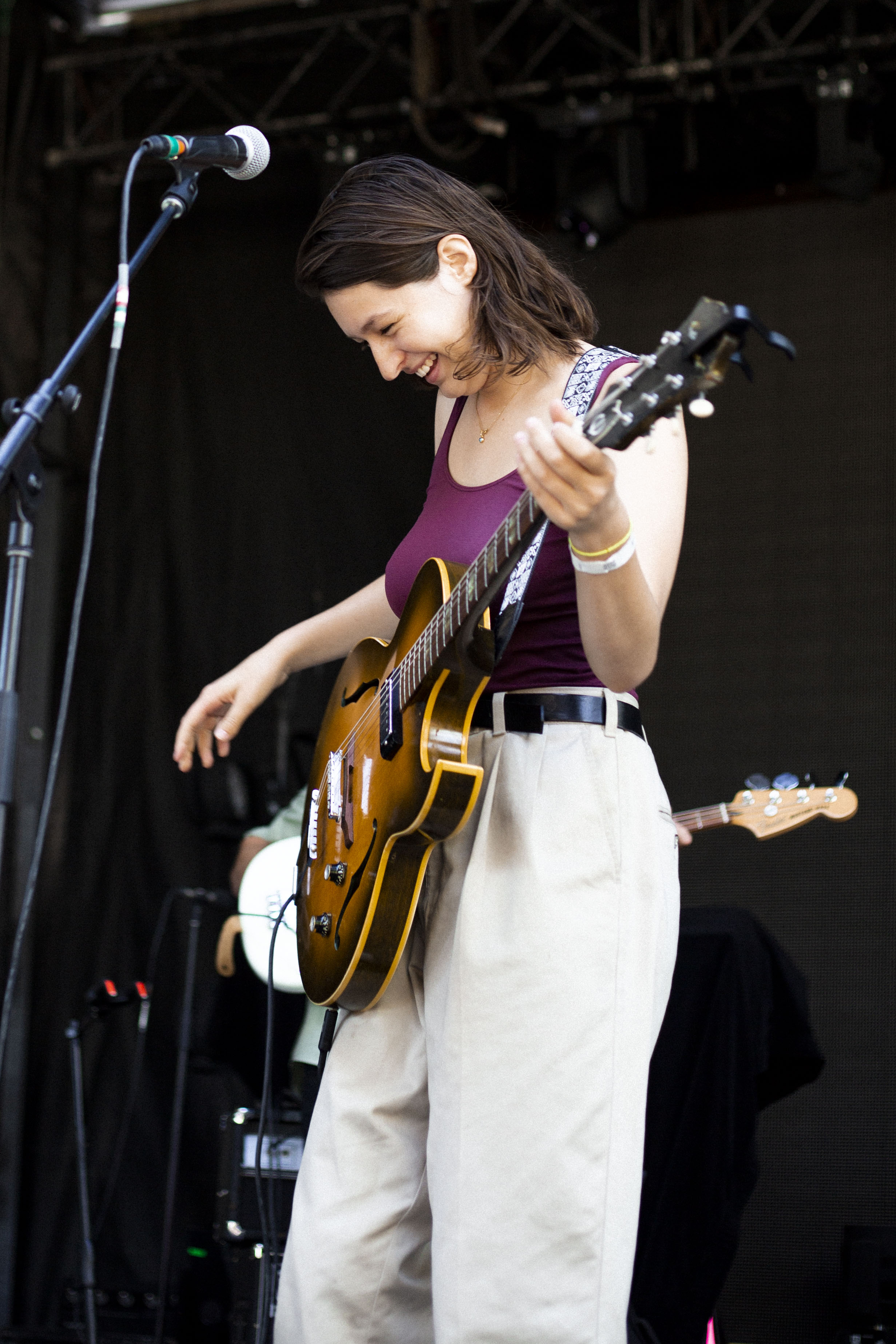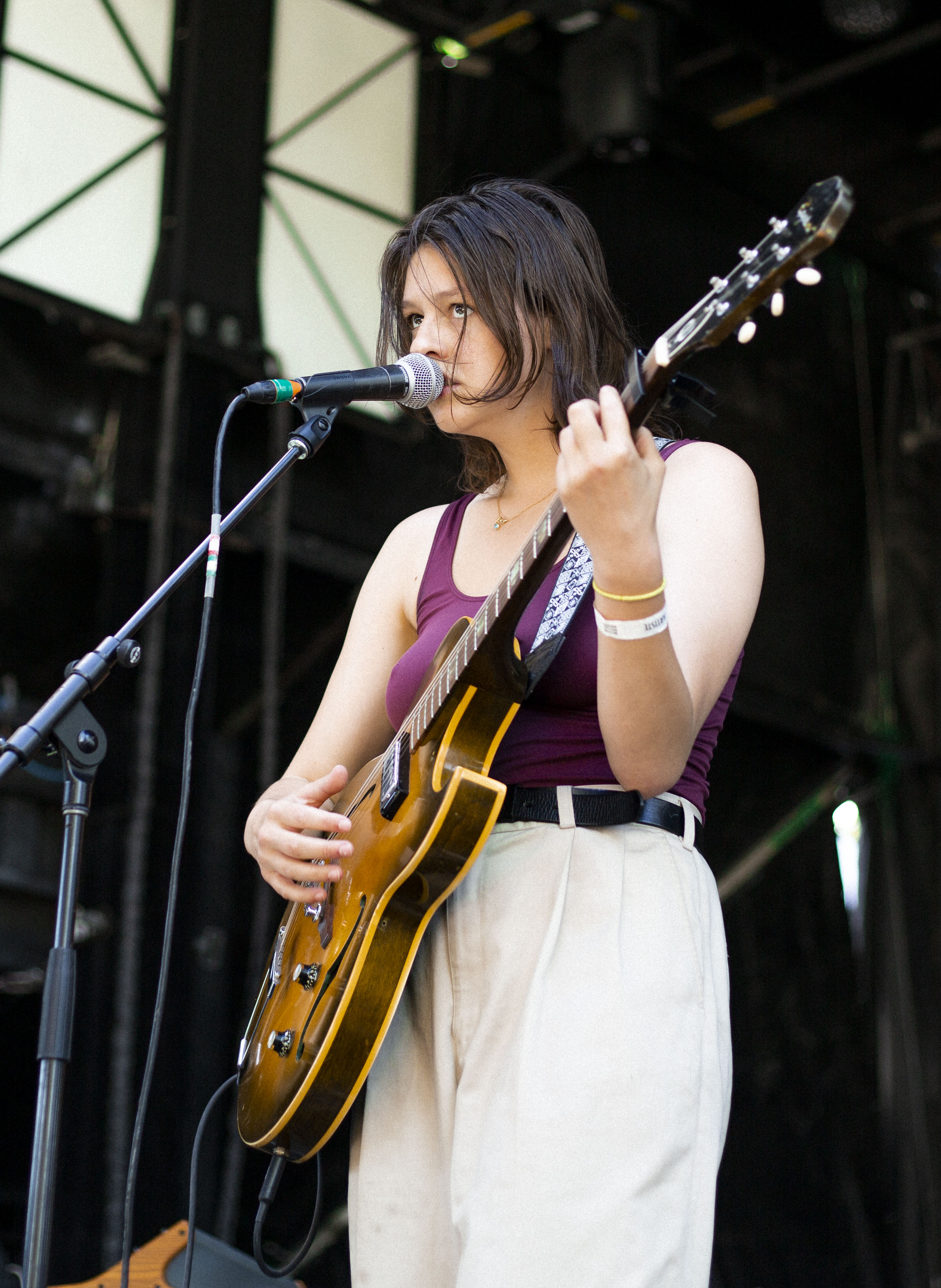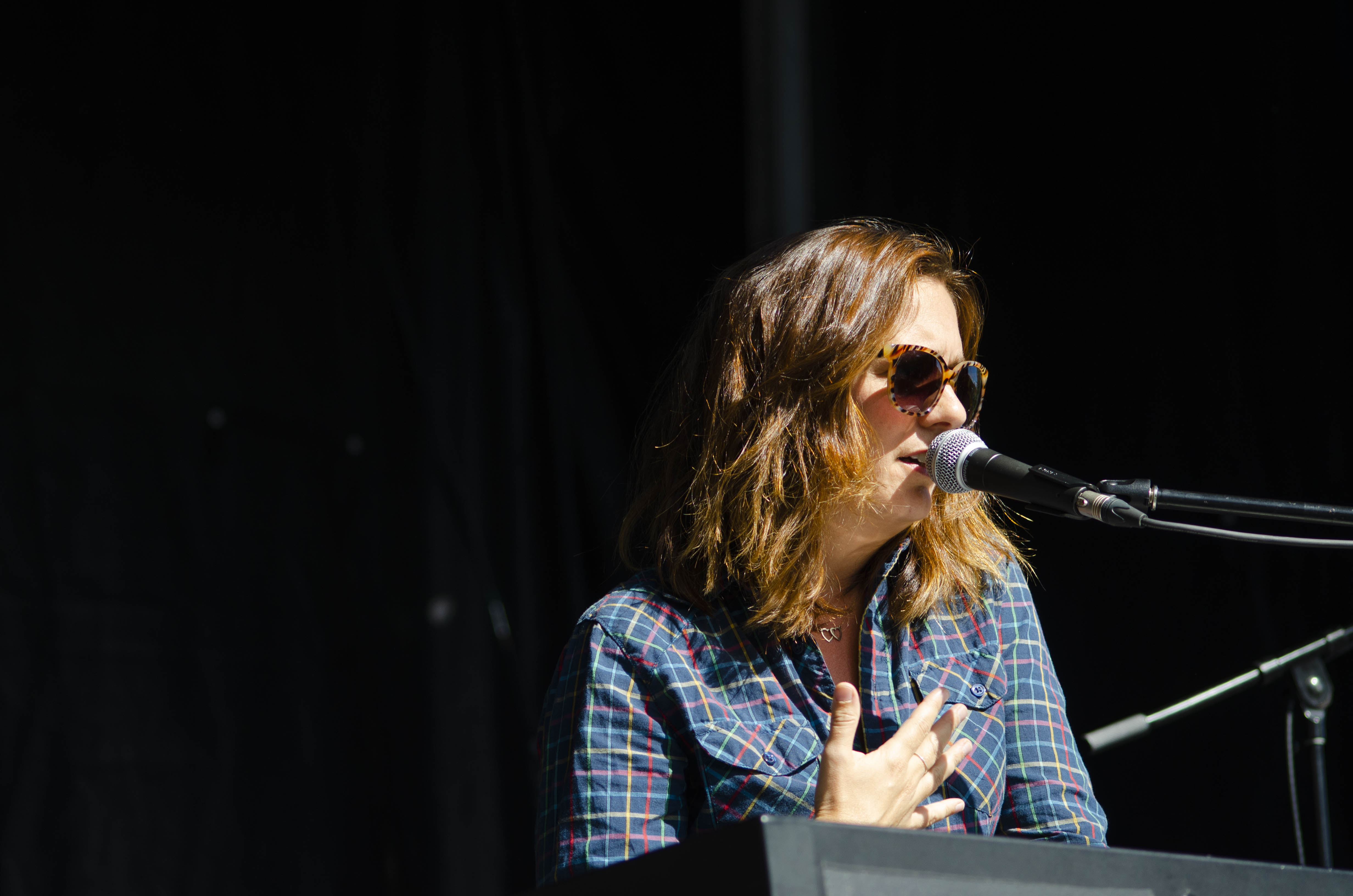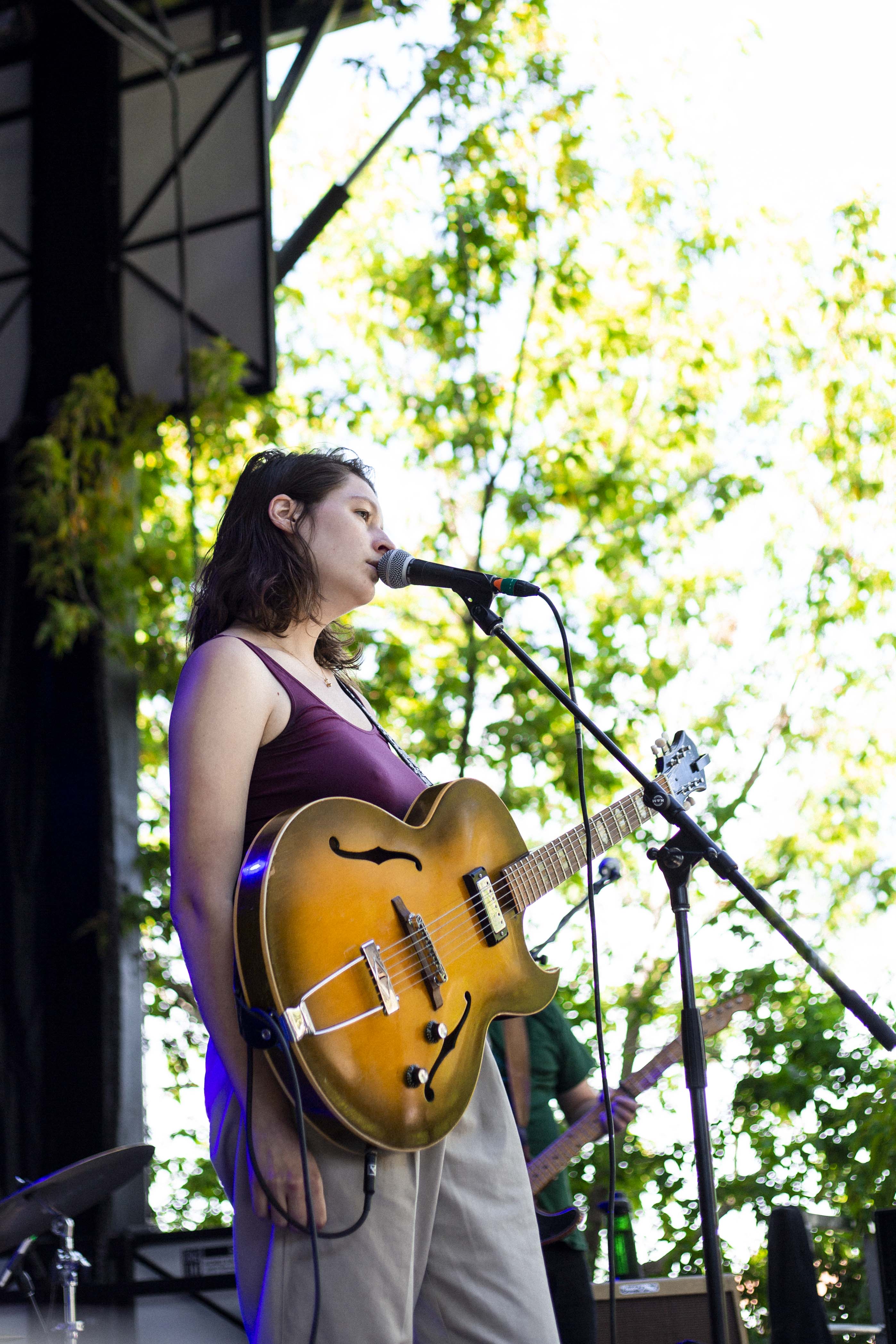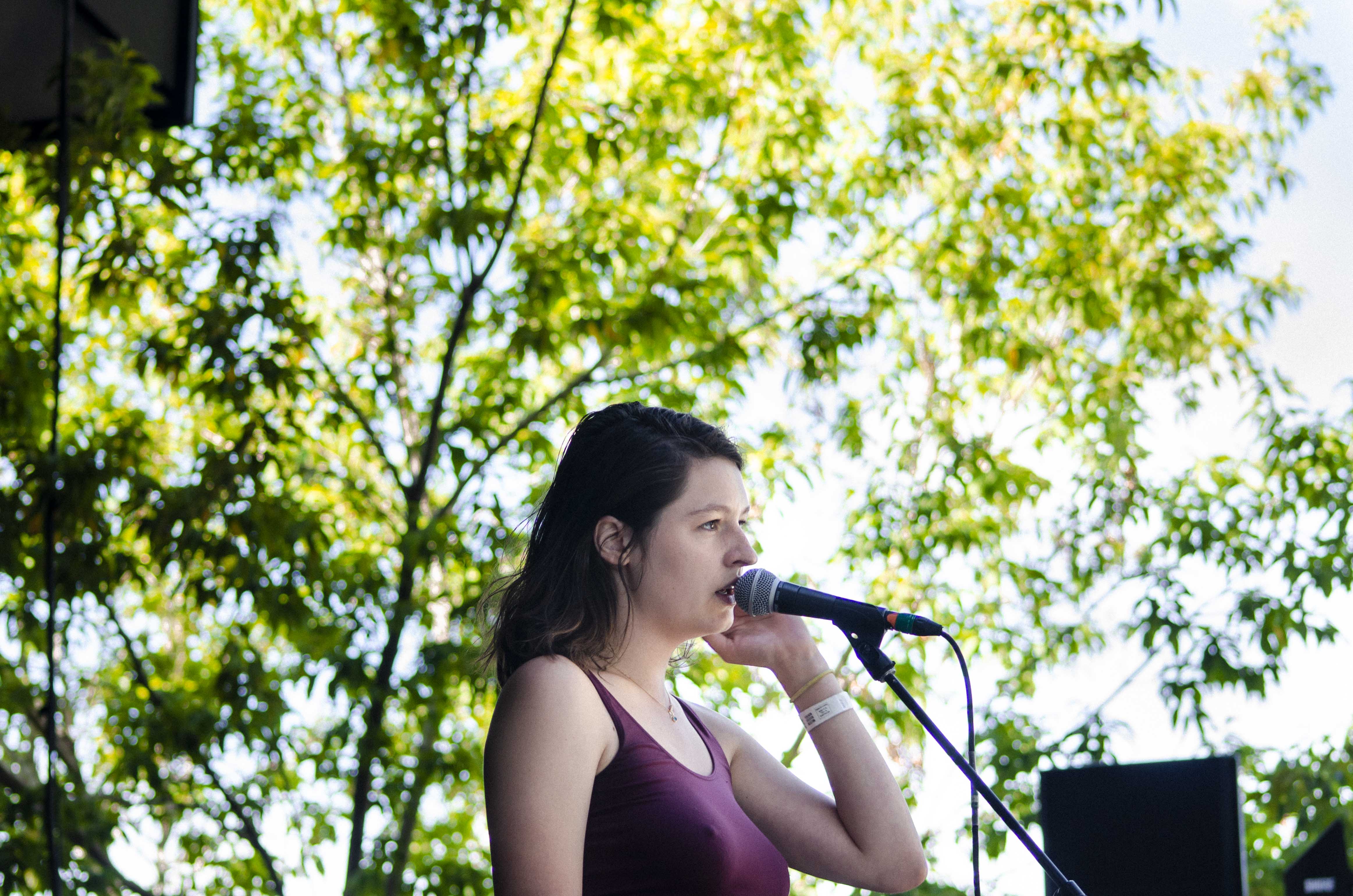 Il suffisait, comme à l’habitude, de faire quelques pas pour tomber dans la cour de l’autre scène et pour faire suite à Cassidy, c’est Marie-Ève Roy qui prenait place pour la prochaine prestation. Il y a quelque chose qui apaise chez elle, une singulière brise qui fait amplement contraste à ses habitudes alors qu’elle avait autrefois un rôle primordial au sein d’un groupe punk-rock connu de tous, les Vulgaires Machins. Désireuse de reconnecter avec sa féminité et surtout avec elle-même, question de pouvoir développer sur un projet qui vient entièrement de sa tête, elle a sorti plus tôt cette année un album intitulé Multicolore. Elle a d’ailleurs confirmé hier qu’elle n’a pas besoin de personne de pour attirer l’attention, avec une pop sobre qui ne réinvente rien au niveau des paroles, mais qui fait du bien à écouter par sa jovialité et sa facilité d’accès.
