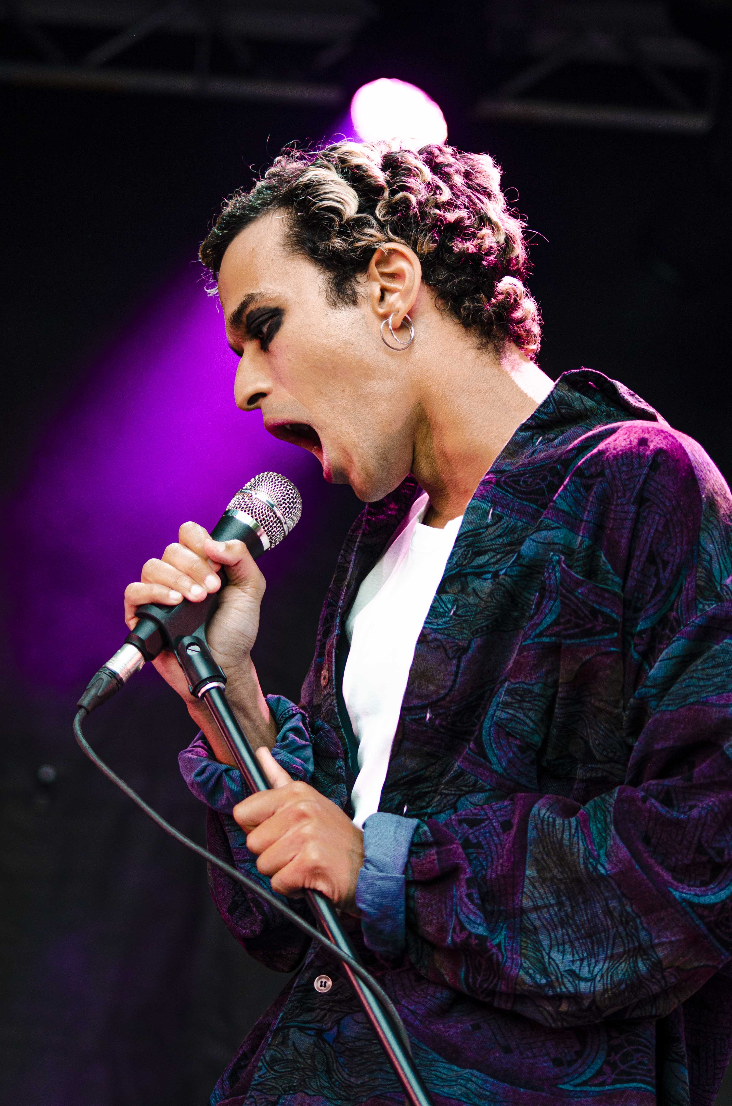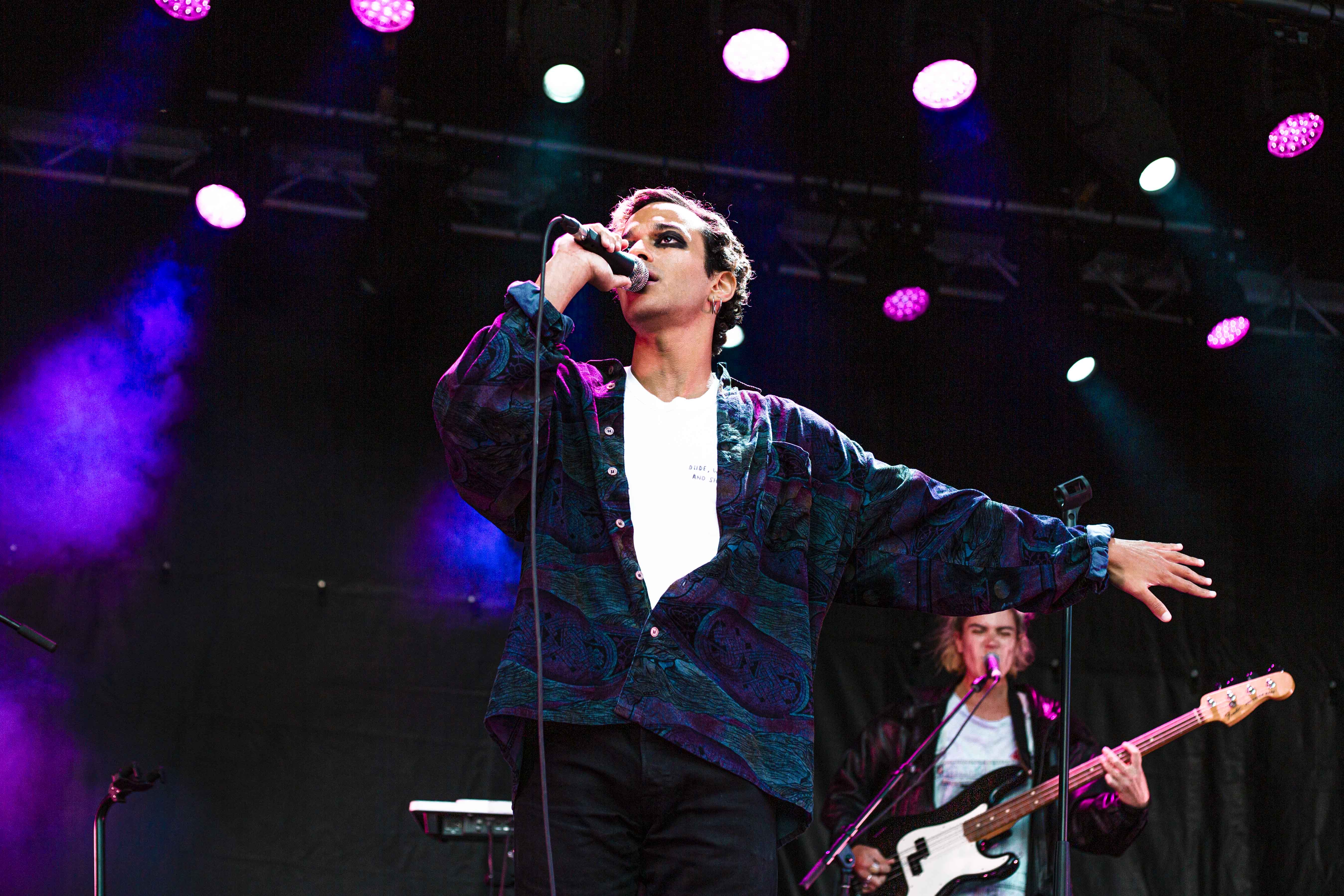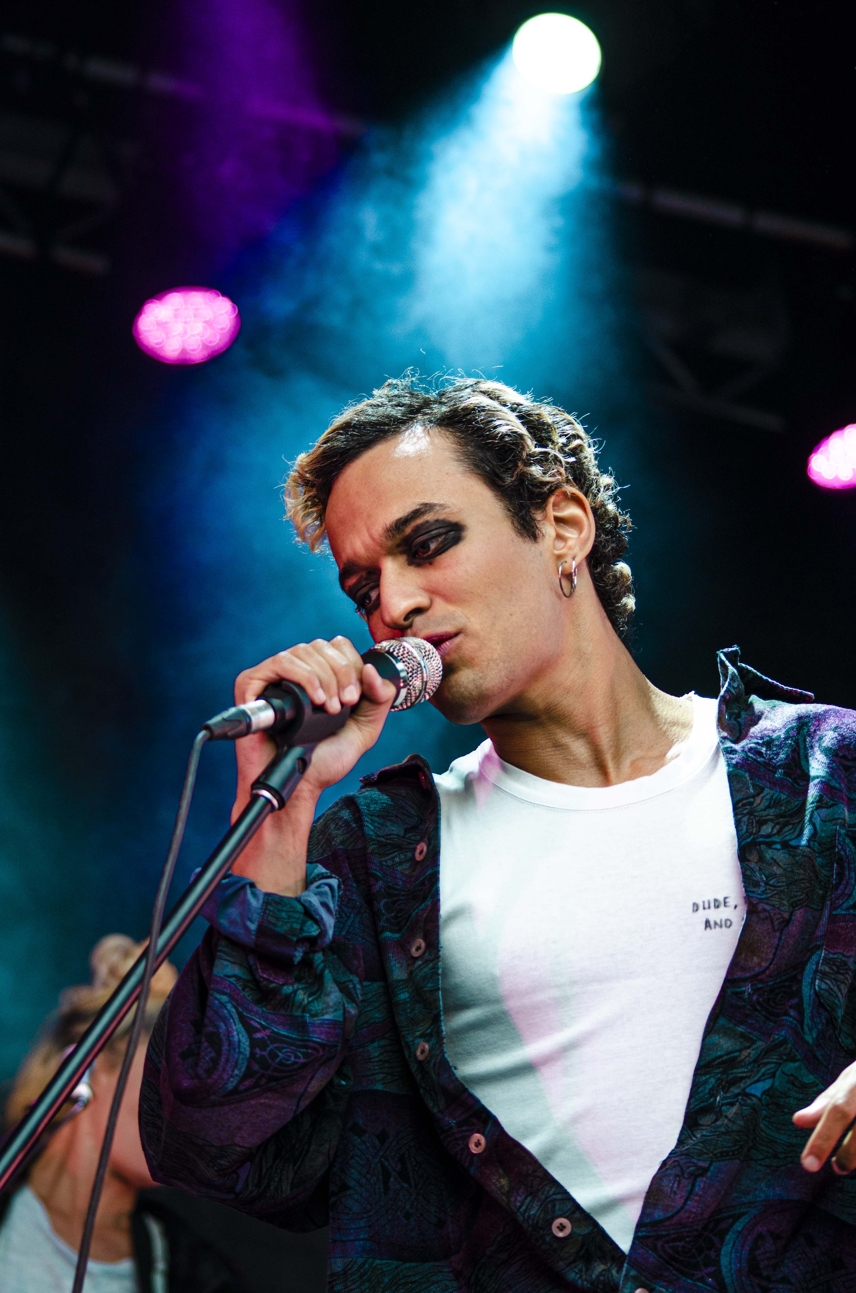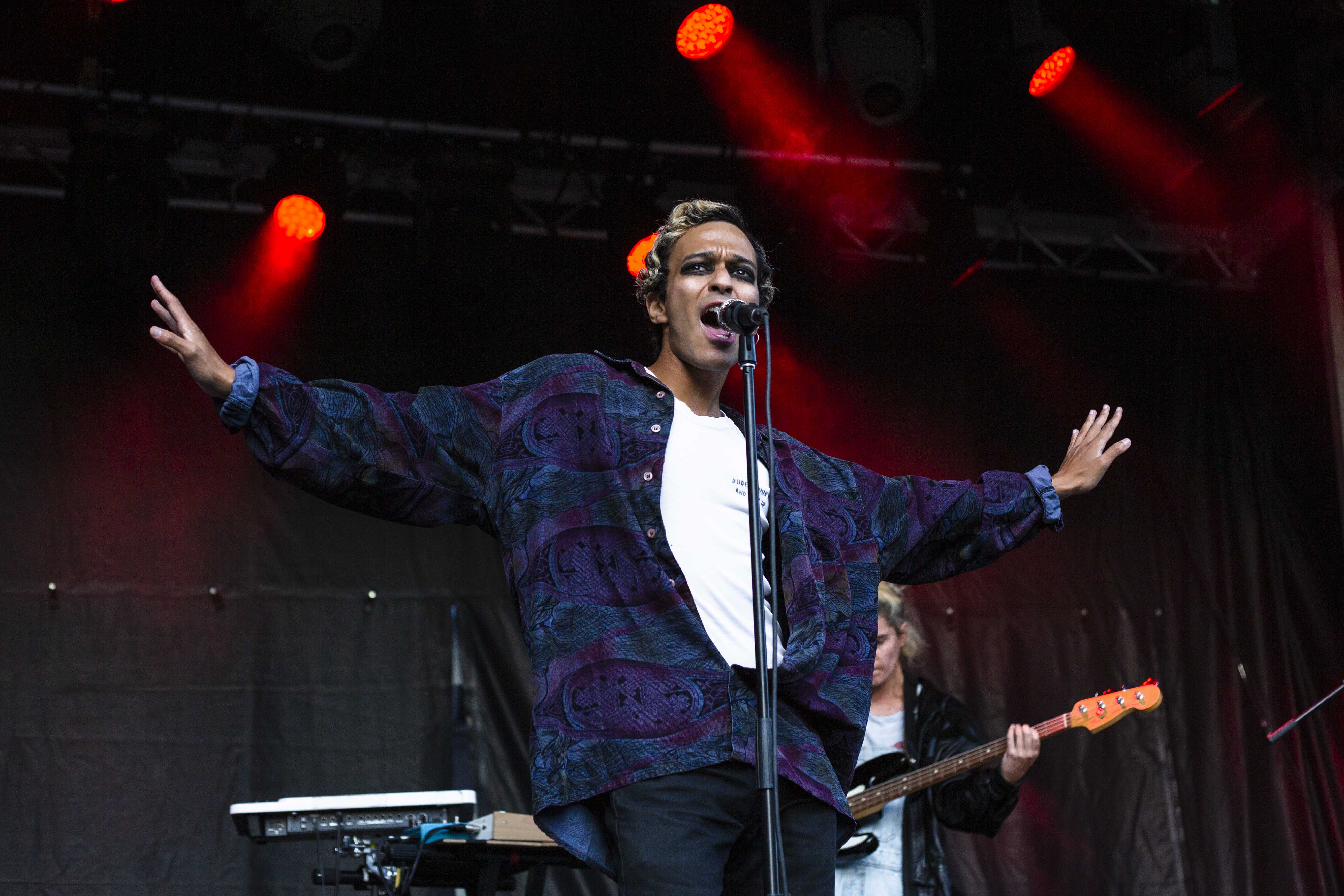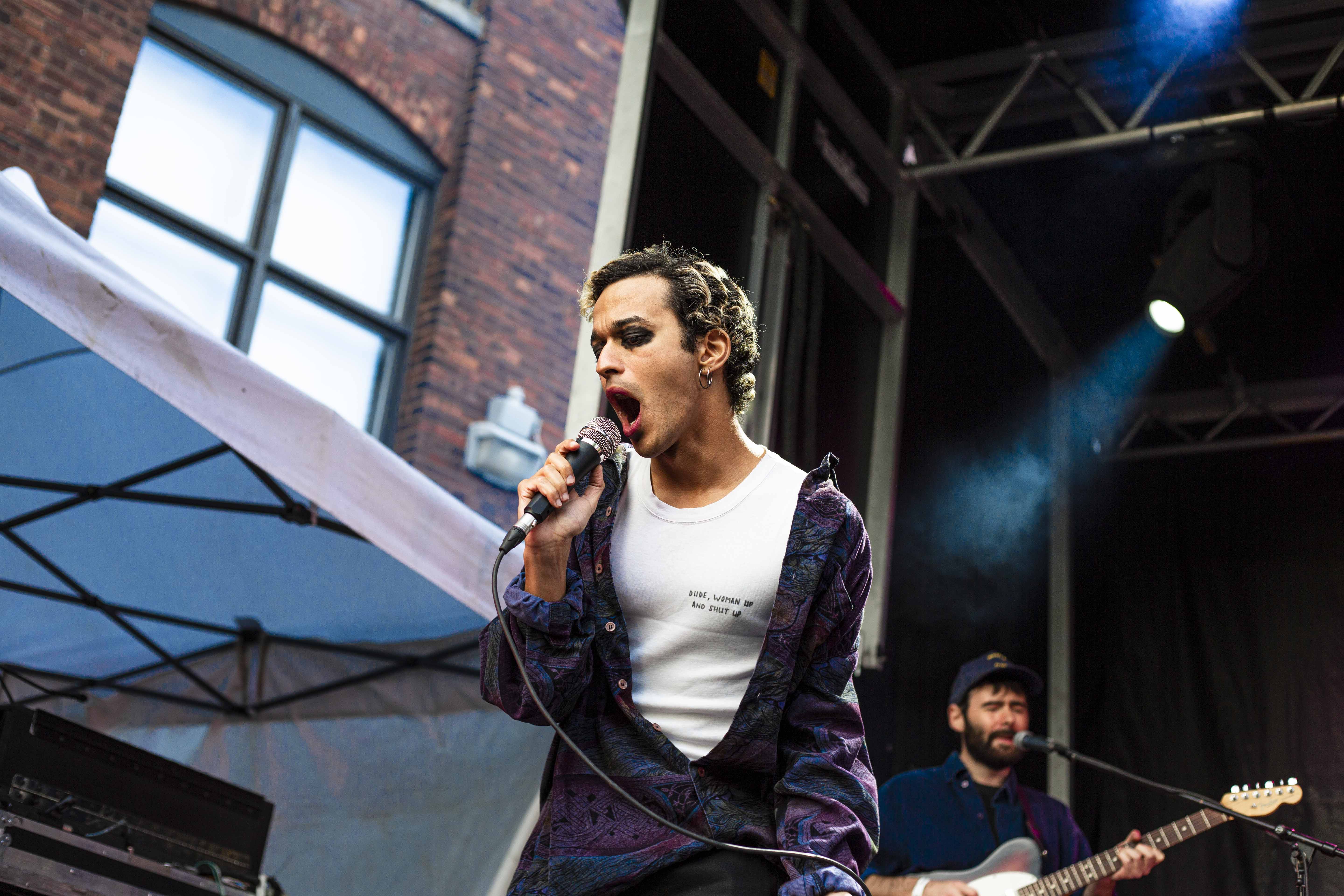Suivant la parade, c’est Adam Naas et ses musiciens qui ont succédé à Morby et ce, de très belle façon. Musicalement, il se distingue et surprend par sa capacité à toucher aux extrêmes avec sa voix, passant d’une sonorité aiguë à grave avec une grande aisance. Portant un style pop teinté par un soul assumé, Naas est, un peu au même titre qu’Hubert Lenoir, une charmante et énergique bête de scène. Dans son cas, il me semble un peu plus gêné, mais tout aussi invitant. Il y avait sur scène une belle fluidité, un groove incessant et une belle harmonie qui se dégageait de l’ensemble. Avec entre autres une basse vibrante, des synthétiseurs rêveurs et des harmonies vocales judicieuses, tout était en place pour capter l’attention et saluer une très belle surprise en cette première journée du Mile-Ex End. Jouant plusieurs chansons de son premier album intitulé The Love Album, ça s’est avéré la pièce maîtresse de sa prestation. Clairement, le jeune homme et ses acolytes possèdent un véritable talent, il s’agira simplement de voir quelle direction ils prendront s’ils désirent poursuivre sur cette belle lancée sans se laisser trop influencer par une popularité grandissante.