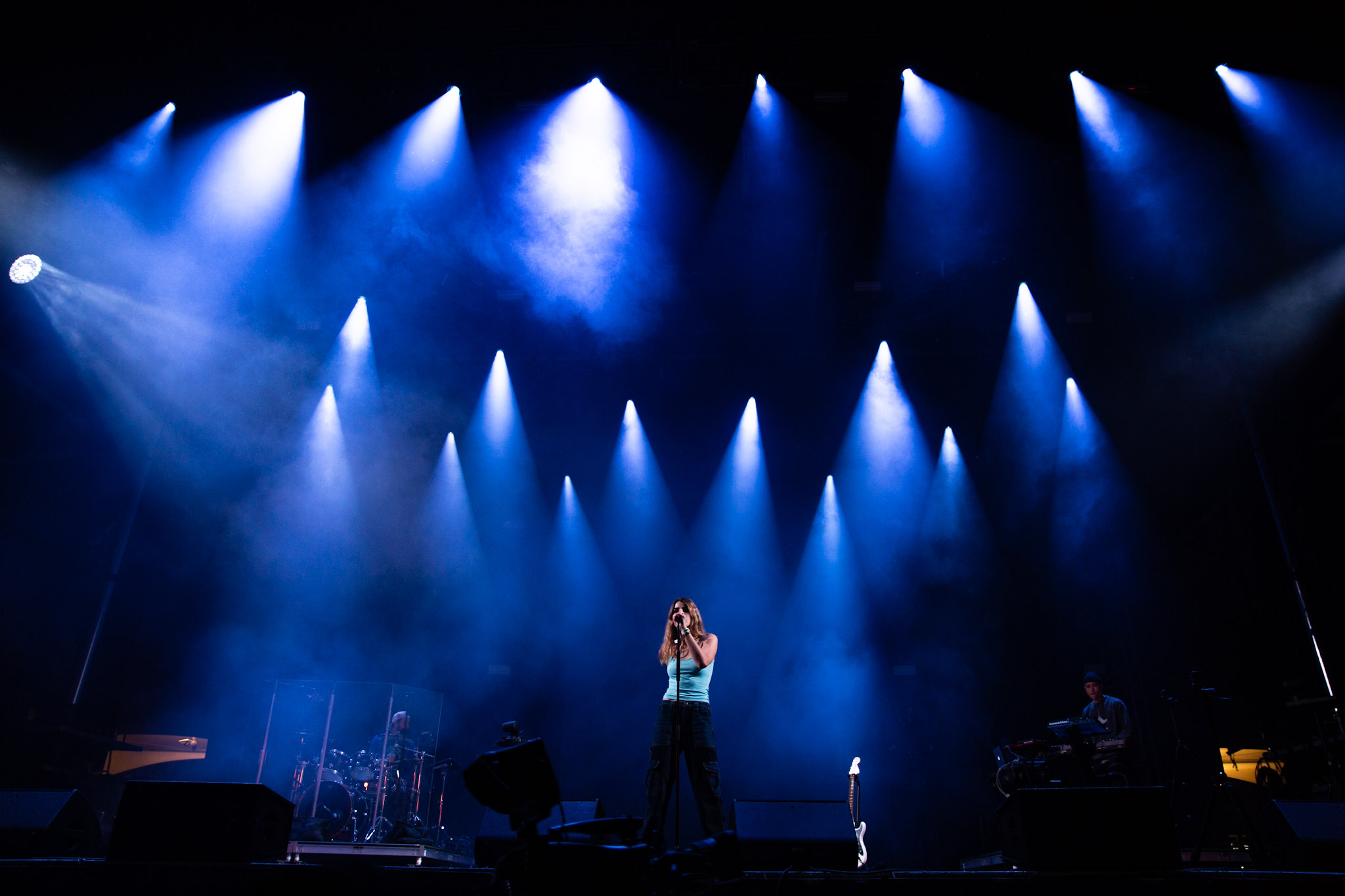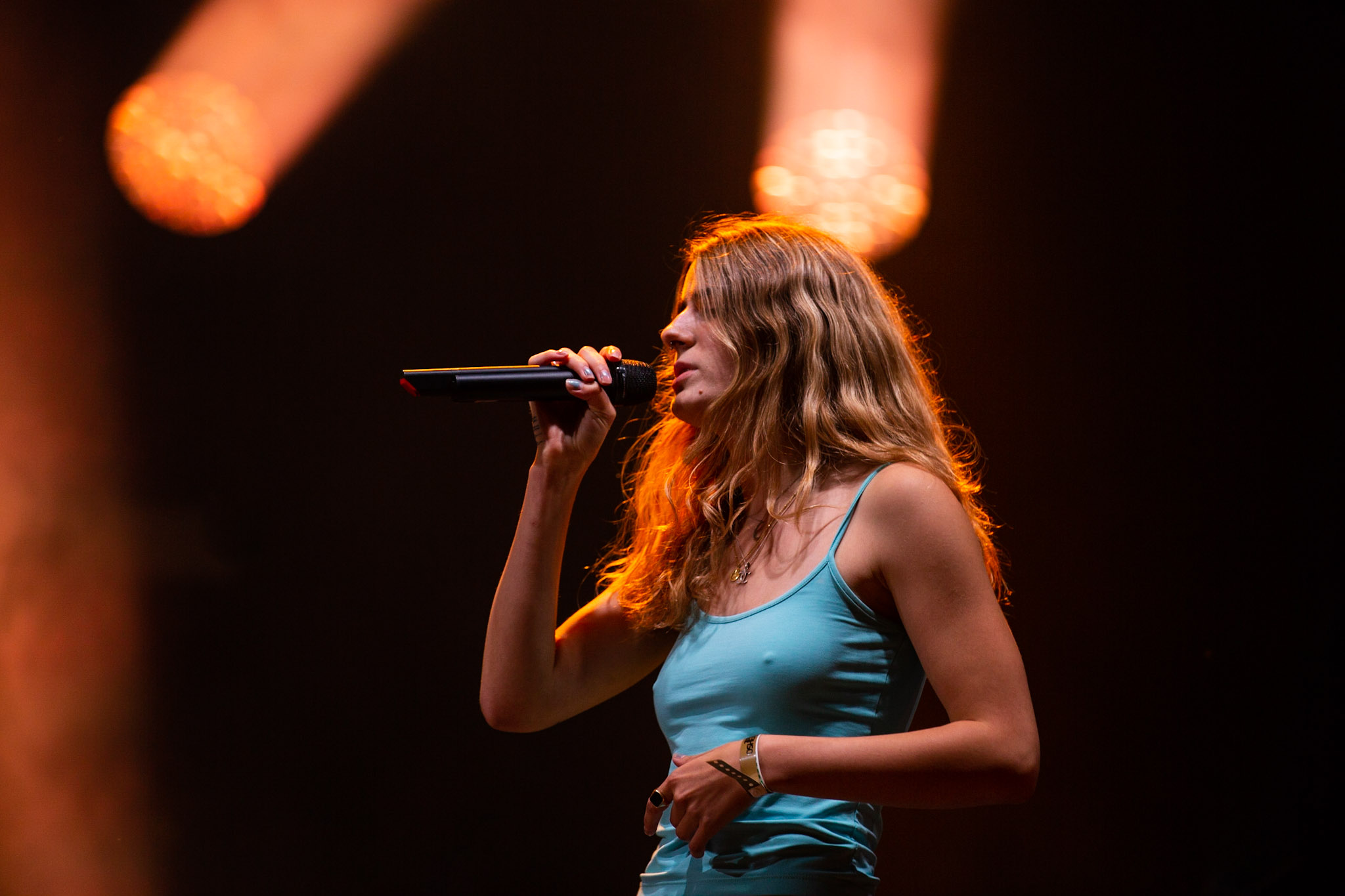 Cette première journée se concentrait sur la pop et la succession de projets dans l’après-midi en faisait foi. C’est d’abord Ruby Waters, une Torontoise avec une voix impressionnante qui s’est exécutée. Si ses compositions sont quand même conventionnelles, sa livraison est appréciable et son authenticité touchante. Loin du fla-fla, Waters livre ses compositions à la guitare avec aplomb alors que sa voix, légèrement éraillée, fait le reste du travail. Une belle découverte. Par la suite, c’est JJ Wilde qui a pris la relève sur la Scène de la Montagne. Il faut aimer le blues rock pour apprécier le projet de la jeune femme. Vous comprendrez que les débardeurs pas de manches en chest, ce n’est pas trop mon truc. Elle a une bonne voix, est une interprète avec une bonne expérience de scène, mais musicalement, c’est d’un ennui total.