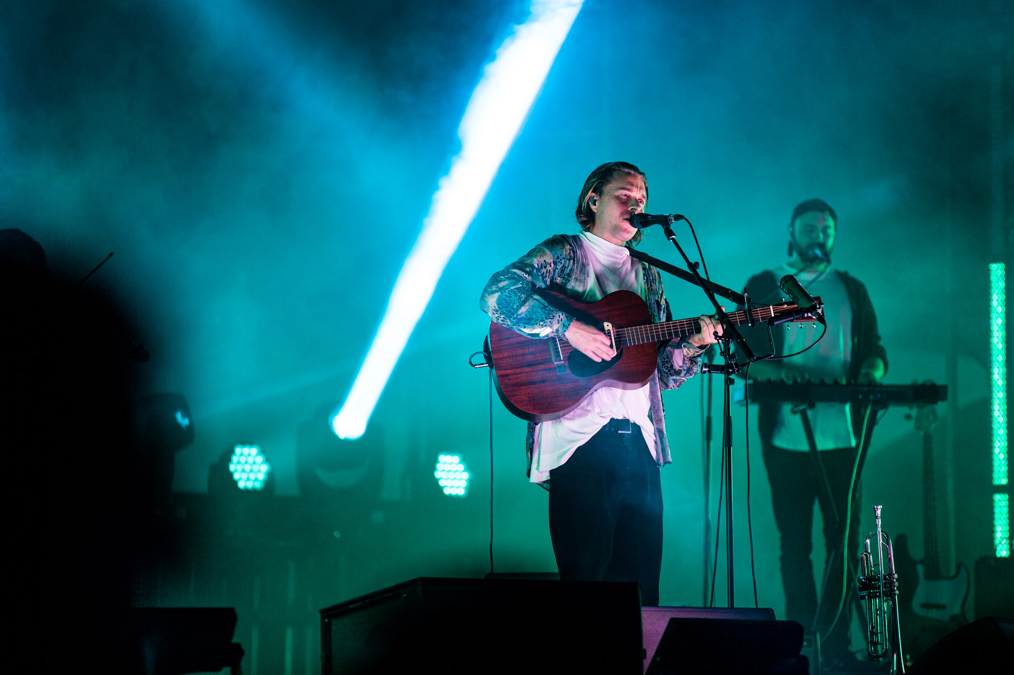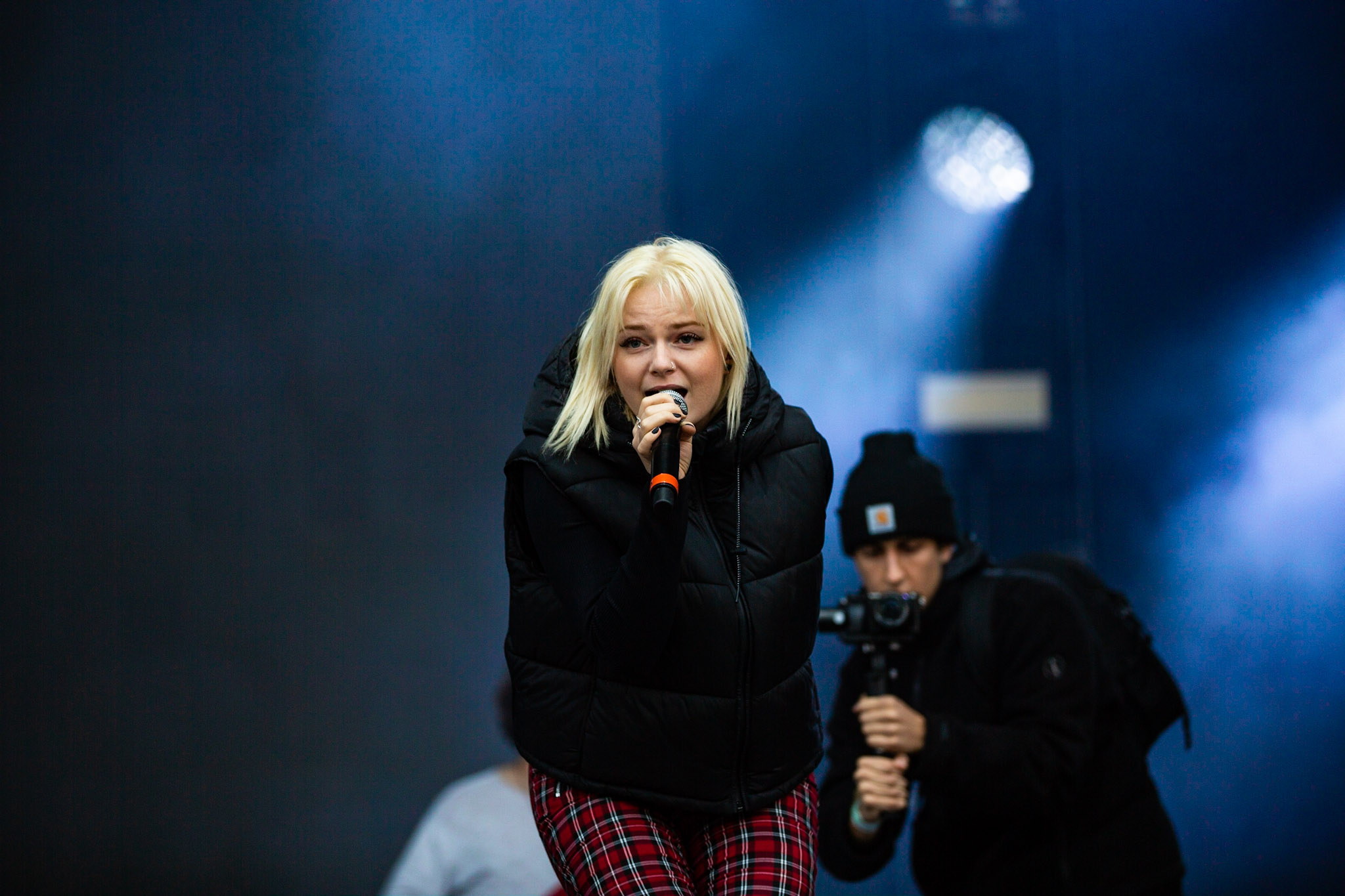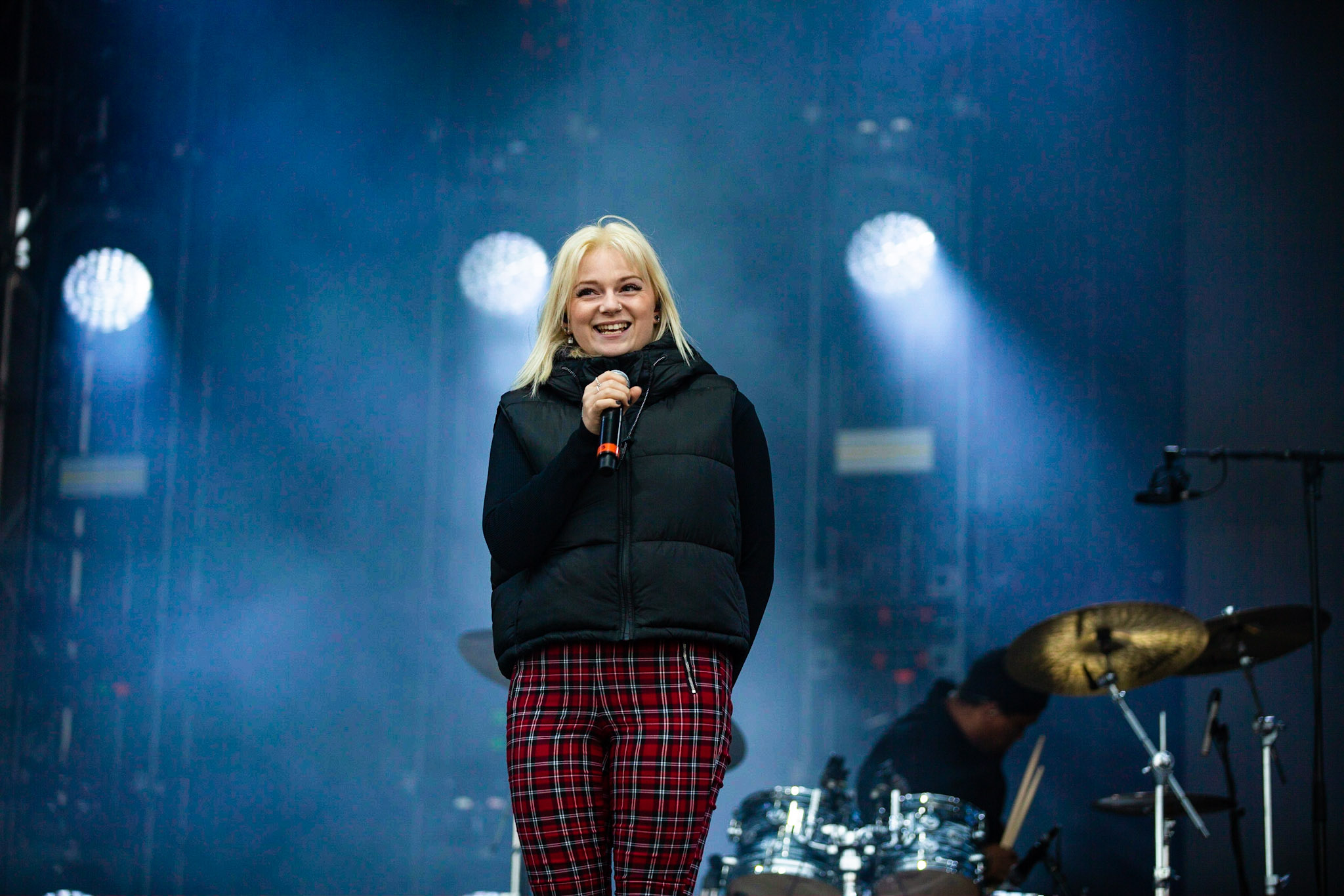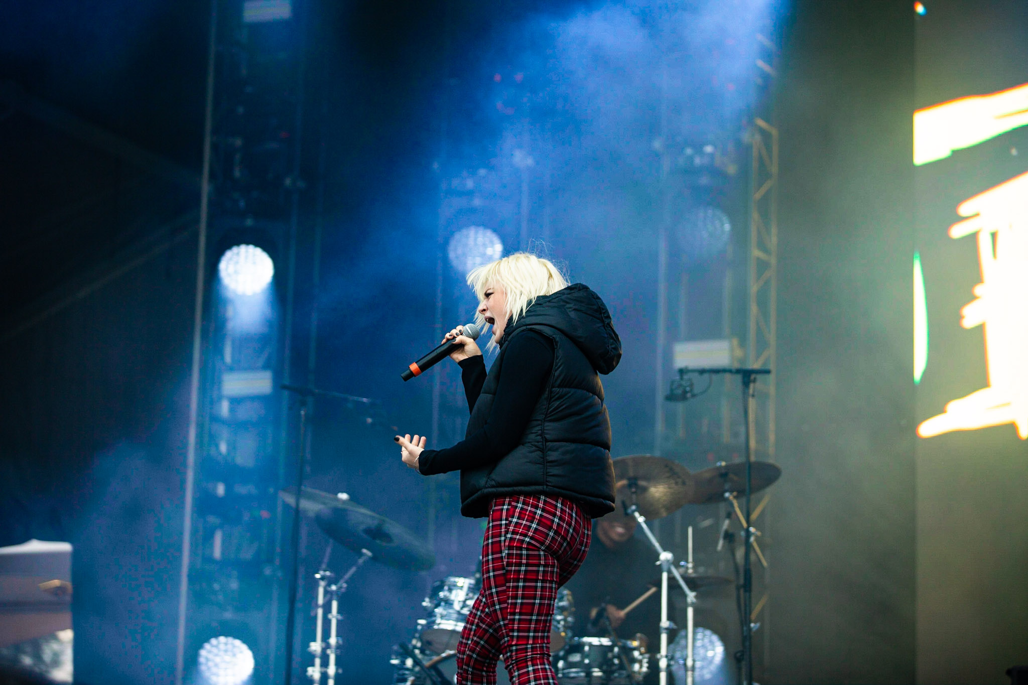 Puis, c’était à Soran de prendre la scène. Celui que vous avez peut-être connu grâce à La Voix en 2015 a livré un concert principalement composé de nouvelles chansons. Celles-ci s’inscrivent dans la continuité de ce qu’il avait présenté avec son premier EP en 2018. On y retrouve une pop radiophonique bien exécutée, mais qui n’a pas de personnalité. Par contre, le jeune homme livre le tout avec une franche authenticité. Il a même invité sur scène certains de ses amis pour une pièce à 4 parmi lesquels, on retrouvait Zach Zoya qui doit à son tour s’exécuter sur scène samedi. Par la suite, c’était Jessia qui prenait la scène pour nous livrer un pop-rock plutôt fade. C’est sûr que quand ta grosse reprise, c’est I’m With You d’Avril Lavigne, c’est… ben c’est ça. Je pense que ça résume bien le genre d’artiste devant lequel je me retrouvais et surtout la froideur avec laquelle j’ai émergé de ce 45 minutes de musique conventionnelle à mort.