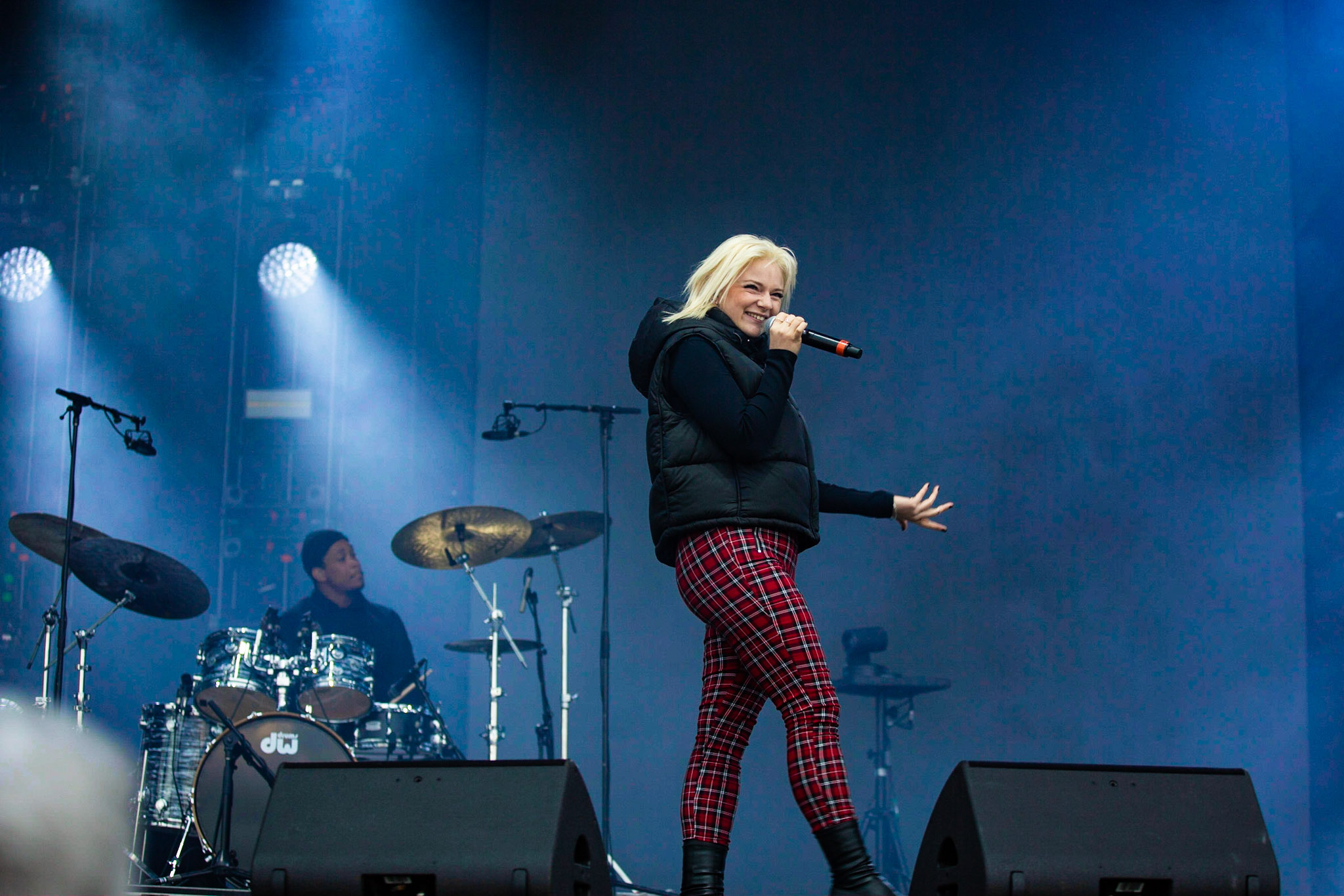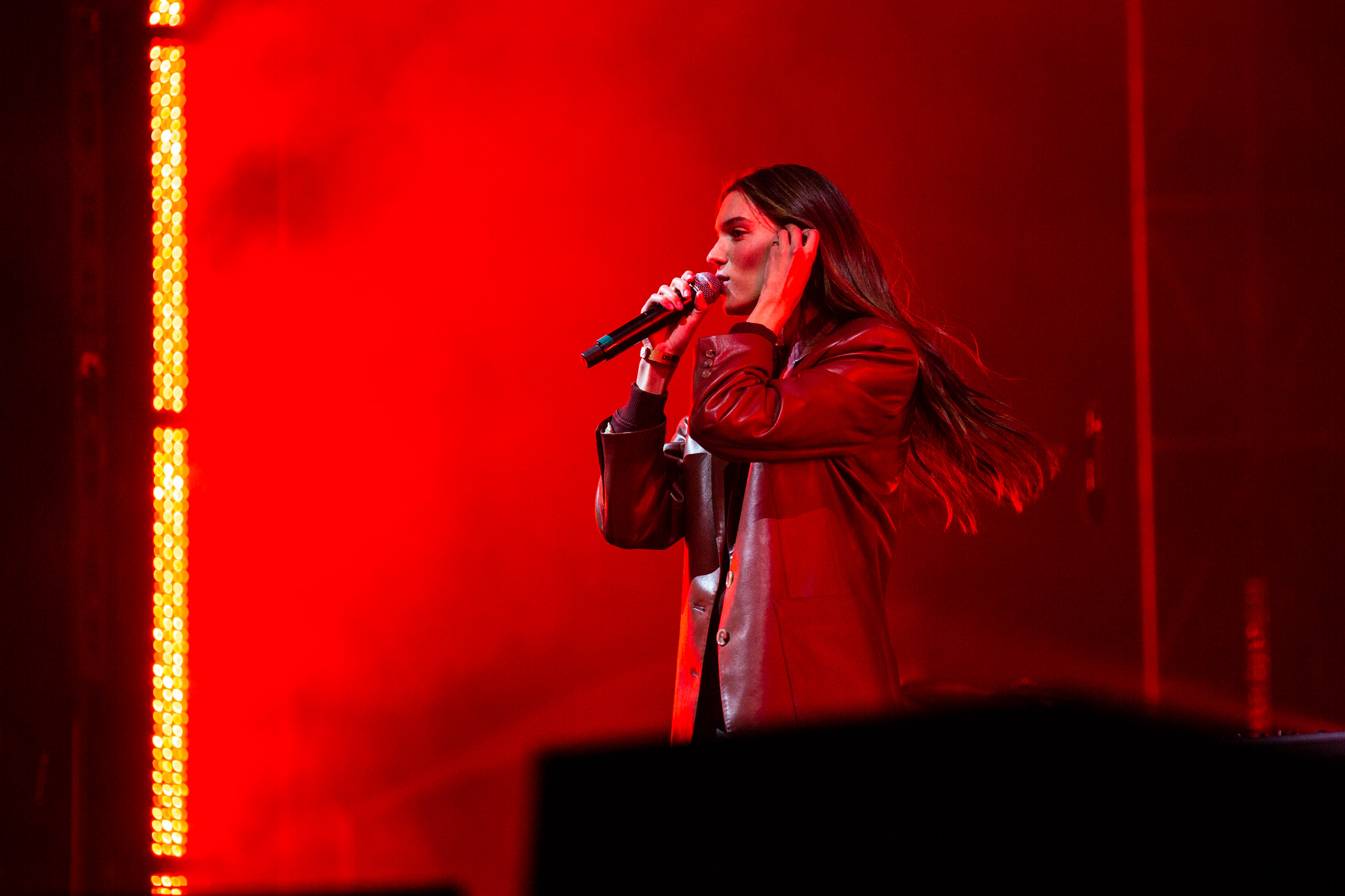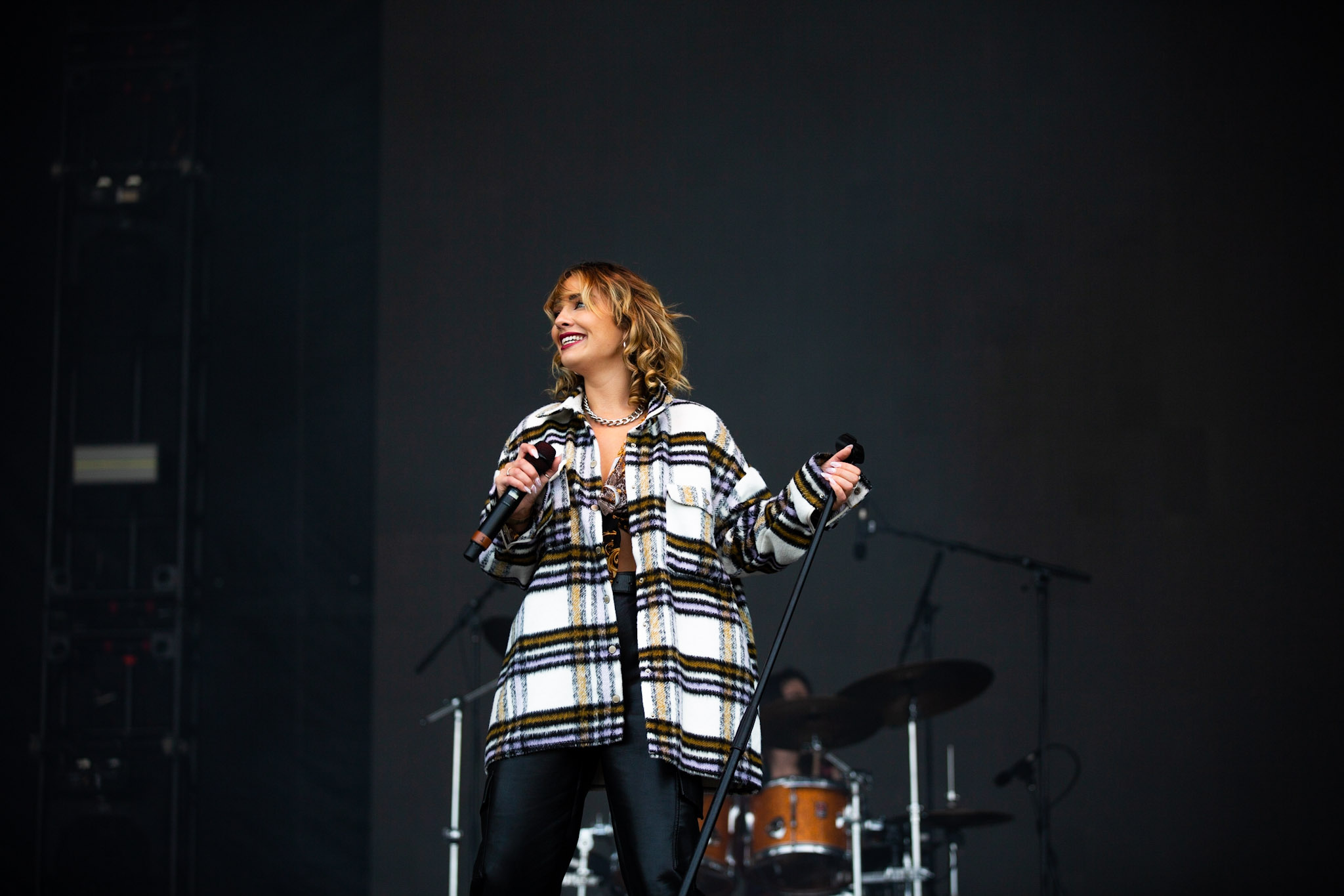 C’est Charlotte Cardin qu’on attendait avec impatience. La jeune femme qui connaît un succès monstre avec son premier album, Phoenix, paru au printemps dernier était visiblement l’artiste attendue dans cette première journée. Est-ce qu’elle le savait? Peut-être parce qu’elle semblait nerveuse pendant les deux ou trois premières chansons. De plus, cette nervosité faisait qu’elle se raccrochait à sa mise en scène qui devenait apparente et quasiment rigide. Heureusement, plus les titres s’enchaînaient, plus Cardin retrouvait son aise sur scène et avant le milieu du concert, elle souriait à pleines dents devant la foule qui était là pour elle.