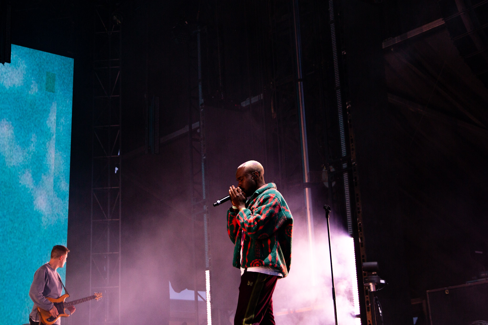 Il fallait bien manger un moment donné et malheureusement pour le Franklin Electric que j’ai vu quelques fois en spectacle, c’est à ce moment que j’ai décidé que mon ventre avait besoin d’un remontant. J’ai donc entendu au loin les chansons de la bande à Jon Matte qui semblait bien se débrouiller comme d’habitude. Puis, c’était au tour du duo torontois DVSN de prendre la scène. En toute franchise, je n’ai pas été très impressionné par la paire. Si musicalement, c’est bien rodé et bien livré, quand on prend le temps de lire les paroles, qui nous étaient projetées en gros sur l’écran, ça devient rapidement plus douteux. On a l’impression par moment d’avoir un macho un peu toxique qui chante la pomme aux dames, pis j’ai juste envie de crier : les filles, éloignées vous avant qu’il ne soit trop taaaaaaaard. Bref, ç’a un peu ruiné mon concert de DVSN.