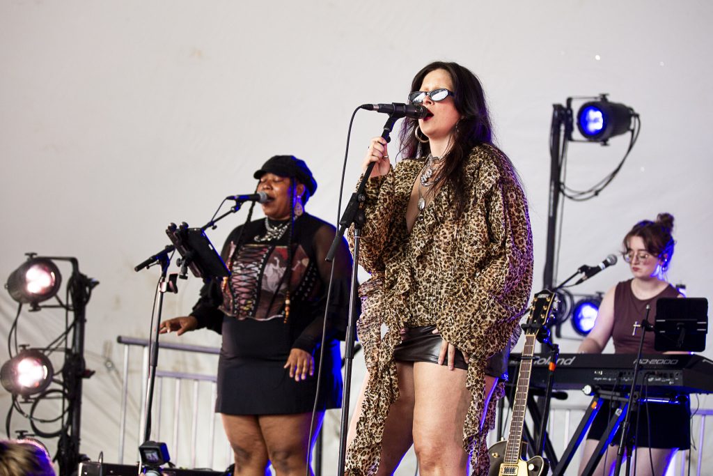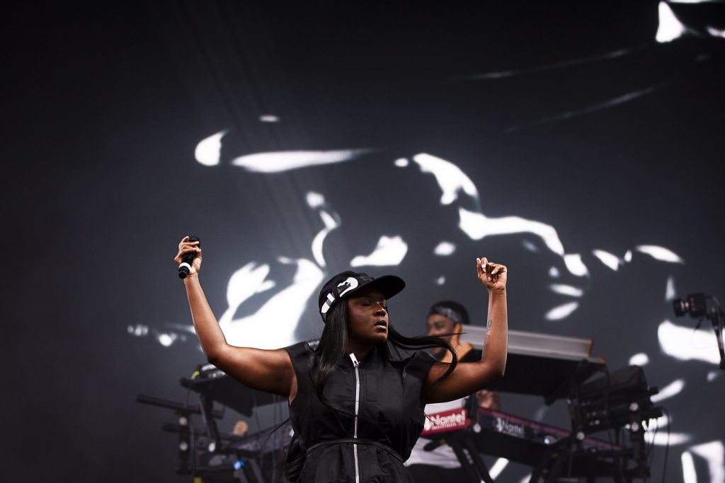 Siméon: Après le dance-punk, place à la pop alliant RnB et afrobeats de l’impressionnante Amaarae. La chanteuse ghanéenne-américaine n’a pas eu à tordre le bras à personne dans la foule avec ses morceaux envoutants. Avec le feu dans les yeux, elle a aligné des chansons connues de sa discographie, comme Angels in Tibet, Disguise et Wasted Eyes, ainsi que de nouvelles pièces qui apparaîtront sur son album BLACK STAR, disponible vendredi prochain. La chanteuse possède une présence scénique indéniable et harponne le public avec ses allocutions fortes et touchantes, comme lorsqu’elle nous parle avec éloquence des idées noires qu’elle a eues il y a quelques années, délivrant un joli message d’espoir. Ça aurait mérité une plus grande scène, avec une plus grande foule, tout ça!