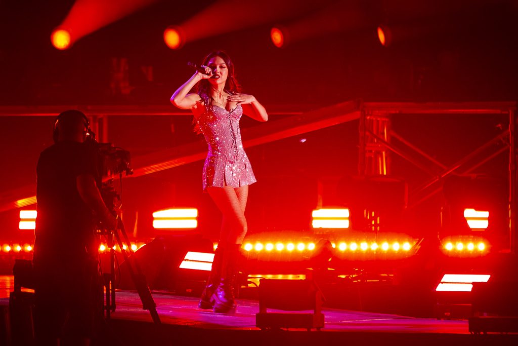 Côté succès, l’artiste n’est pas à plaindre, et c’est ce qui lui permet très tôt dans le spectacle de jouer Vampire, Drivers License et Traitor, comblant sa horde de fans qui connaît de toute façon la totalité de son répertoire par cœur. Parlant des fans, certains passages de chansons et refrains étaient pratiquement inaudibles tellement le public chantait (aigu et) fort, dans une sorte de communion où l’on sent que le propos des morceaux, dont le sujet principal est les ex, rallie comme des sentiments exutoires vécus de toustes. Même ses chansons plus pop prennent une tournure réellement rock avec son groupe, entièrement composé de femmes toutes plus talentueuses les unes que les autres, et Olivia joue et comprend les codes d’un style de musique qu’elle semble apprécier pour vrai. Généreuse et passionnée, Rodrigo interagit constamment avec ses musiciennes, les caméras ou le public, comme si celui-ci avait la capacité de détourner le regard de sa personne (la réponse, c’est non!).