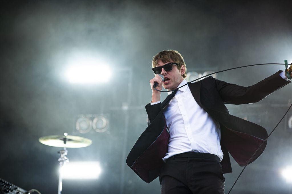 Grain de sel de Nadine: Un public crinqué à bloc attend de pied ferme Harrison Patrick Smith, dit-The Dare, protégé de Charli XCX, programmé à la Scène de la Vallée en début de soirée. Avec sa dégaine nonchalante, son habituel complet-cravate, l’américain enchaîne les morceaux, passant du micro à sa console en dansant et en donnant toute l’énergie qu’il a. Entre ses chansons rappelant LCD Soundsystem ou The Rapture, l’artiste nous montre son côté un peu baveux, remercie certains fans venus vêtus de cravates noires, accusant tout le reste du public d’être “mal habillé” avec humour.