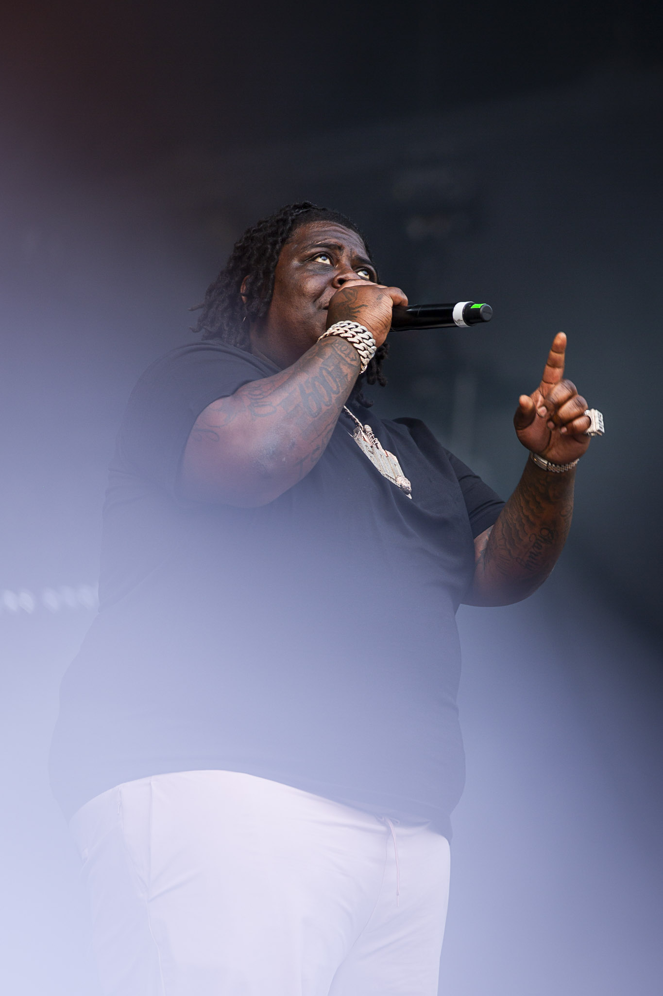 Siméon Dumont: Après les prestations assez fades de Kenny Mason et Bktherula, le phénomène texan BigXthaPlug nous a remis cette troisième journée sur les rails du côté des scènes de la vallée et de la forêt. Nous promettant « le meilleur concert de tous les temps », le DJ du rappeur exagérait bien sûr, mais le colosse nous a tout de même offert une performance excitante, gracieuseté de succès, comme Mmhmm, Texas, The Largest et la chanson All The Way, collaboration country et populaire avec Bailey Zimmerman. Le flow unique de l’artiste (toutefois un peu répétitif), son aura (oui je suis un Z) et la venue du rappeur Ro$ama, qui s’est transformé en hypeman efficace, ont su plaire au large public en liesse venu voir le natif de Dallas.