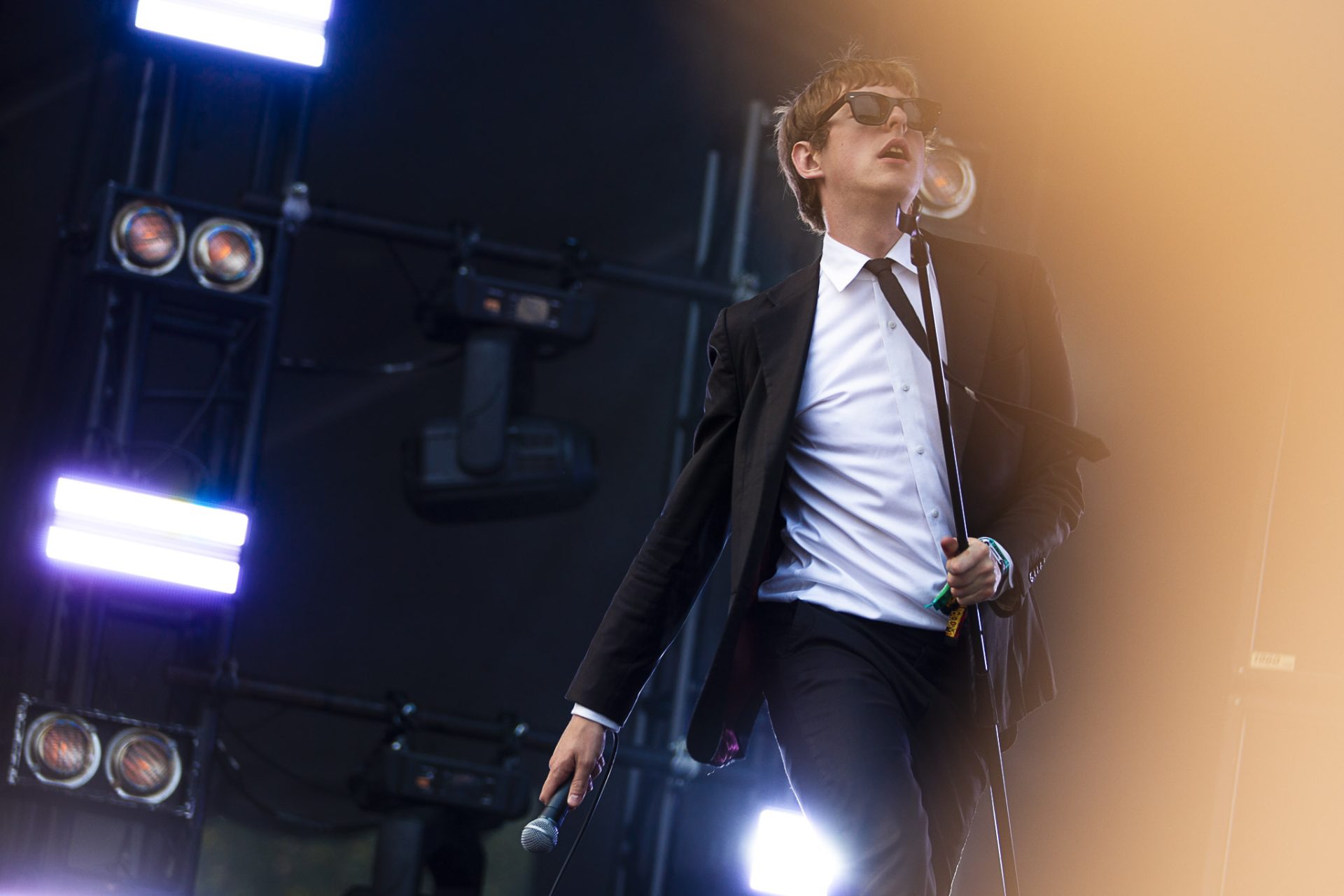 Grain de sel de Nadine: Un public crinqué à bloc attend de pied ferme Harrison Patrick Smith, dit-The Dare, protégé de Charli XCX, programmé à la Scène de la Vallée en début de soirée. Avec sa dégaine nonchalante, son habituel complet-cravate, l’américain enchaîne les morceaux, passant du micro à sa console en dansant et en donnant toute l’énergie qu’il a. Entre ses chansons rappelant LCD Soundsystem ou The Rapture, l’artiste nous montre son côté un peu baveux, remercie certains fans venus vêtus de cravates noires, accusant tout le reste du public d’être “mal habillé” avec humour.