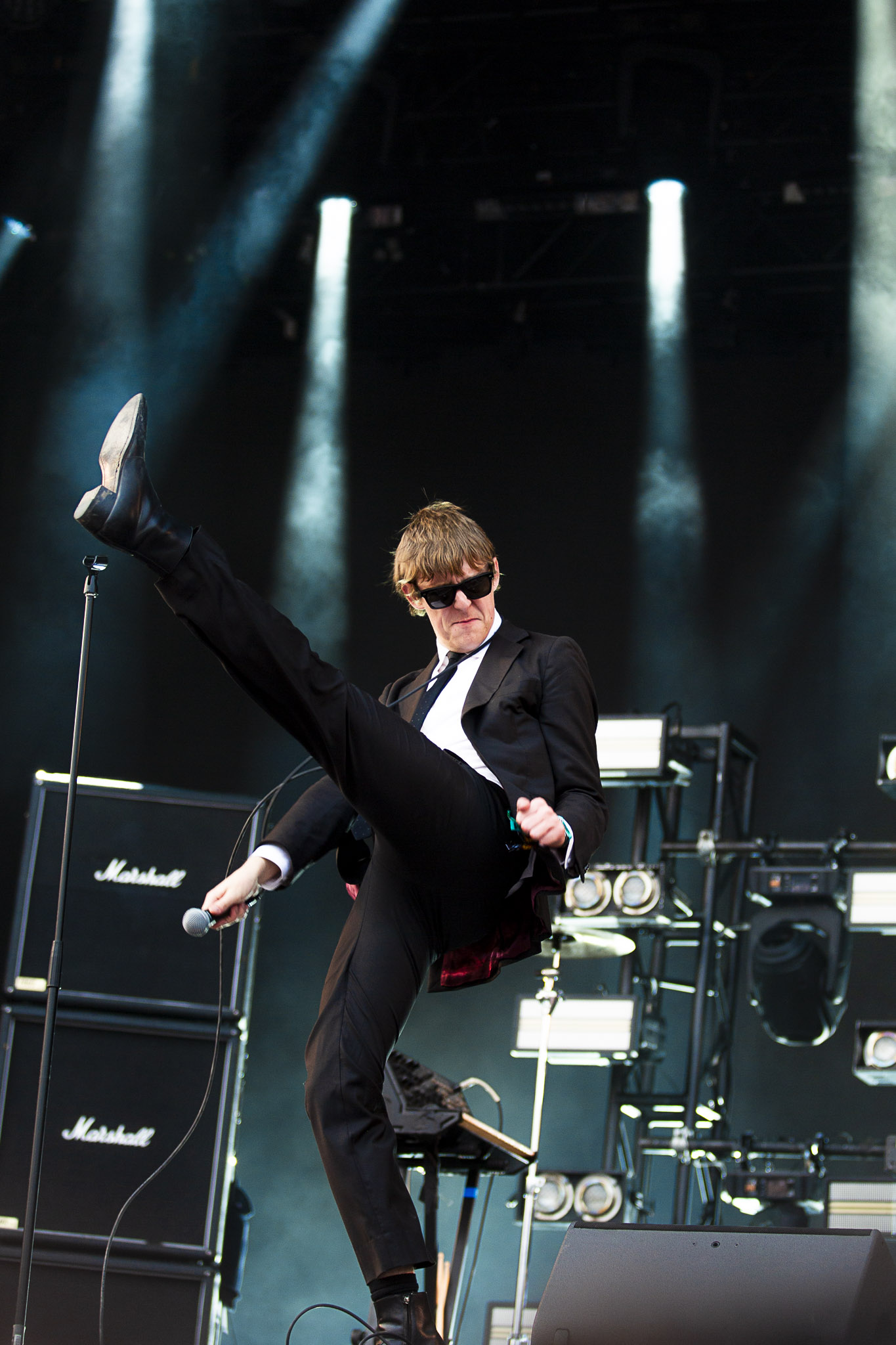 Toute personne ayant déjà vu Cage The Elephant en show vous dira que c’est en spectacle que le groupe prend tout son sens, tellement que son frontman, Matt Shultz, est époustouflant à regarder. À la jonction entre Nick Cave et Anthony Kiedis des Red Hot Chili Peppers, Shultz se démène pour en donner plein la vue, traversant entre les deux grandes scènes pour aller chanter au public en attente d’Olivia Rodrigo, empruntant la casquette d’une spectatrice, se chamaillant avec son frère guitariste, tout ça en livrant une performance musicalement impeccable.