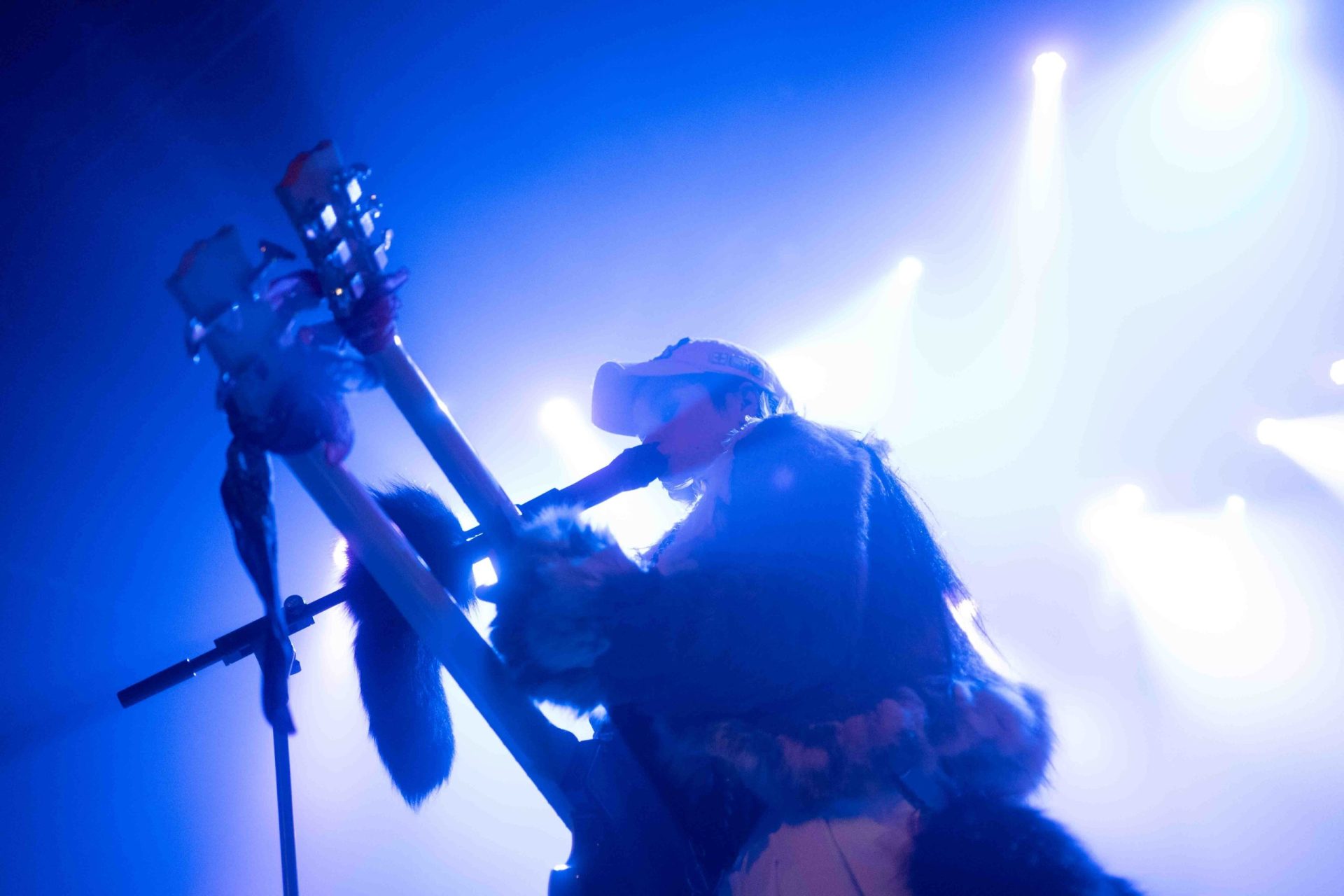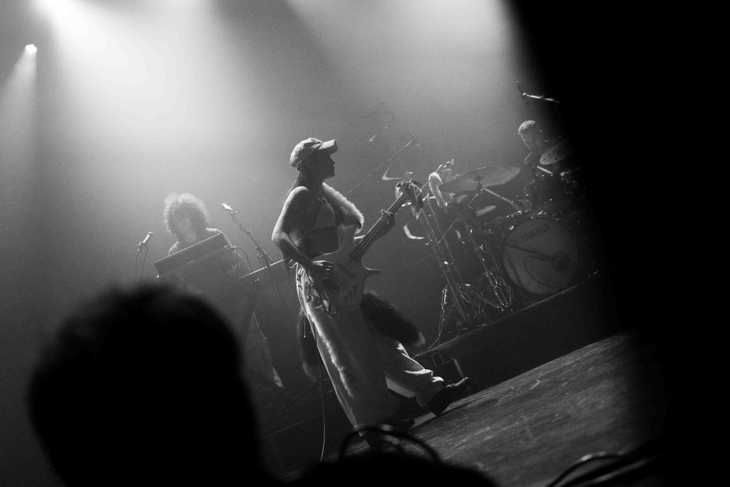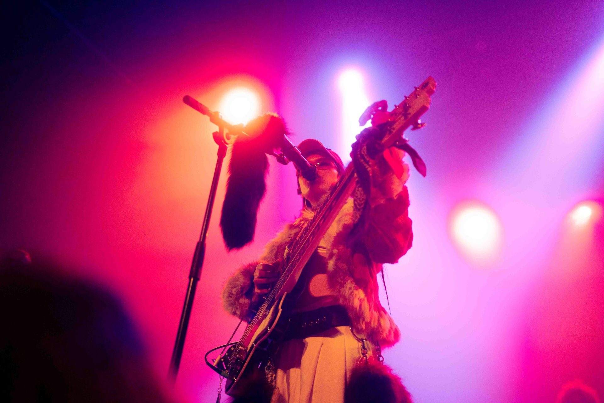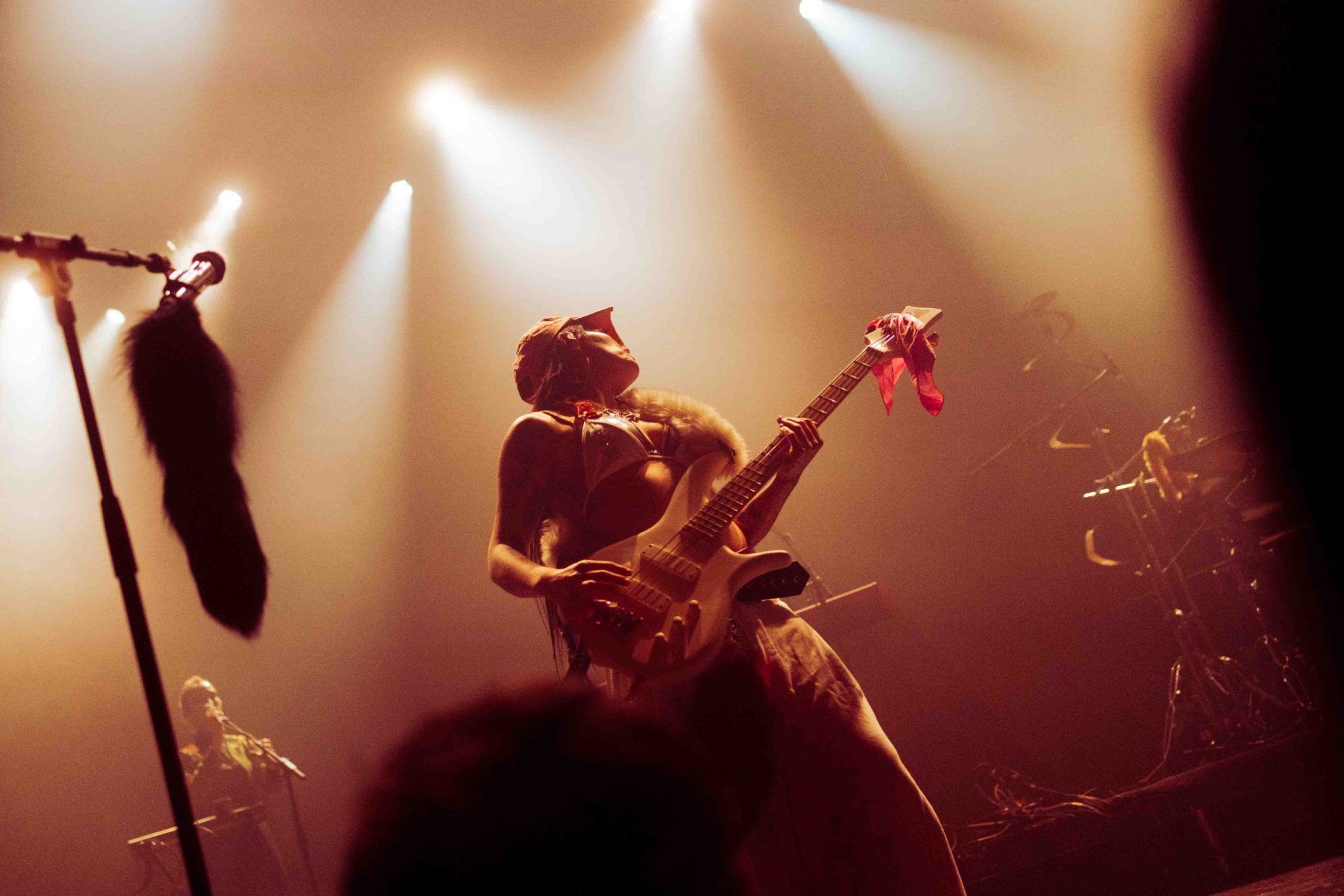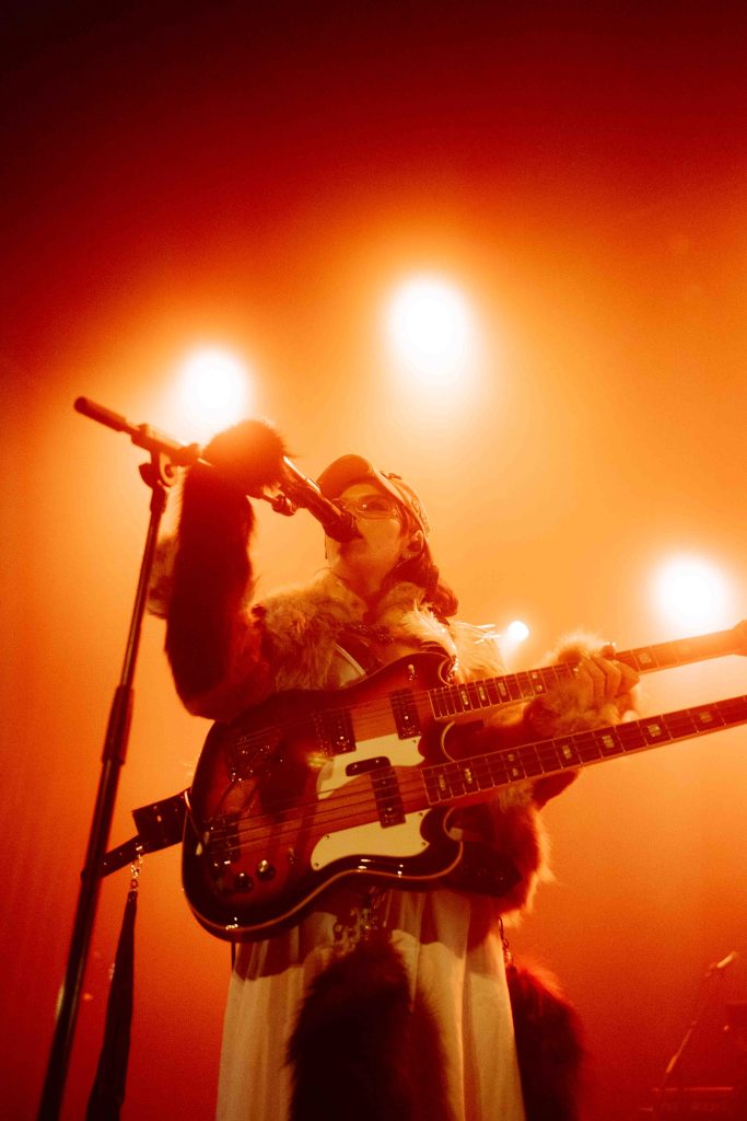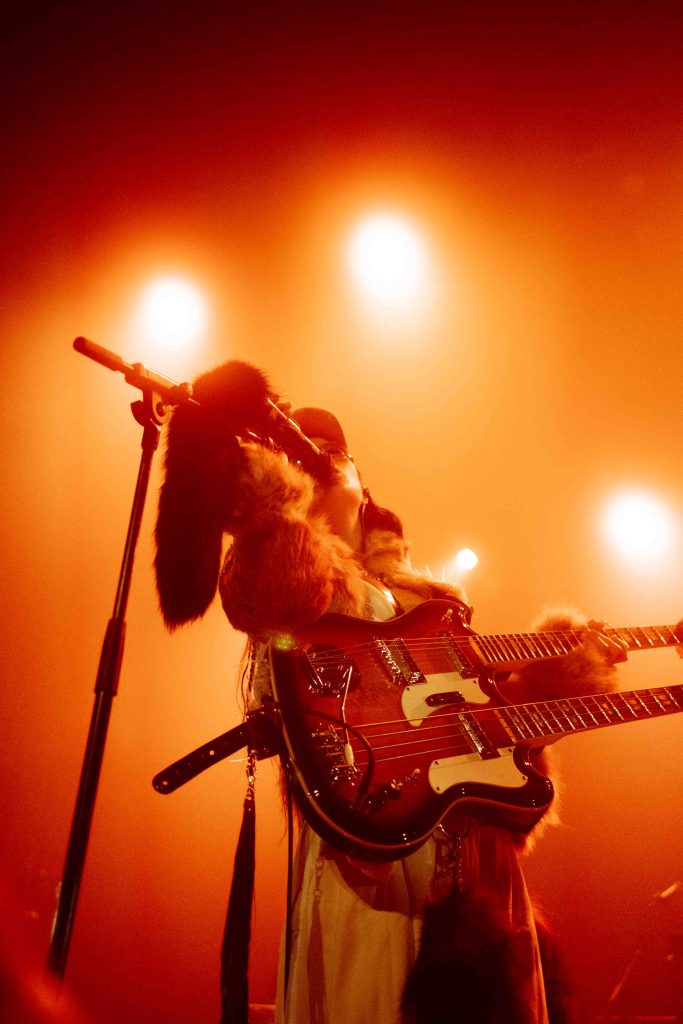 Charisme et extravagance contrôlée, elle est arrivée sur scène avec son impressionnante guitare à double manche ornée de fourrure. J’étais agréablement surprise de voir la formation de 5 musiciens qui accompagnait Saya Gray sur scène, avec notamment son frère Lucian Gray avec qui elle a fièrement composé son dernier album homonyme SAYA en totale indépendance.