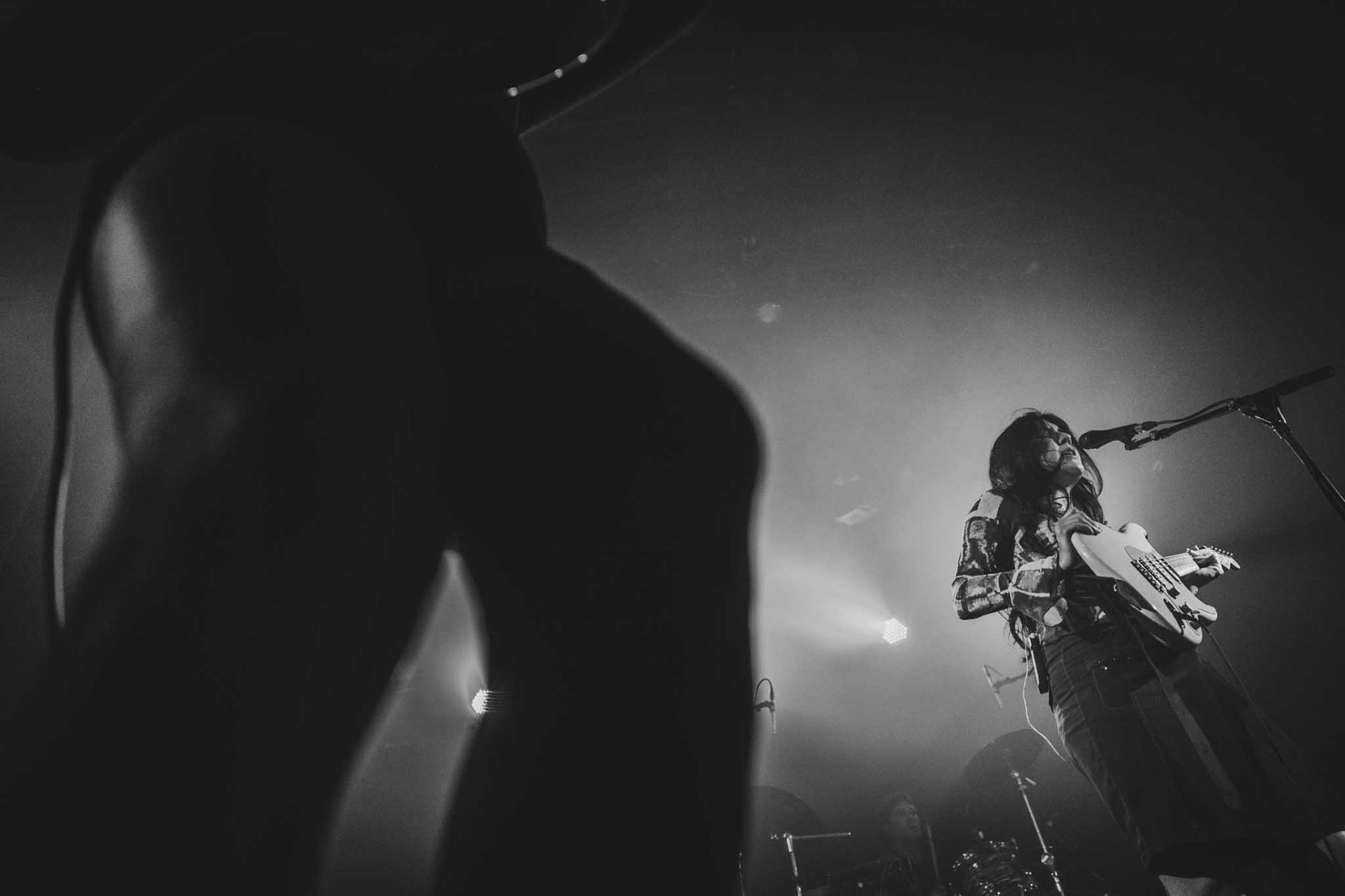 Musicalement, Ribbon Skirt nous a offert un feu roulant de 10 chansons qui traversait l’ensemble de sa discographie. À mon grand plaisir, LUCKY8 et PENSACOLA de l’excellent EP paru l’an dernier étaient du lot. Ces pièces, comme sur album, étaient les plus musclées du concert et une partie de moi souhaite que la formation se dirige vers ces eaux plus troubles dans ses prochaines créations. La formation est solide sur scène et, comme pour les grands groupes de Shoegaze des années 90, la dichotomie entre le groupe assez bruyant et la voix aérienne et lancinante de Buswa offre un panorama auditif délicieux. C’était une première partie de course.