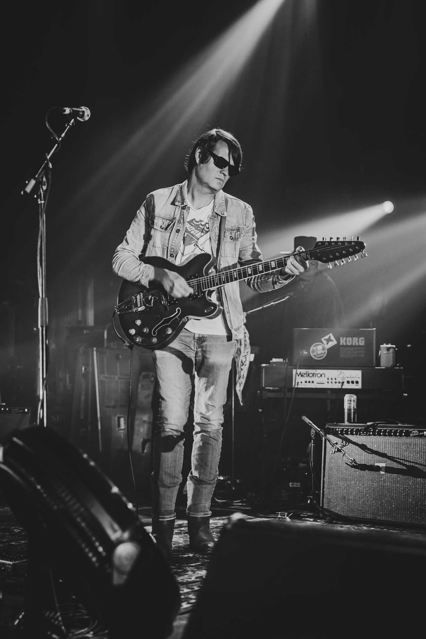 The Brian Jonestown Massacre, c’est plus de 20 albums studio et 300 chansons dans le répertoire. Au menu samedi, quelques classiques de la discographie (Anemone, Pish ) et des deeps cuts. Les membres du public qui souhaitaient entendre leur chanson préférée ont probablement été déçus. J’ai senti la déception chez plusieurs en raison de l’absence de morceaux comme Fingertips ou, pour ma part, des pièces de l’album Take It From The Man comme David Bowie I Love You, Since I Was Five ou Straight Up And Down (qui est aussi le thème de la série télé Boardwalk Empire).