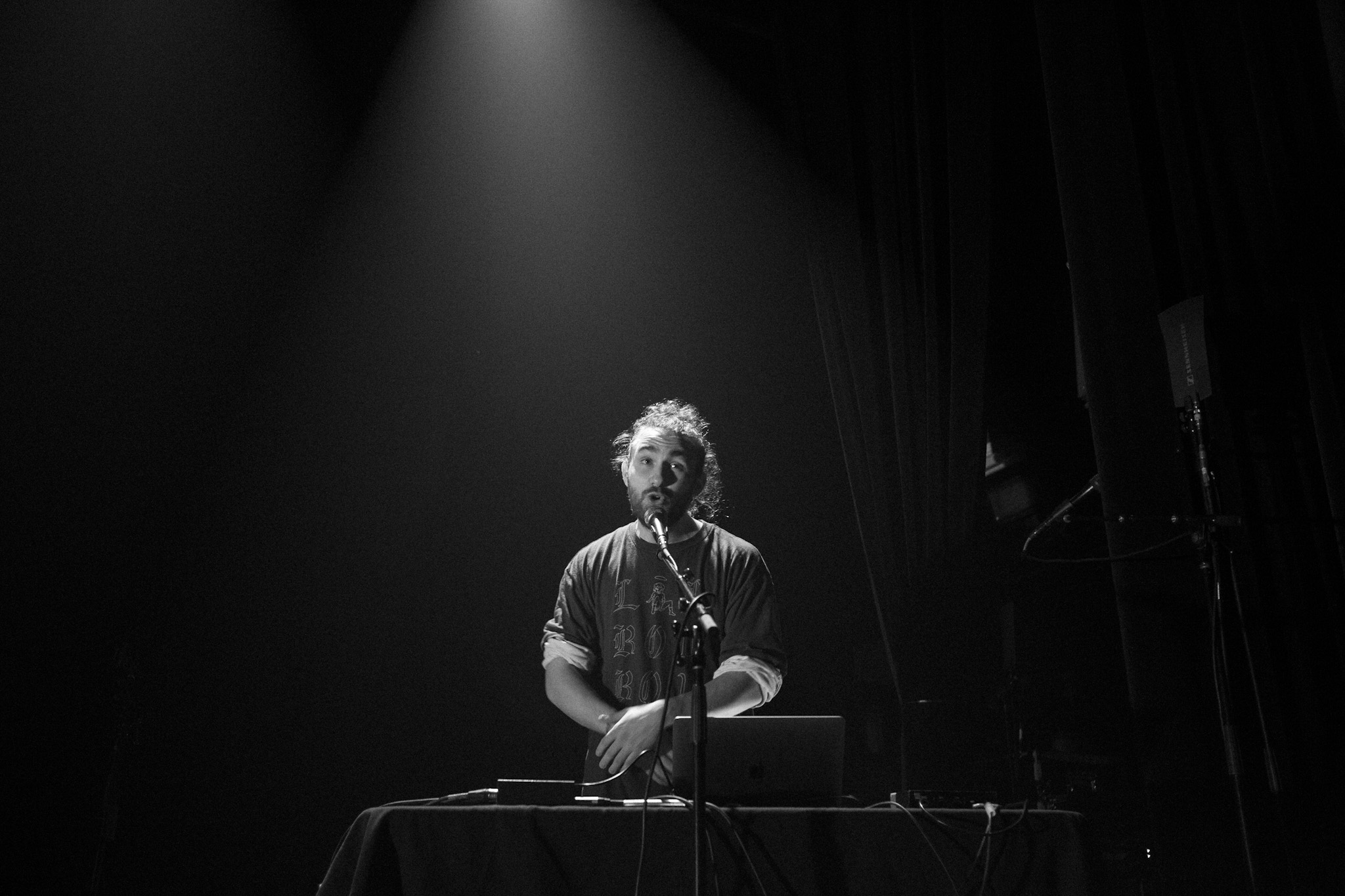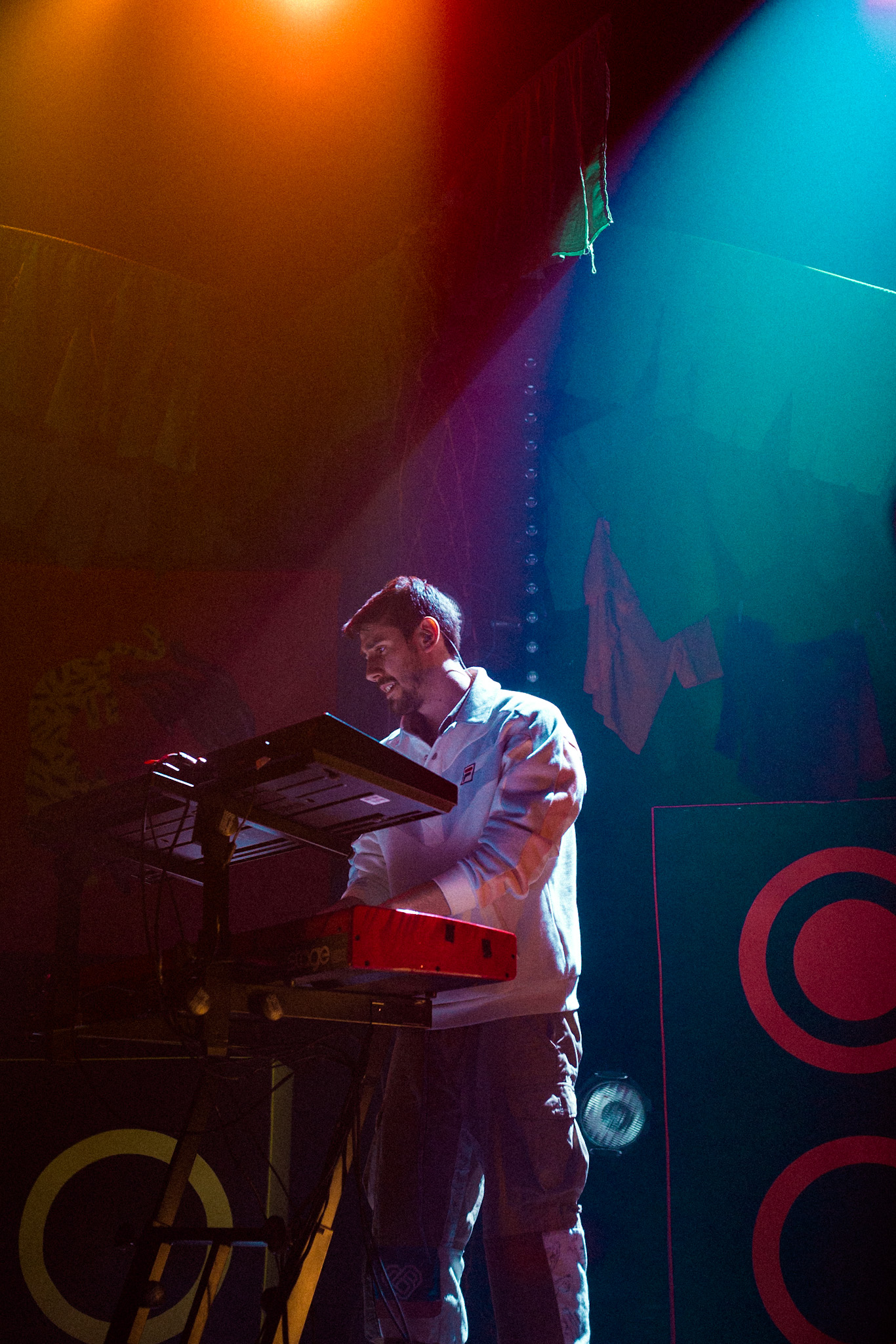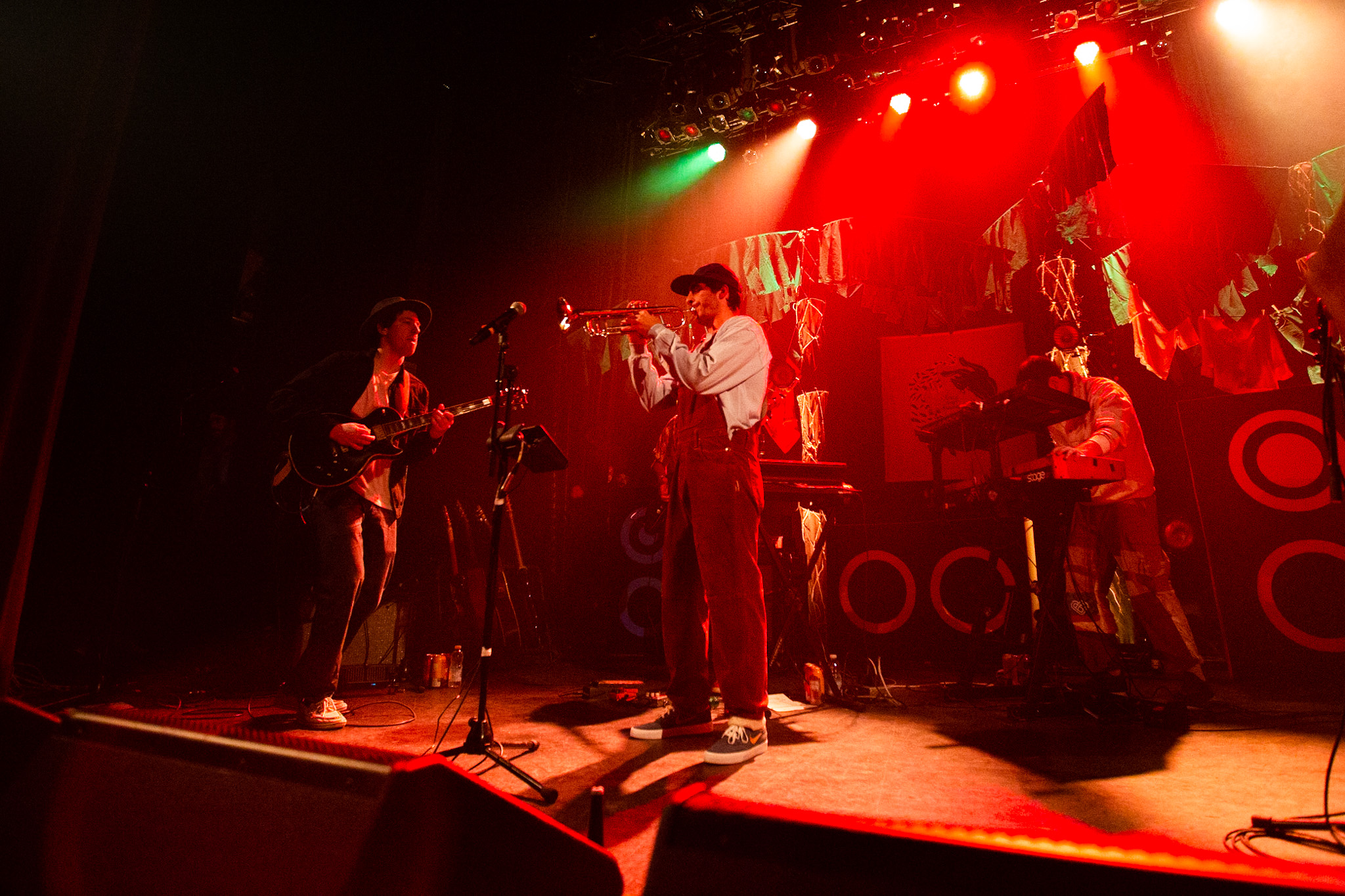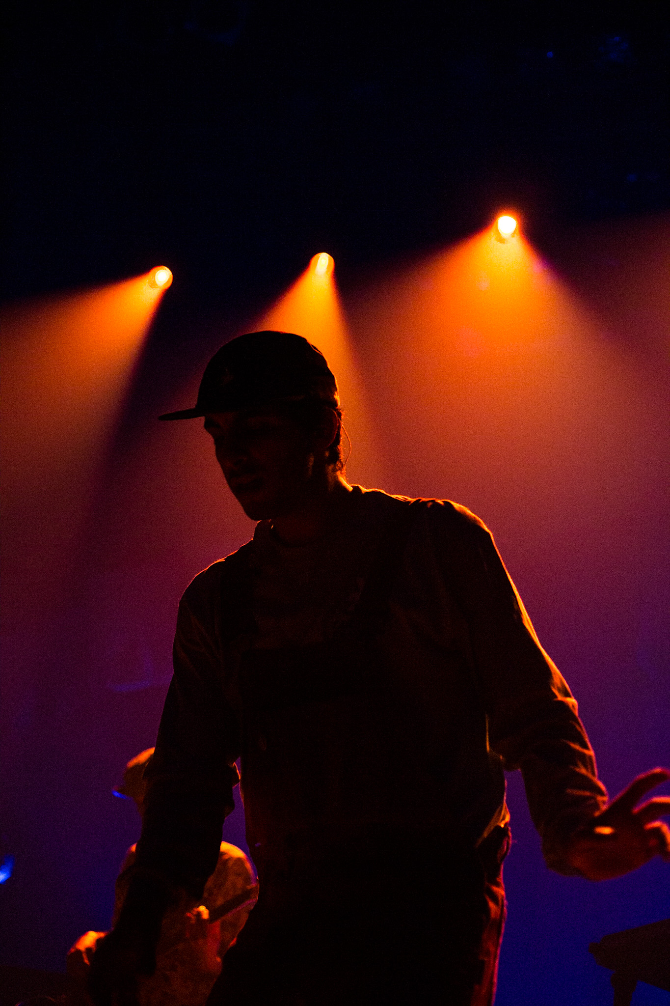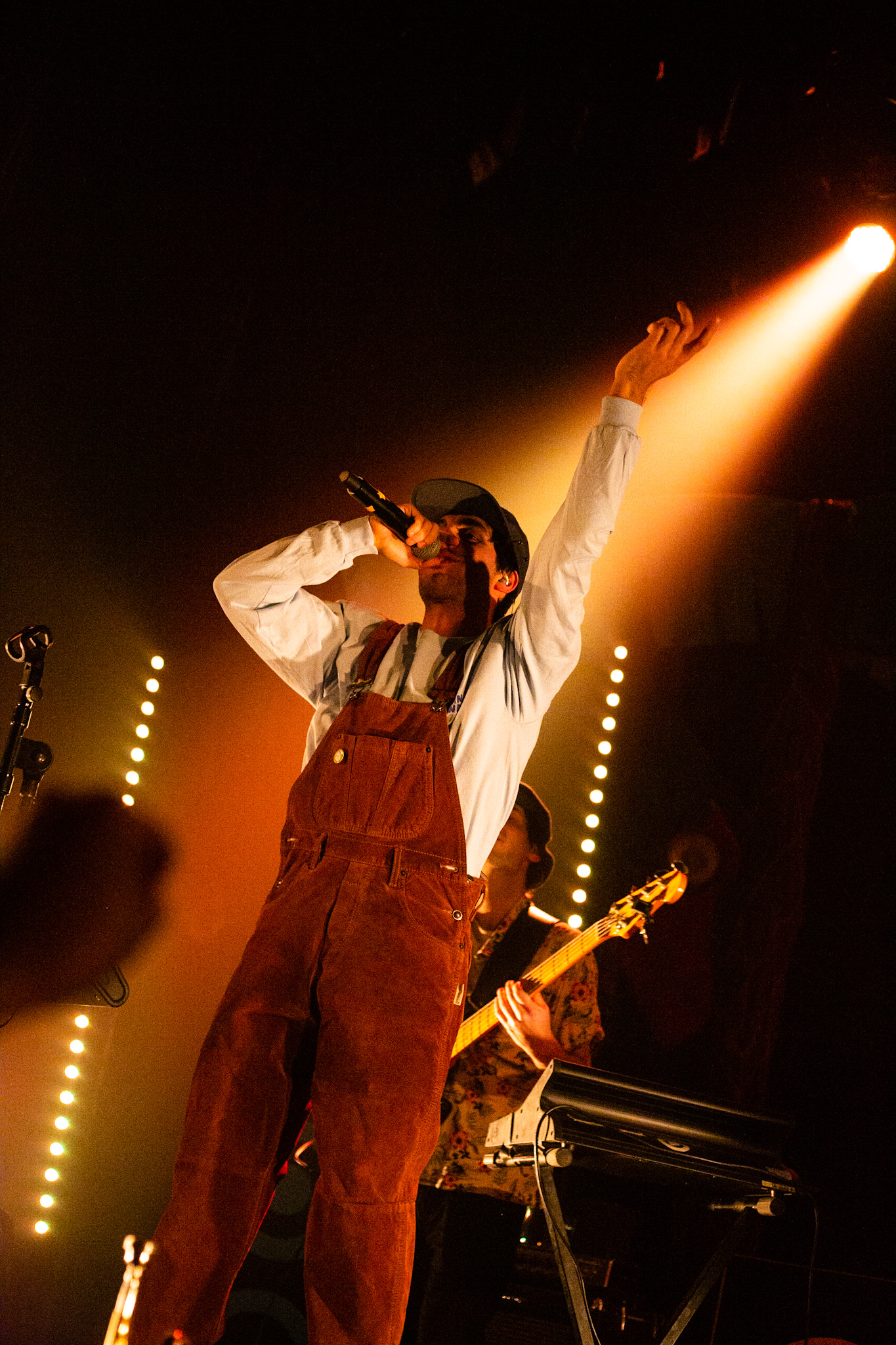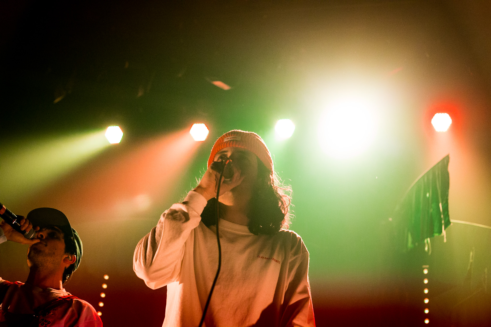 Sans se faire attendre, Clay & Friends a rapidement ouvert le spectacle en proposant un décor exotique aux couleurs de leur dernier EP : Grouillades. C’est dans une ambiance survoltée qu’il a débuté avec OMG, Gainsbourg, Name on It, OK, LEtTRe À SIMONE et Grouillades. Rien de mieux pour bien réchauffer la foule et pour la faire danser jusqu’à la fin du spectacle. Mike Clay a su, avec brio, animer un Club Soda (qui affichait complet) en racontant des blagues, en nous jasant en franglais et en se mettant torse nu sous sa salopette. On a eu droit à un coup de téléphone, parce qu’il y avait un téléphone public installé dans le décor, d’un certain Sam qui est par la suite venu lancer des popsicles dans la foule pour refroidir l’atmosphère brûlante de la salle.