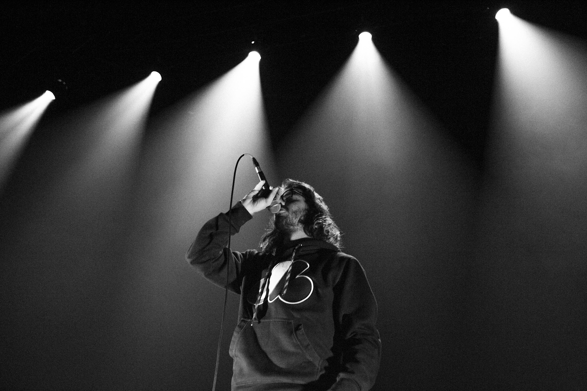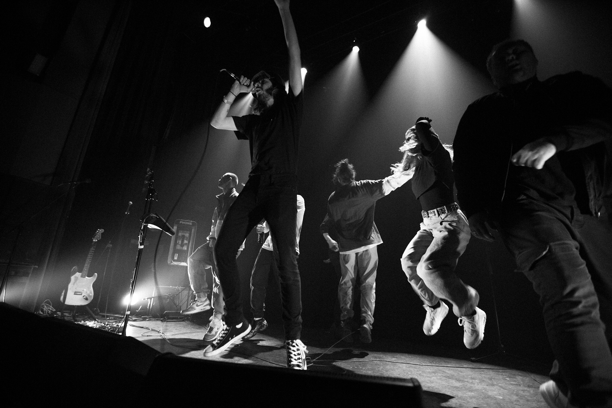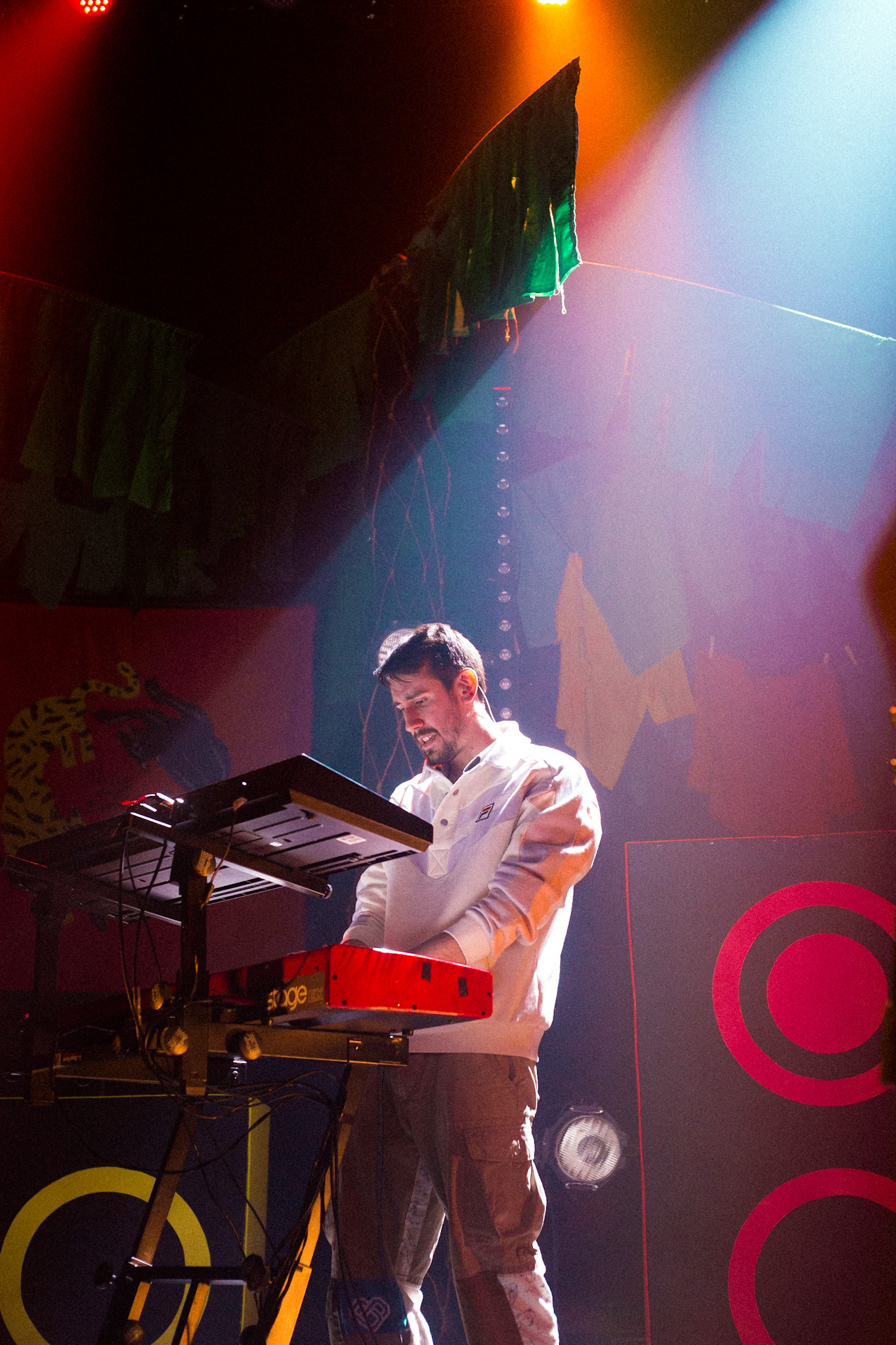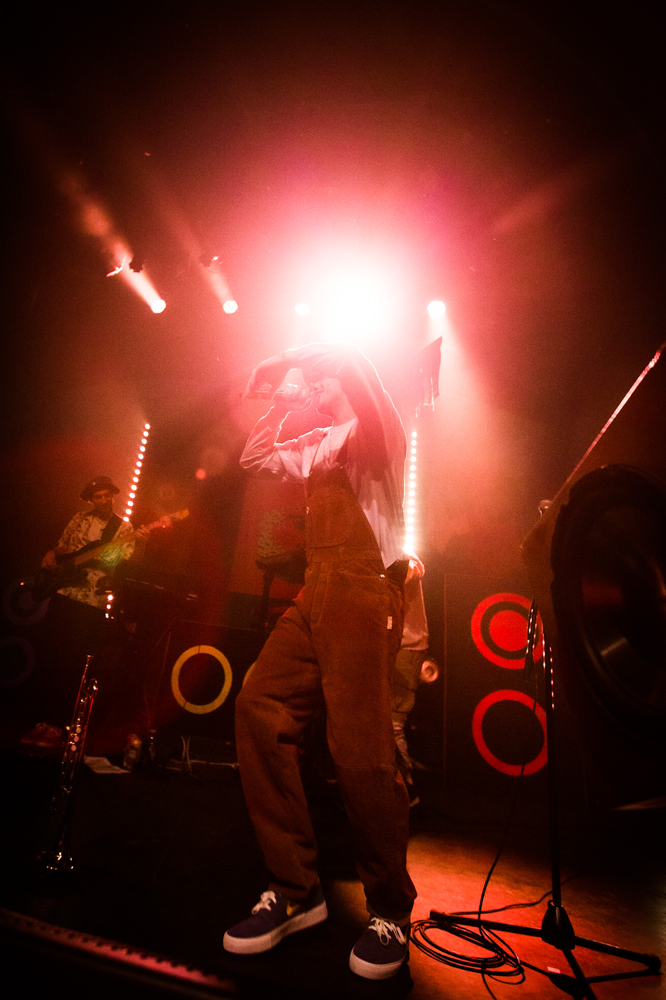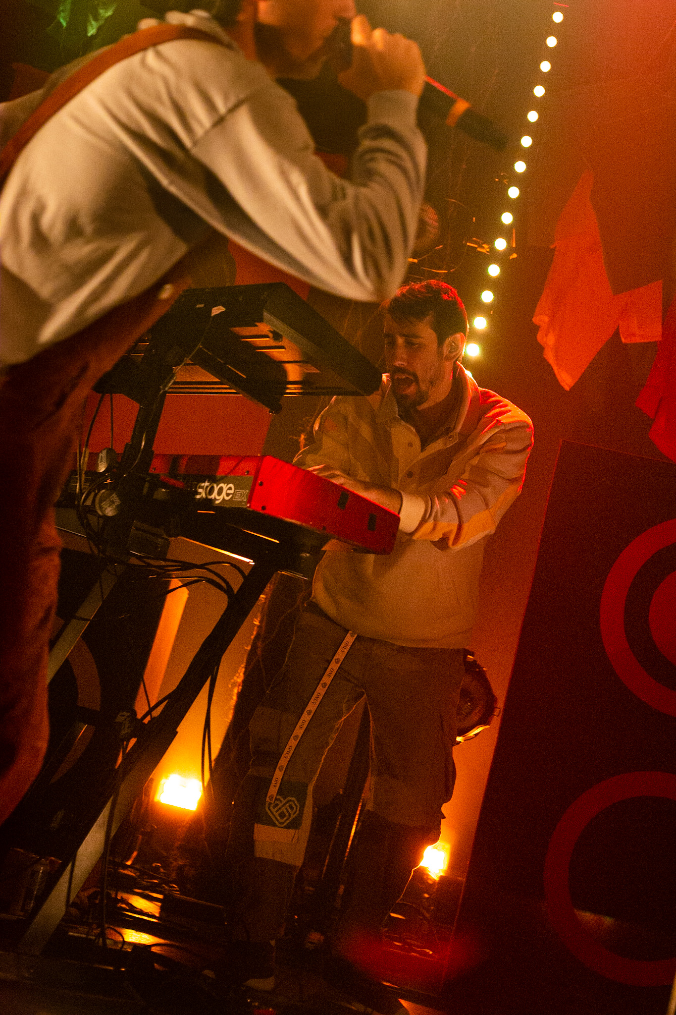 Sans se faire attendre, Clay & Friends a rapidement ouvert le spectacle en proposant un décor exotique aux couleurs de leur dernier EP : Grouillades. C’est dans une ambiance survoltée qu’il a débuté avec OMG, Gainsbourg, Name on It, OK, LEtTRe À SIMONE et Grouillades. Rien de mieux pour bien réchauffer la foule et pour la faire danser jusqu’à la fin du spectacle. Mike Clay a su, avec brio, animer un Club Soda (qui affichait complet) en racontant des blagues, en nous jasant en franglais et en se mettant torse nu sous sa salopette. On a eu droit à un coup de téléphone, parce qu’il y avait un téléphone public installé dans le décor, d’un certain Sam qui est par la suite venu lancer des popsicles dans la foule pour refroidir l’atmosphère brûlante de la salle.