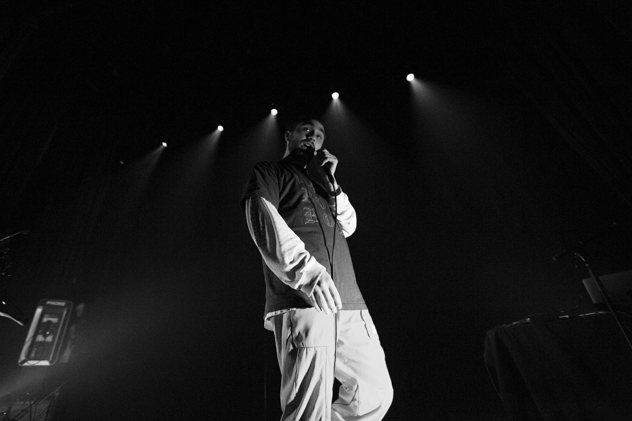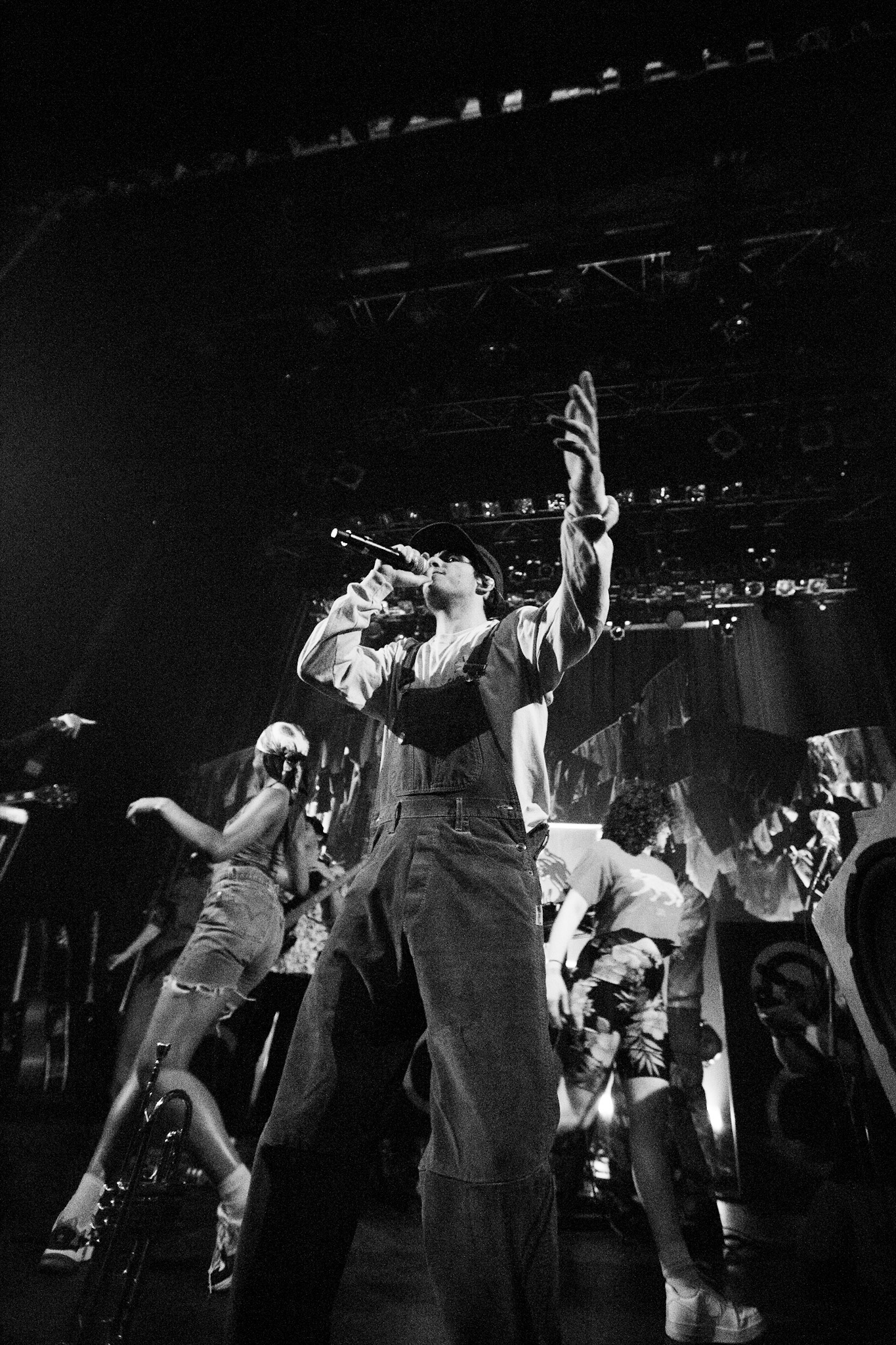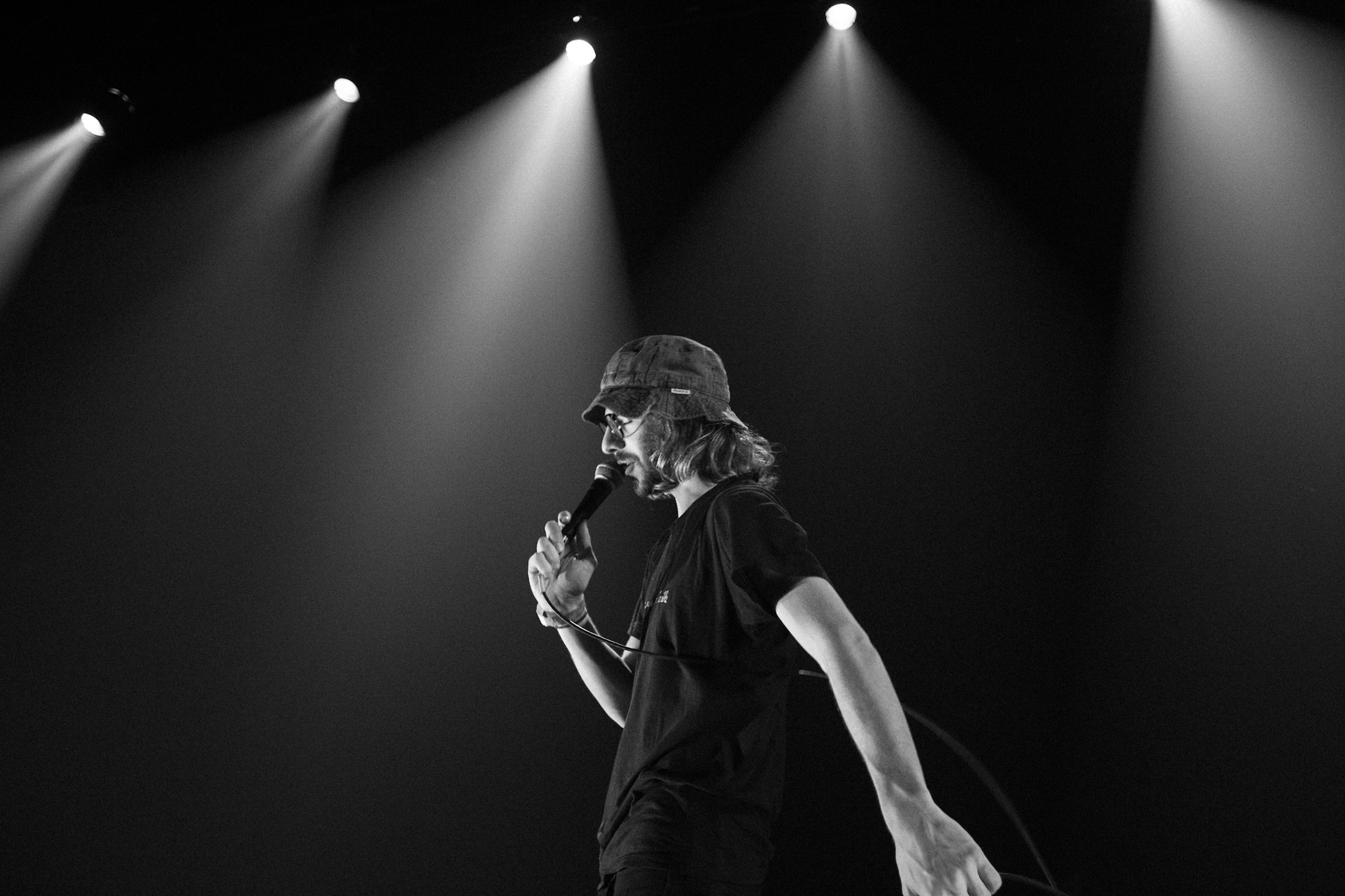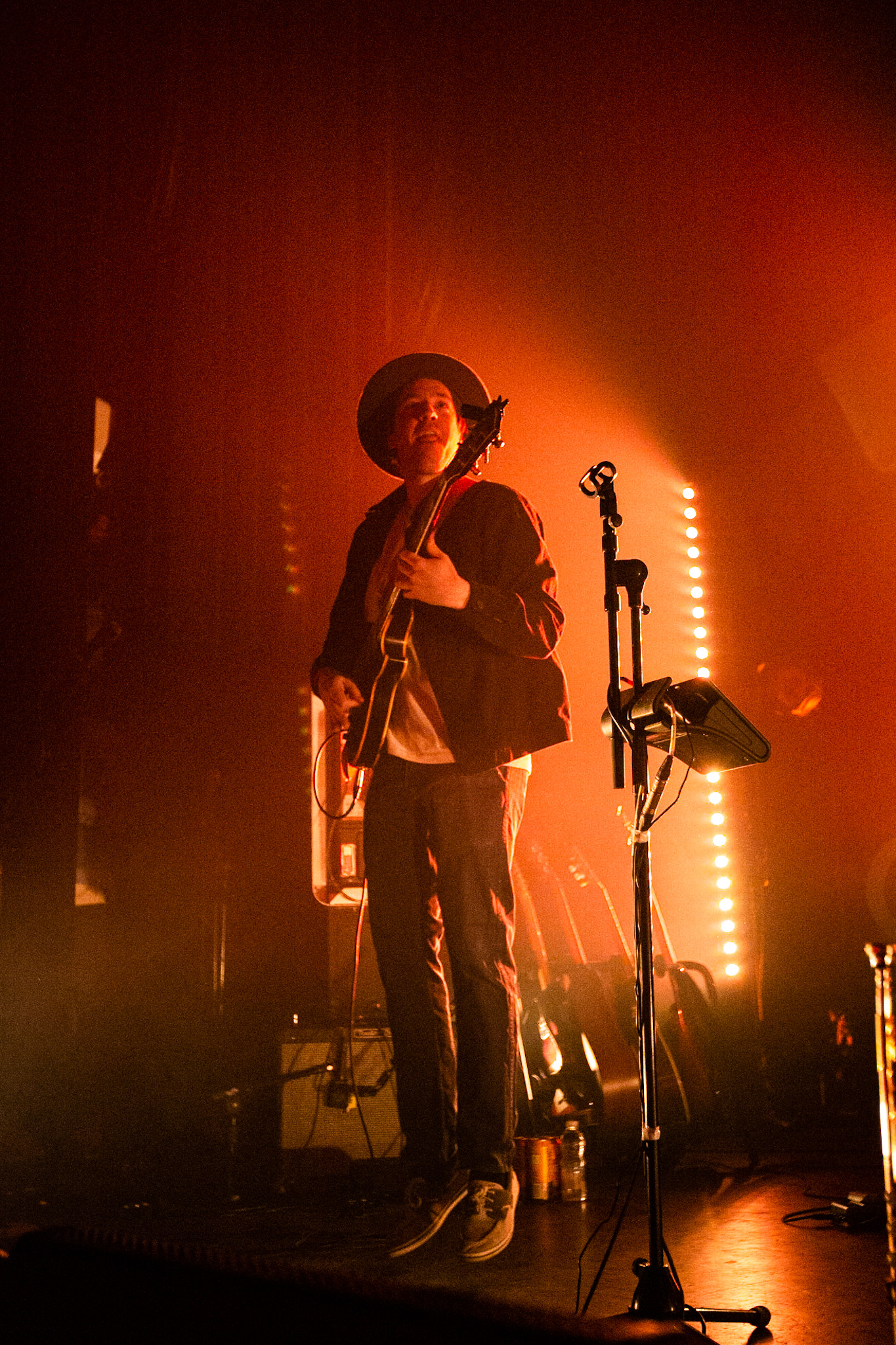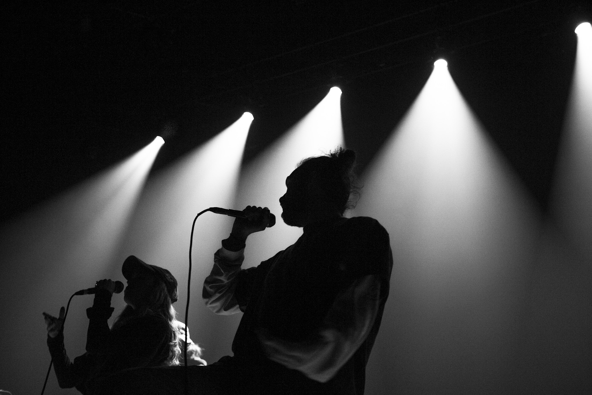 Sans se faire attendre, Clay & Friends a rapidement ouvert le spectacle en proposant un décor exotique aux couleurs de leur dernier EP : Grouillades. C’est dans une ambiance survoltée qu’il a débuté avec OMG, Gainsbourg, Name on It, OK, LEtTRe À SIMONE et Grouillades. Rien de mieux pour bien réchauffer la foule et pour la faire danser jusqu’à la fin du spectacle. Mike Clay a su, avec brio, animer un Club Soda (qui affichait complet) en racontant des blagues, en nous jasant en franglais et en se mettant torse nu sous sa salopette. On a eu droit à un coup de téléphone, parce qu’il y avait un téléphone public installé dans le décor, d’un certain Sam qui est par la suite venu lancer des popsicles dans la foule pour refroidir l’atmosphère brûlante de la salle.