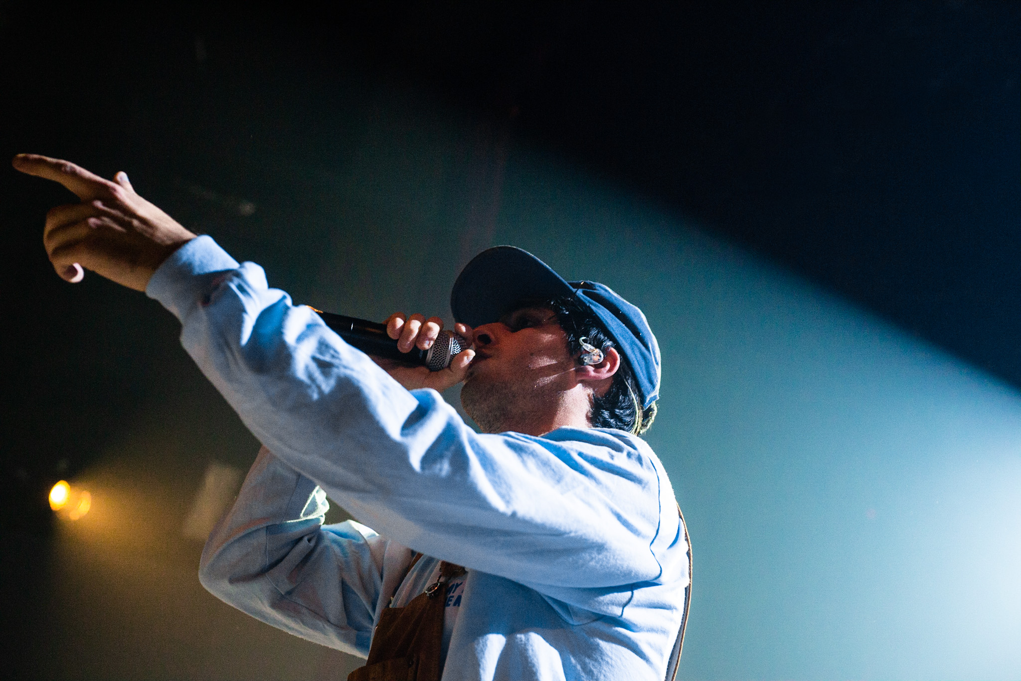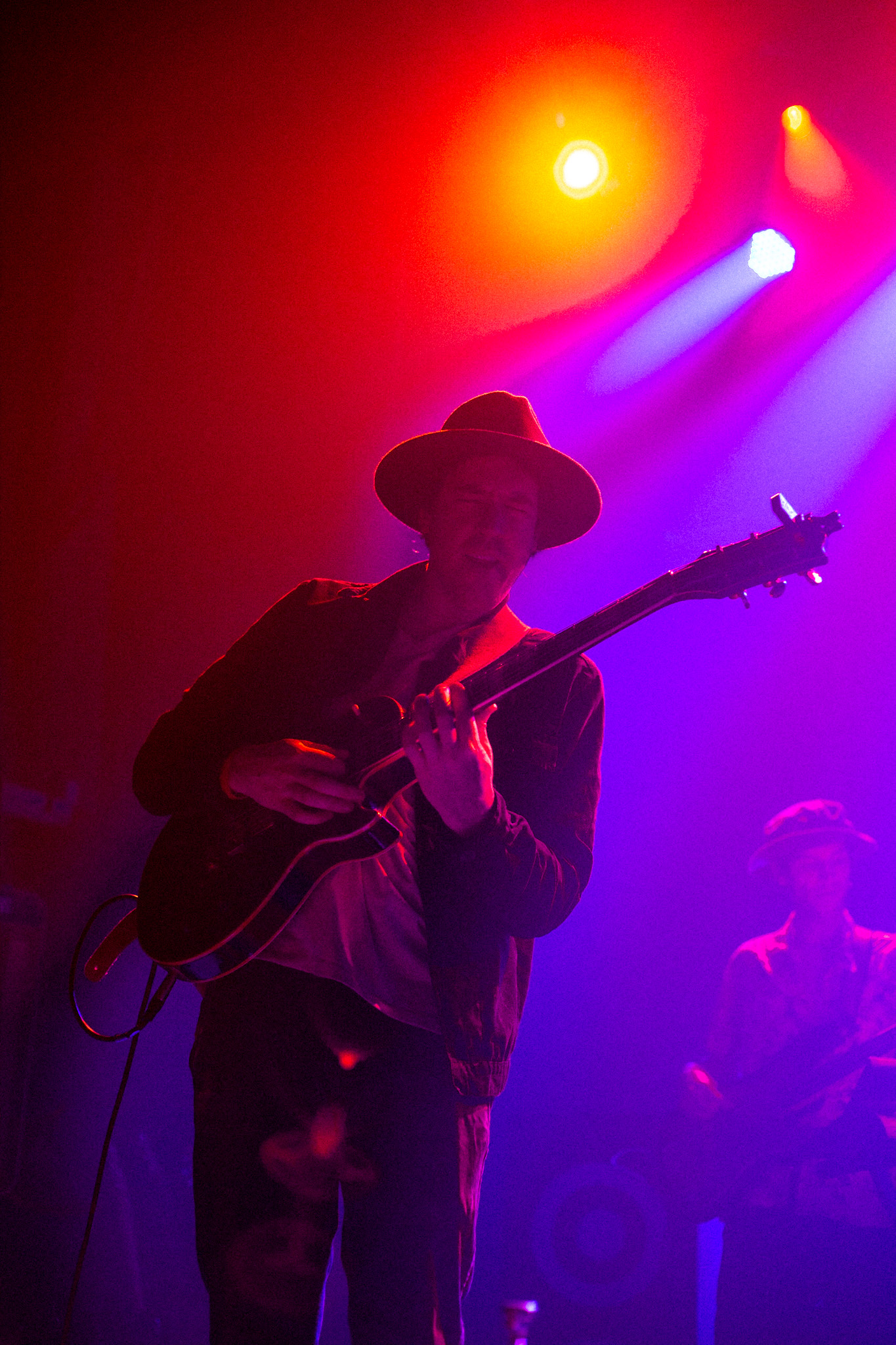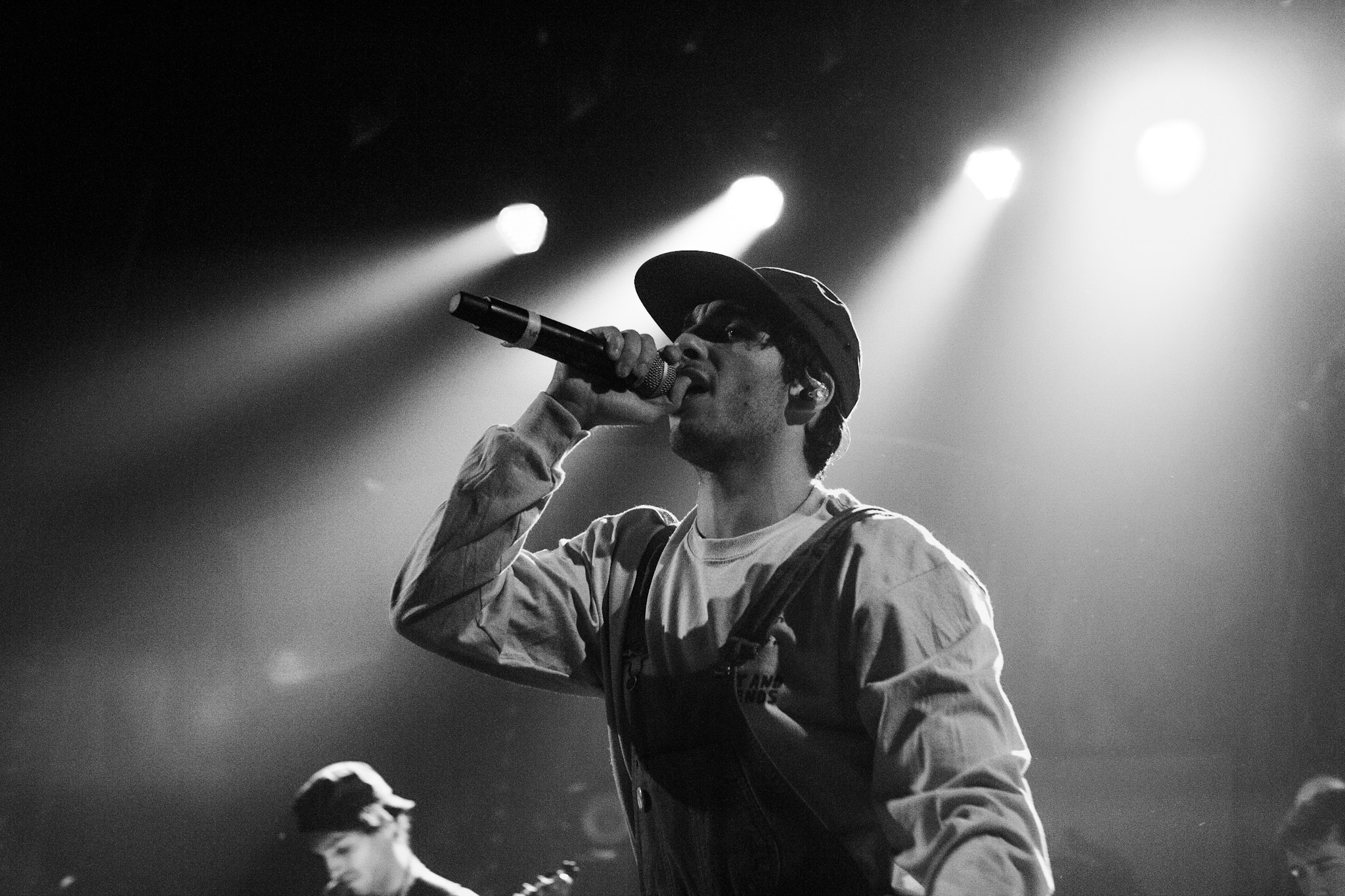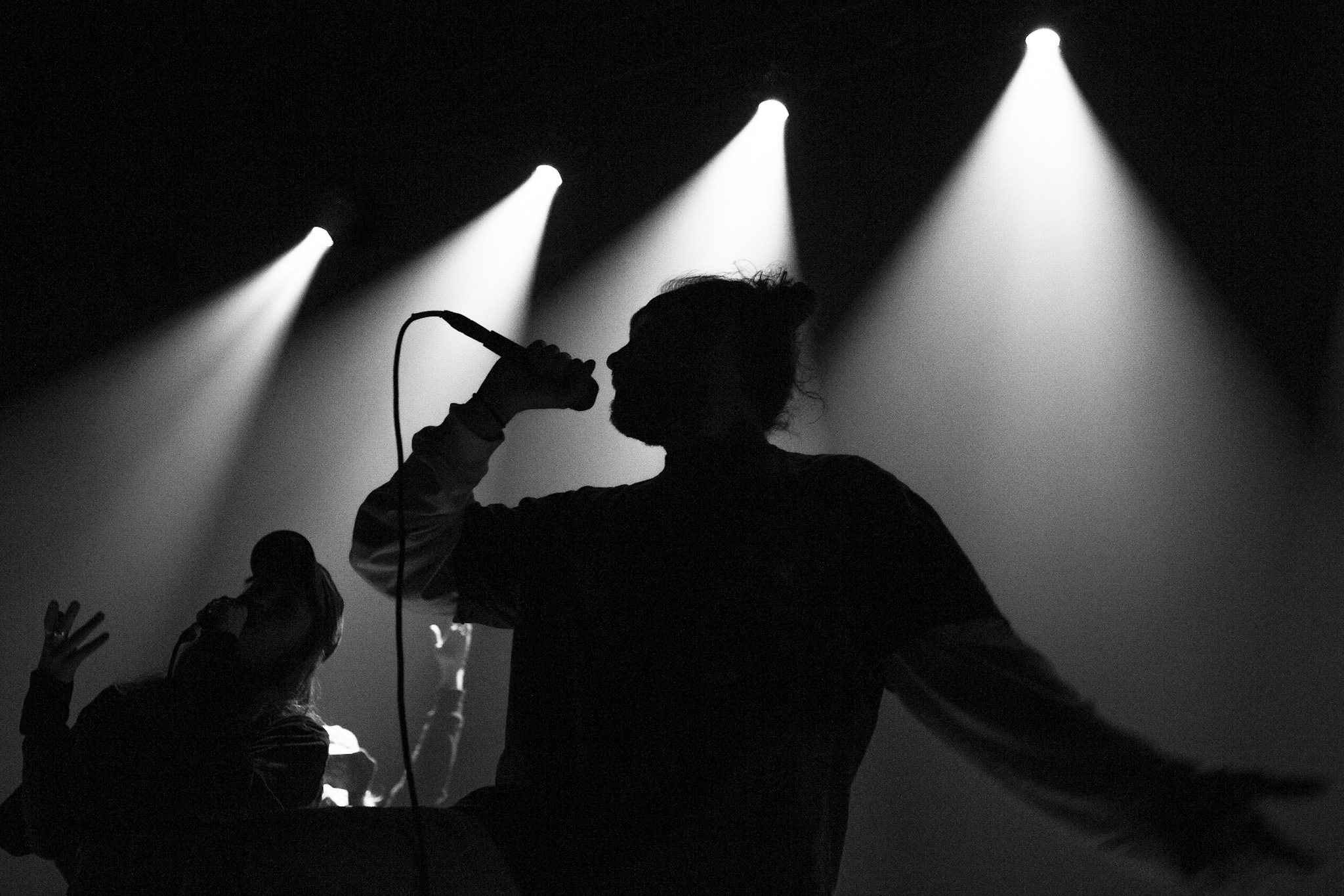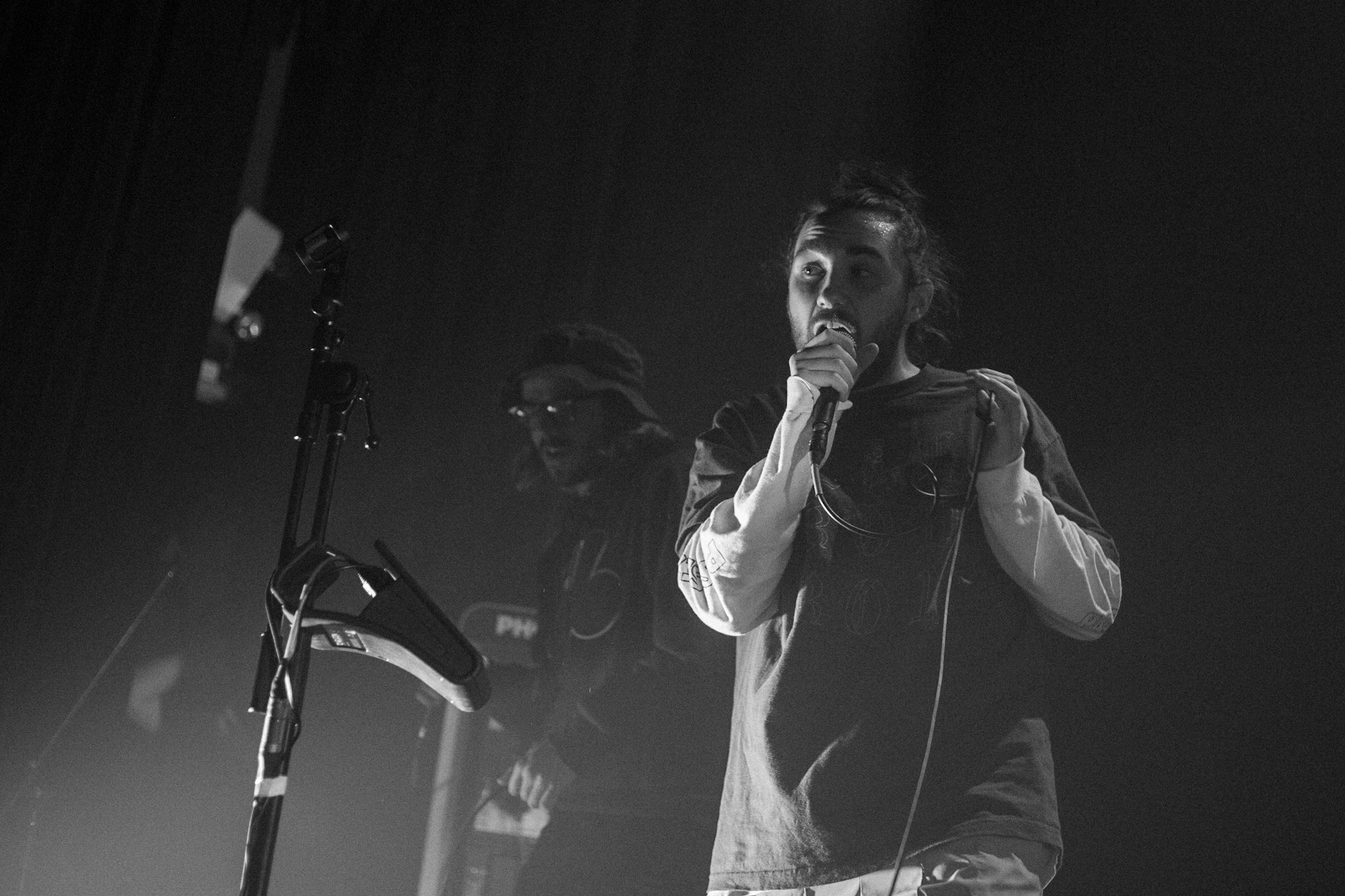 Sans se faire attendre, Clay & Friends a rapidement ouvert le spectacle en proposant un décor exotique aux couleurs de leur dernier EP : Grouillades. C’est dans une ambiance survoltée qu’il a débuté avec OMG, Gainsbourg, Name on It, OK, LEtTRe À SIMONE et Grouillades. Rien de mieux pour bien réchauffer la foule et pour la faire danser jusqu’à la fin du spectacle. Mike Clay a su, avec brio, animer un Club Soda (qui affichait complet) en racontant des blagues, en nous jasant en franglais et en se mettant torse nu sous sa salopette. On a eu droit à un coup de téléphone, parce qu’il y avait un téléphone public installé dans le décor, d’un certain Sam qui est par la suite venu lancer des popsicles dans la foule pour refroidir l’atmosphère brûlante de la salle.
