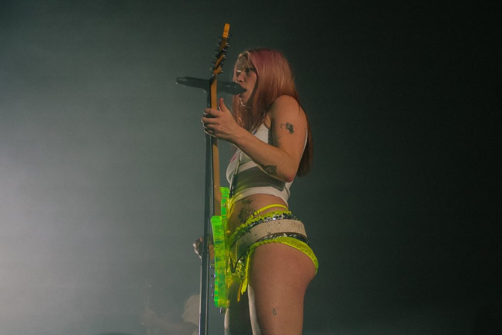 J’avais hâte à ce deuxième concert de Wet Leg dans la métropole. Rappelons que leur dernier passage remontait à Osheaga en 2022. Le groupe avait offert une performance adorable alors qu’elles avaient fait l’expérience des champignons la veille. C’était candide et rempli des rires qui vont de paire à merveille avec l’humour caustique de son premier album. Le second est plus sérieux et la performance que la formation a offerte était aussi dans cette veine.