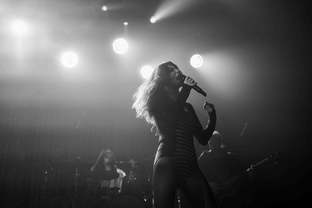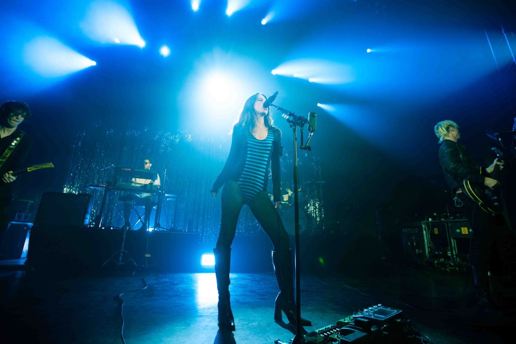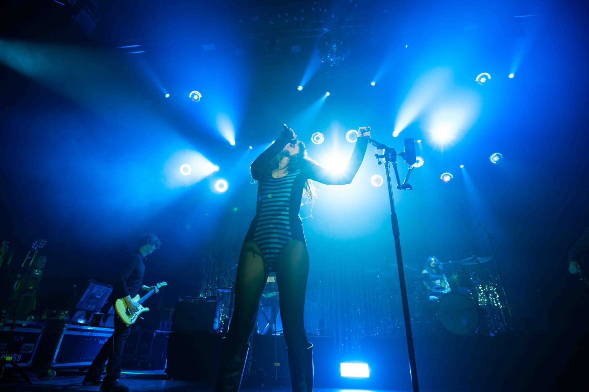 Parlant d’Ellie Roswell; cette dernière ne fait pas les choses à moitié. Elle offre au public une prestation impeccable, galvanisée par sa voix infaillible qui est souvent testée au courant de la soirée. Avec ses cheveux au vent, ou plongée sous les reflets brillants d’une boule disco, elle épate la galerie. Elle nous bouche un coin quand elle surgit sur scène, mégaphone en main, pour interpréter la très punk-rock et mouvementée Yuk Foo.